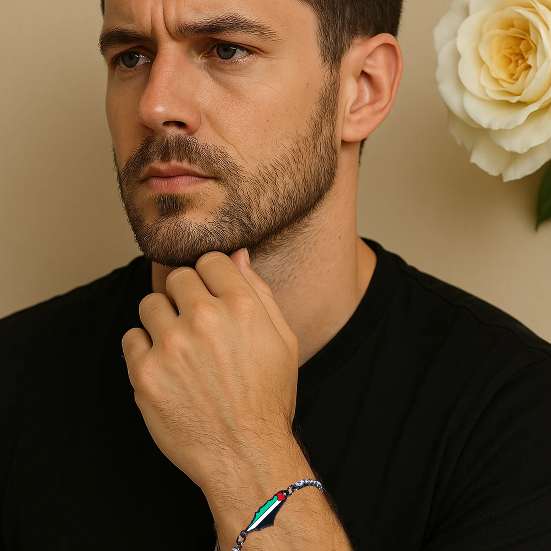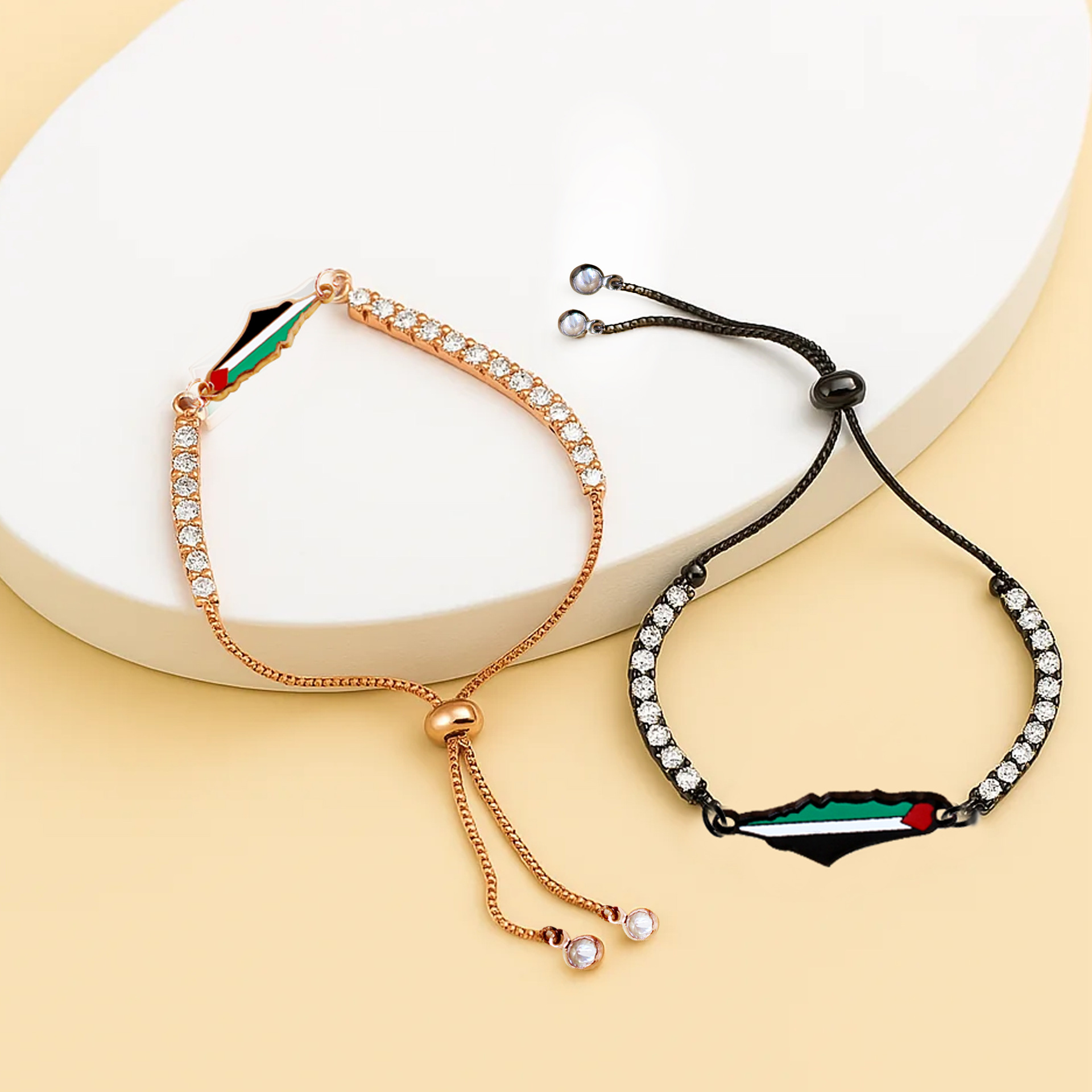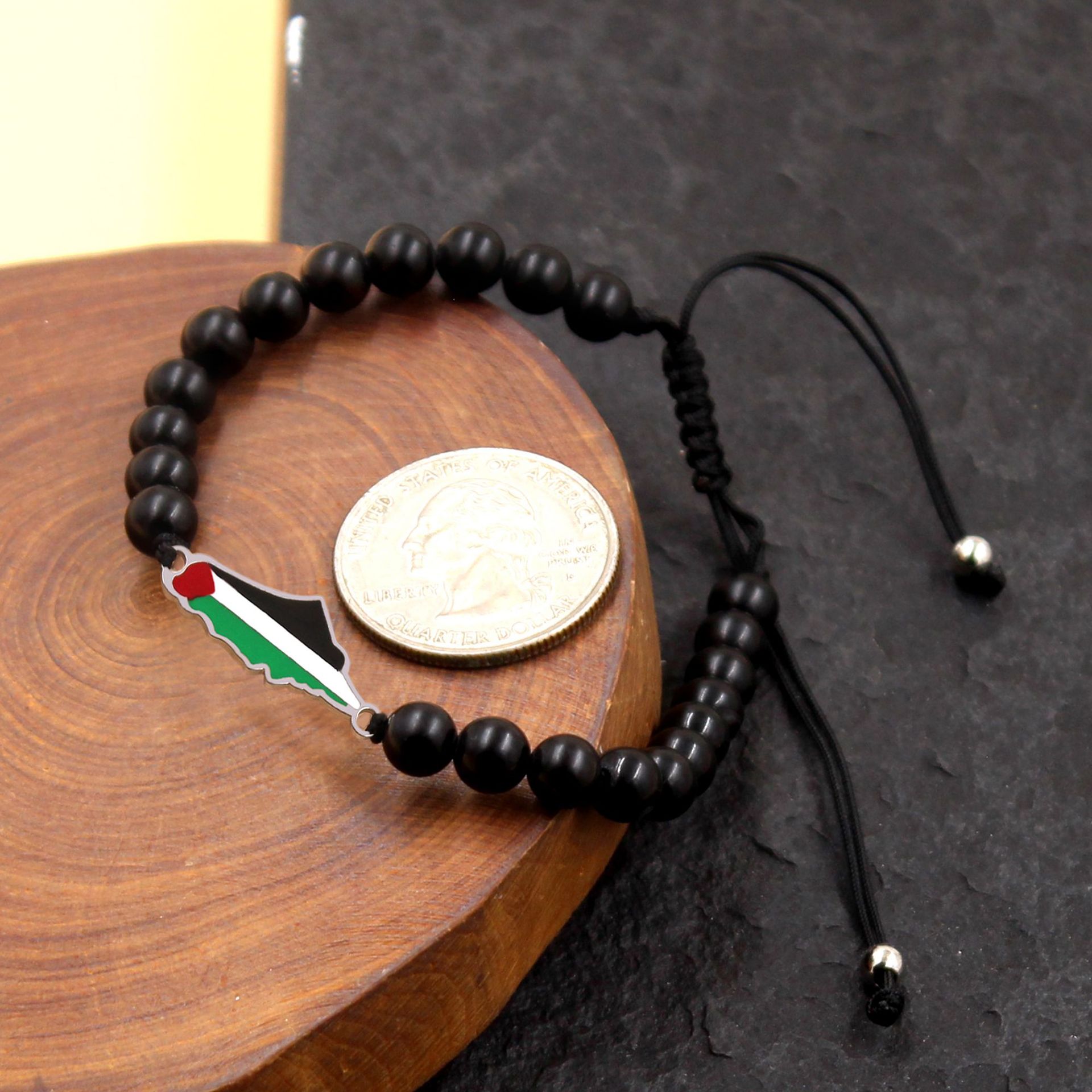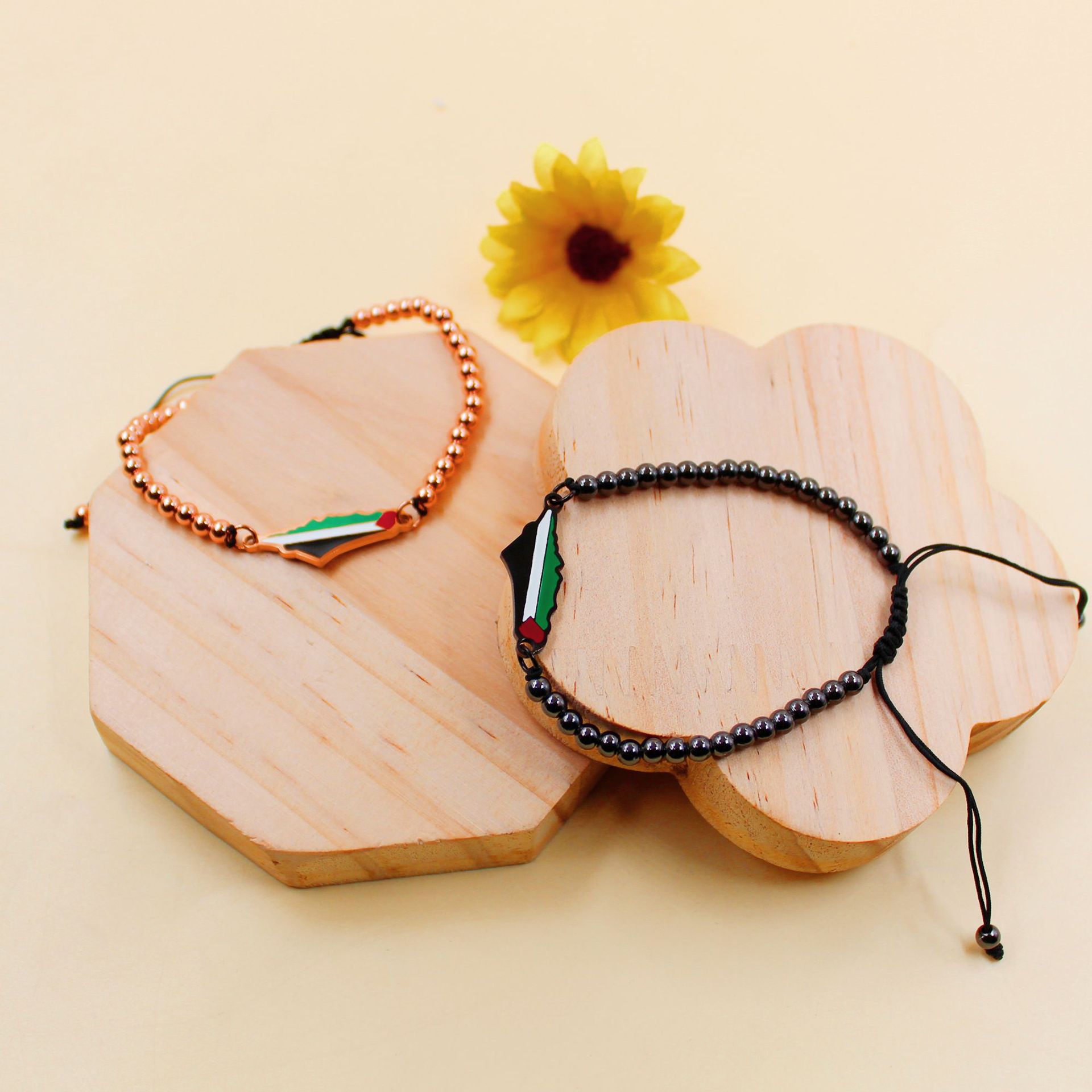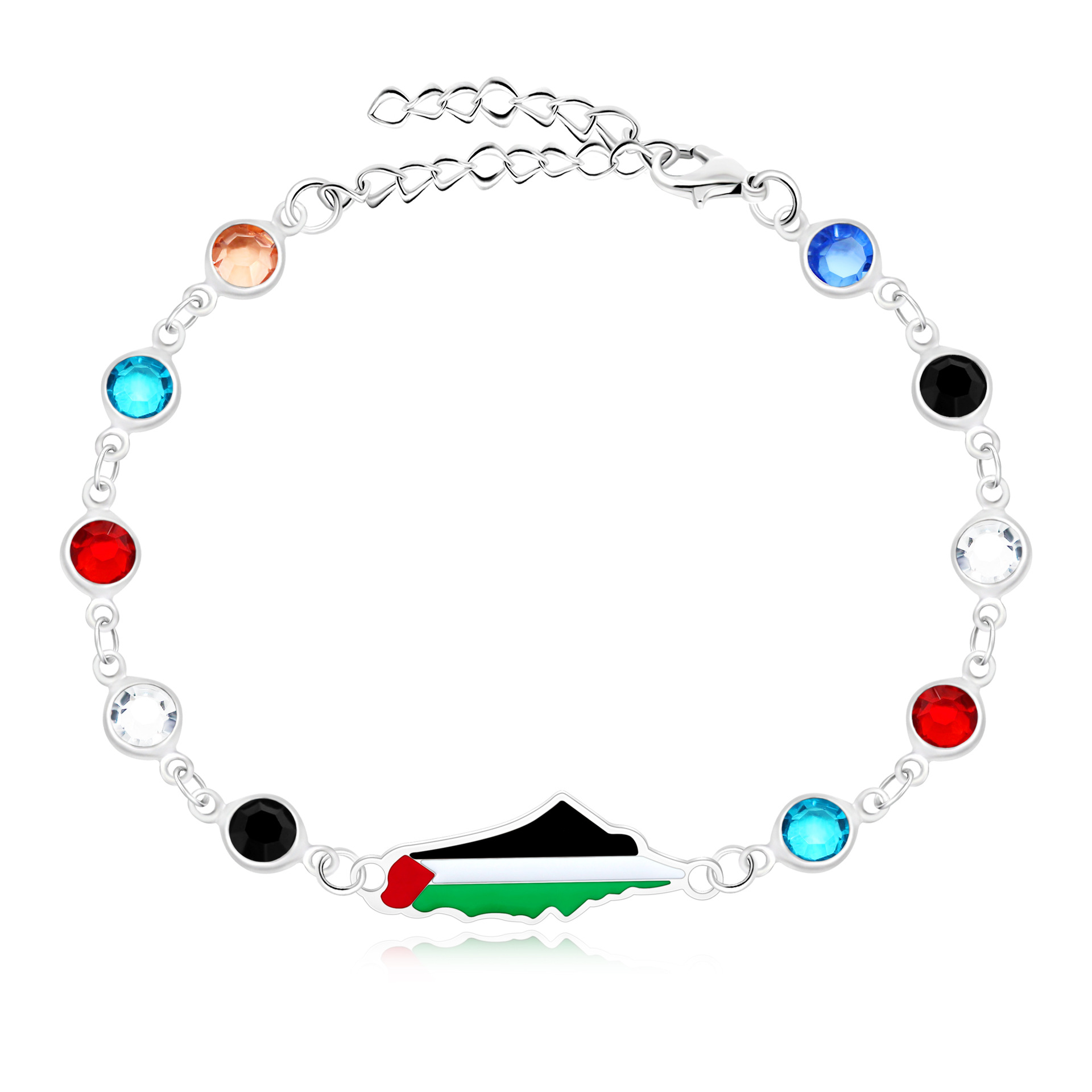 产品材质:不锈钢滴油国旗,不锈钢心链,铜镶嵌锆石链,4mm不锈钢珠/4mm铜珠,6mm白松石/黑玛瑙/虎眼石,不锈钢镶嵌水晶链