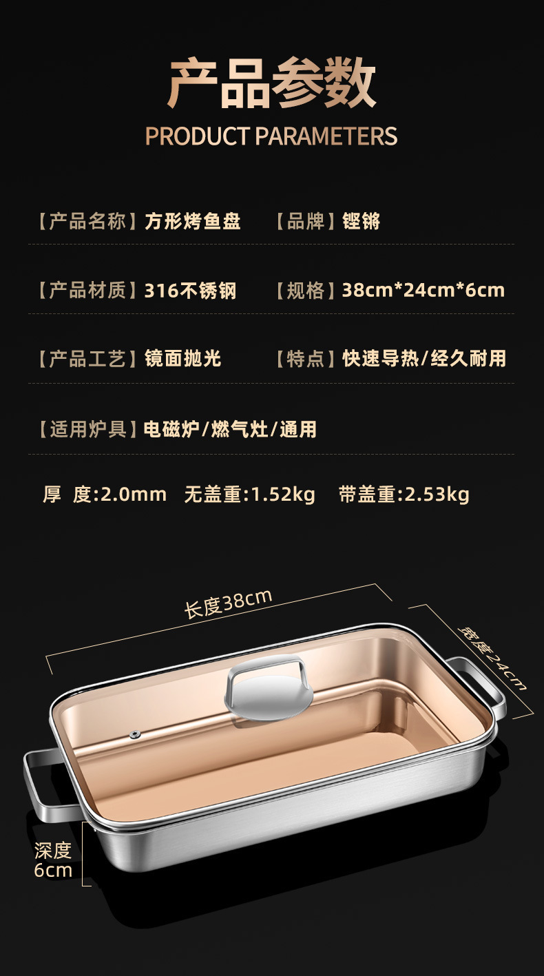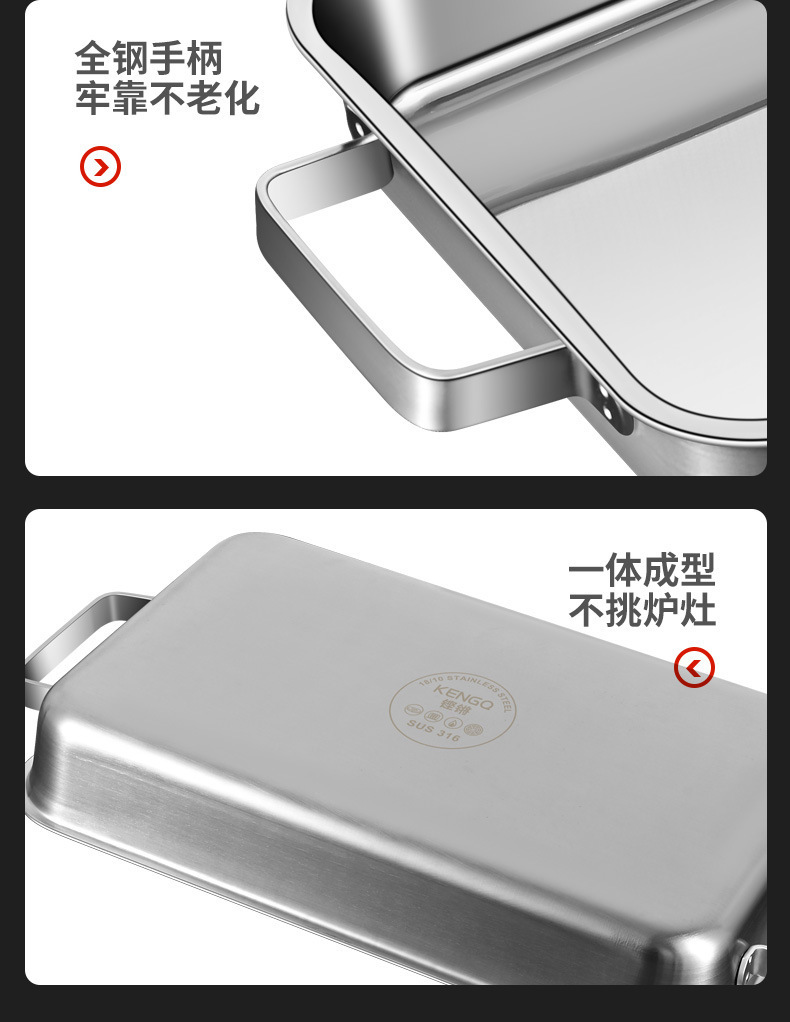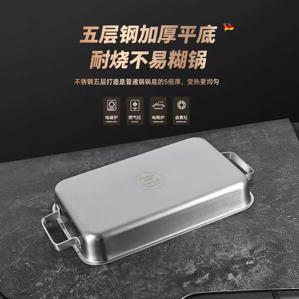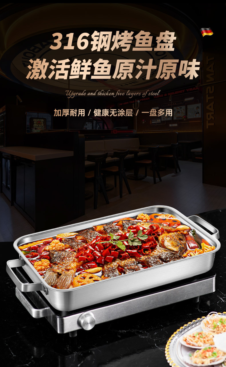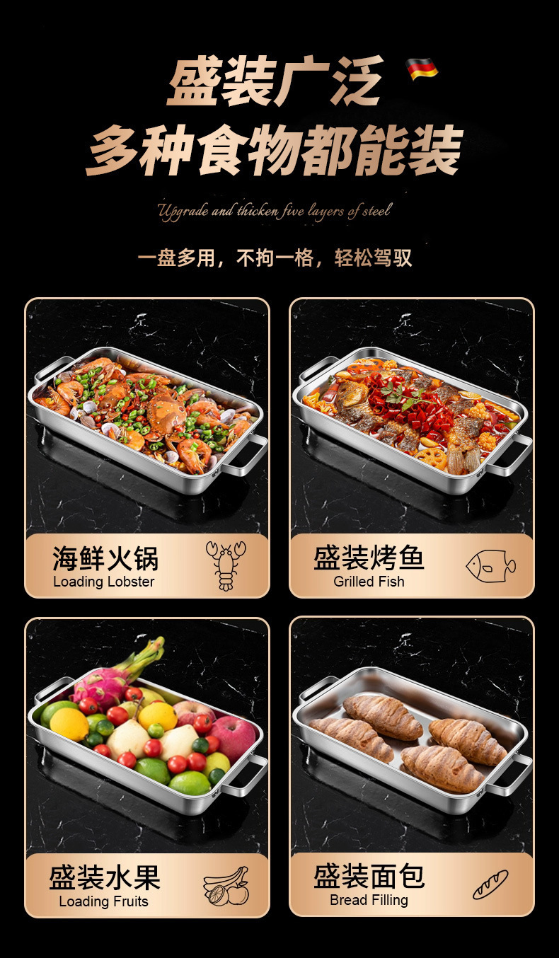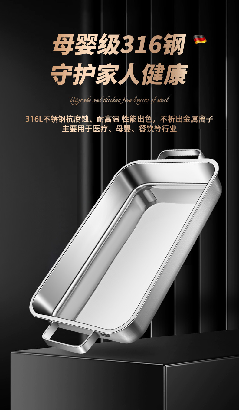 베이킹 피쉬 플레이트 직사각형 가정용 316 스테인레스 스틸 추가 두꺼운 유도 쿠커 특수 냄비 식품 등급 베이킹 팬 트레이