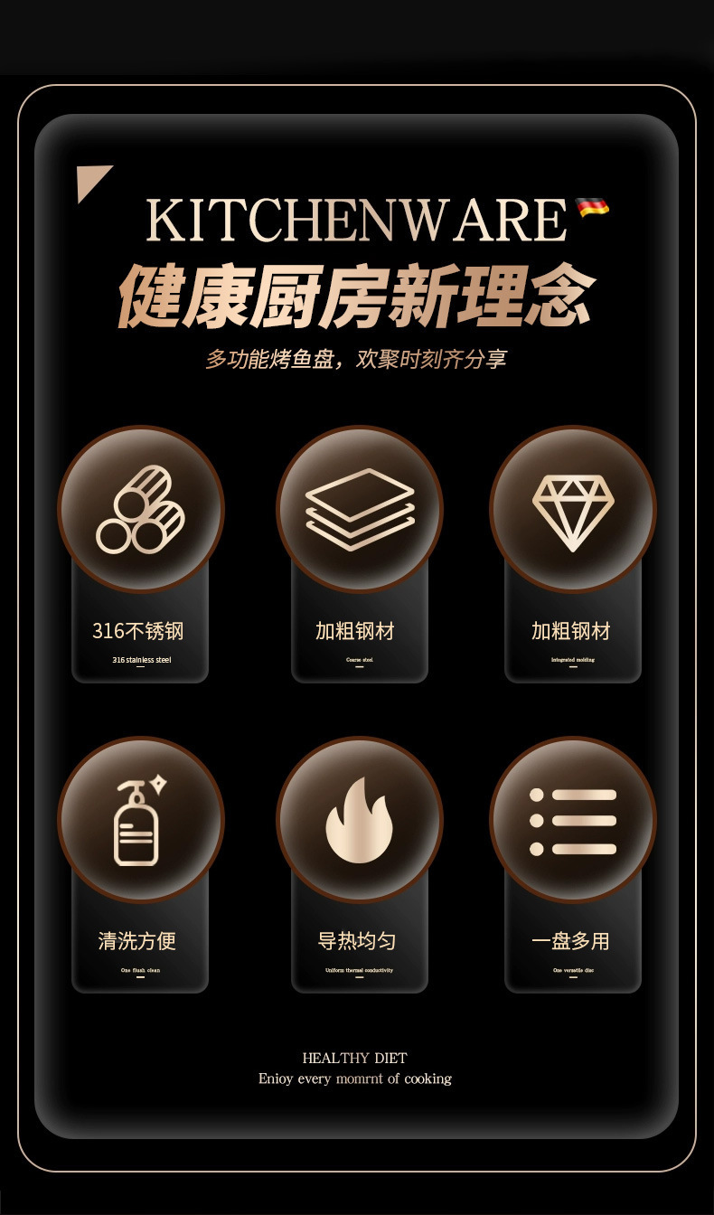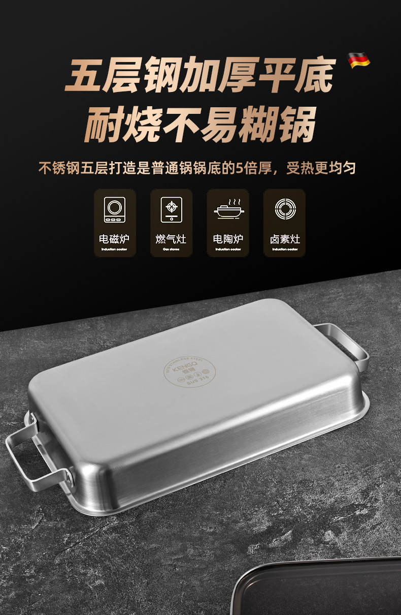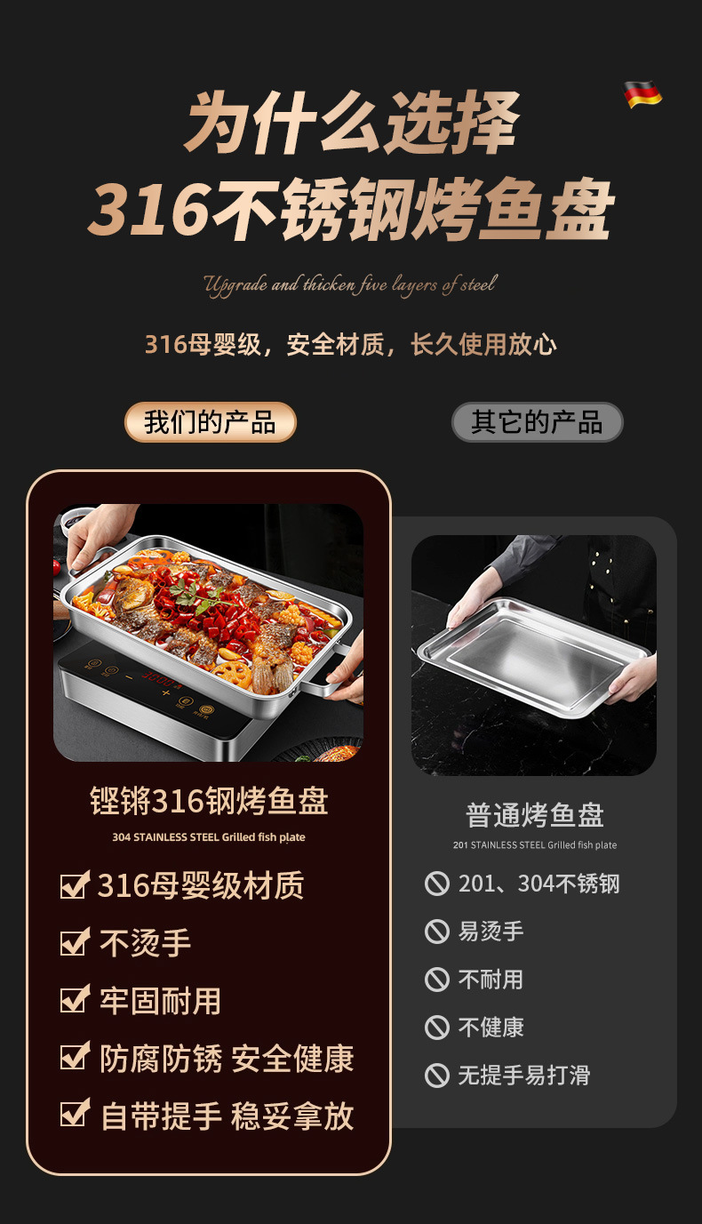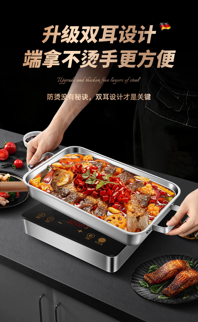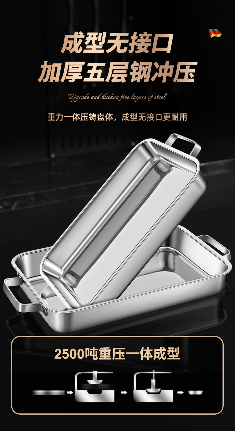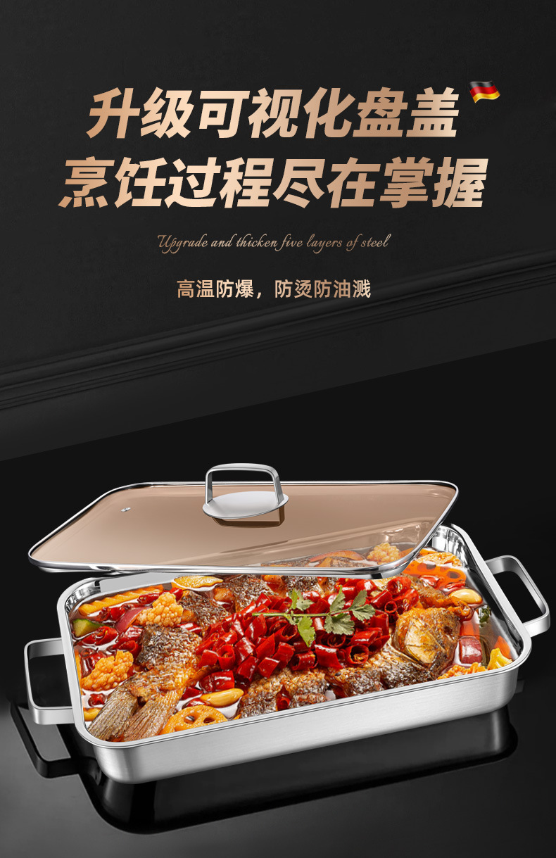 베이킹 피쉬 플레이트 직사각형 가정용 316 스테인레스 스틸 추가 두꺼운 유도 쿠커 특수 냄비 식품 등급 베이킹 팬 트레이