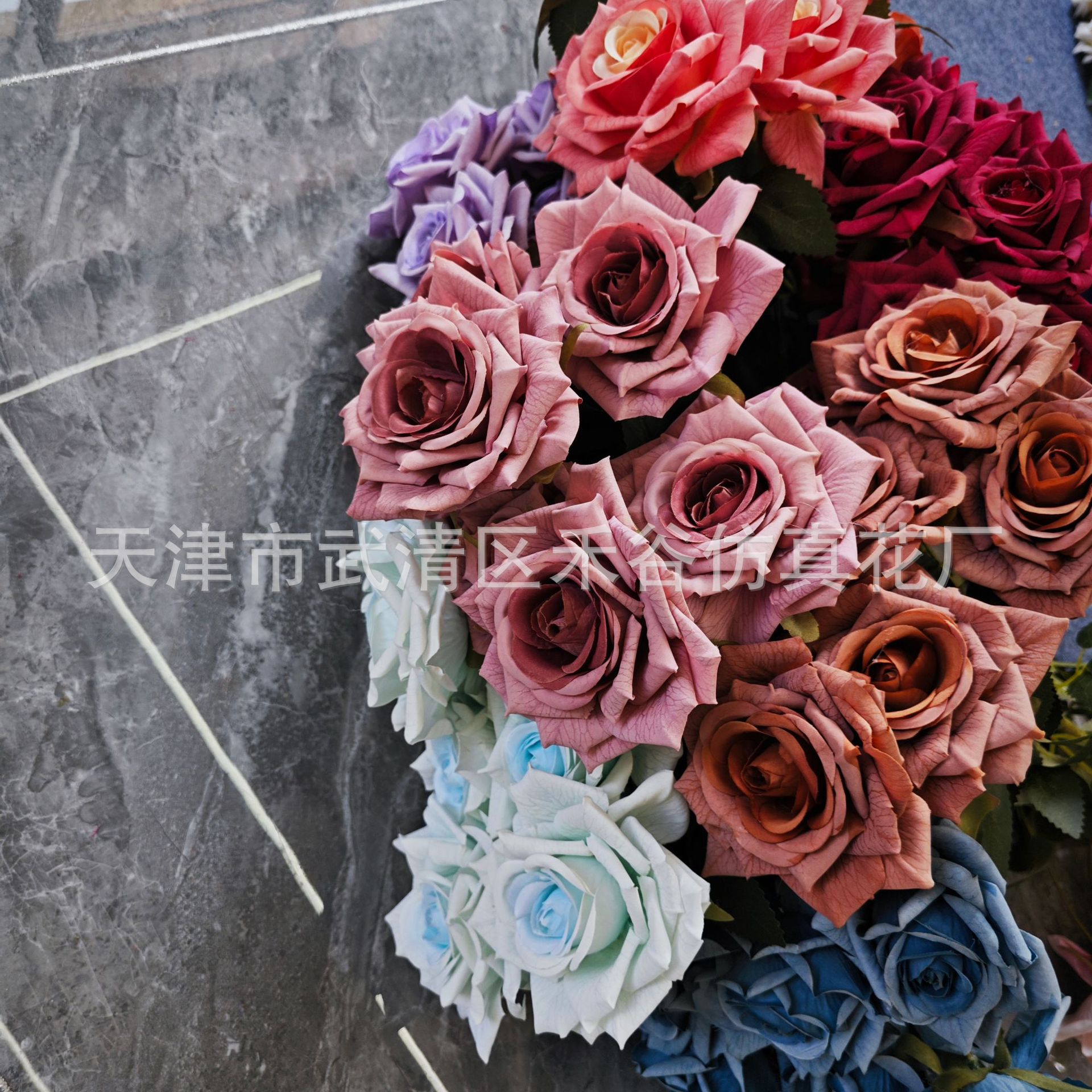 7 헤드 카푸치노 컬링 로즈 그물 레드 레트로 장미 홈 장식 웨딩 홀 레이아웃 가을 장미