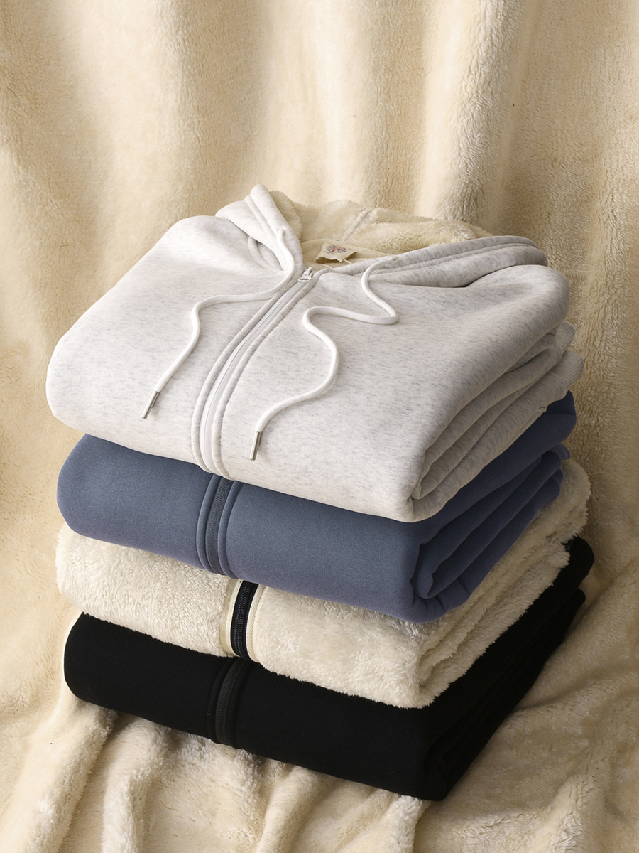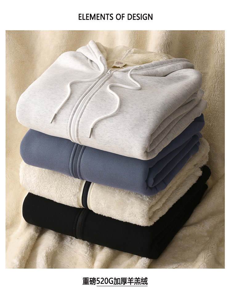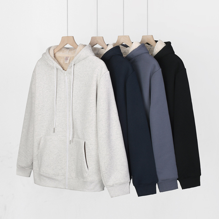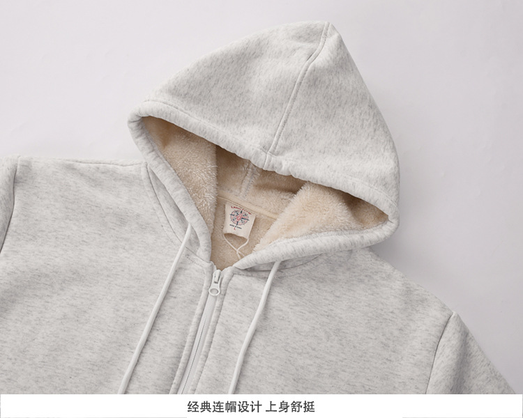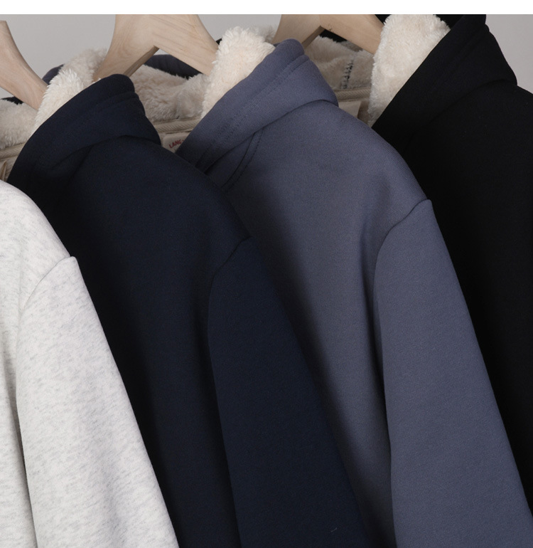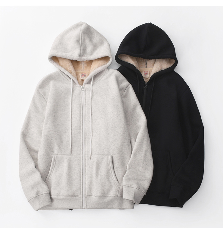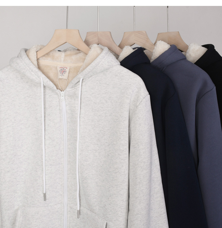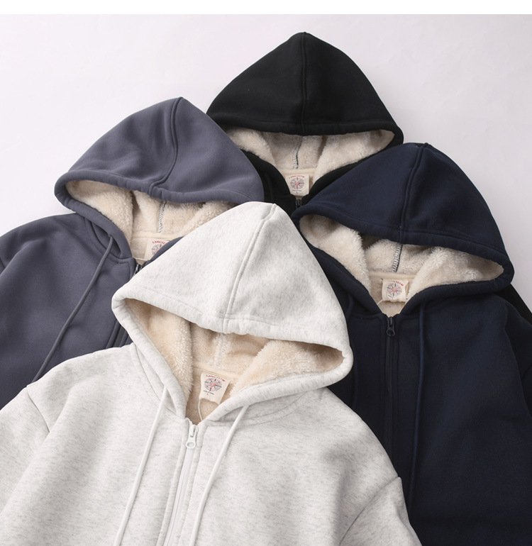가을 겨울 남성용 아메리칸 헤비급 램스울 재킷 후드 루즈 스웨트셔츠 지퍼 가디건 플러스 벨벳 두꺼운 따뜻한 면 재킷