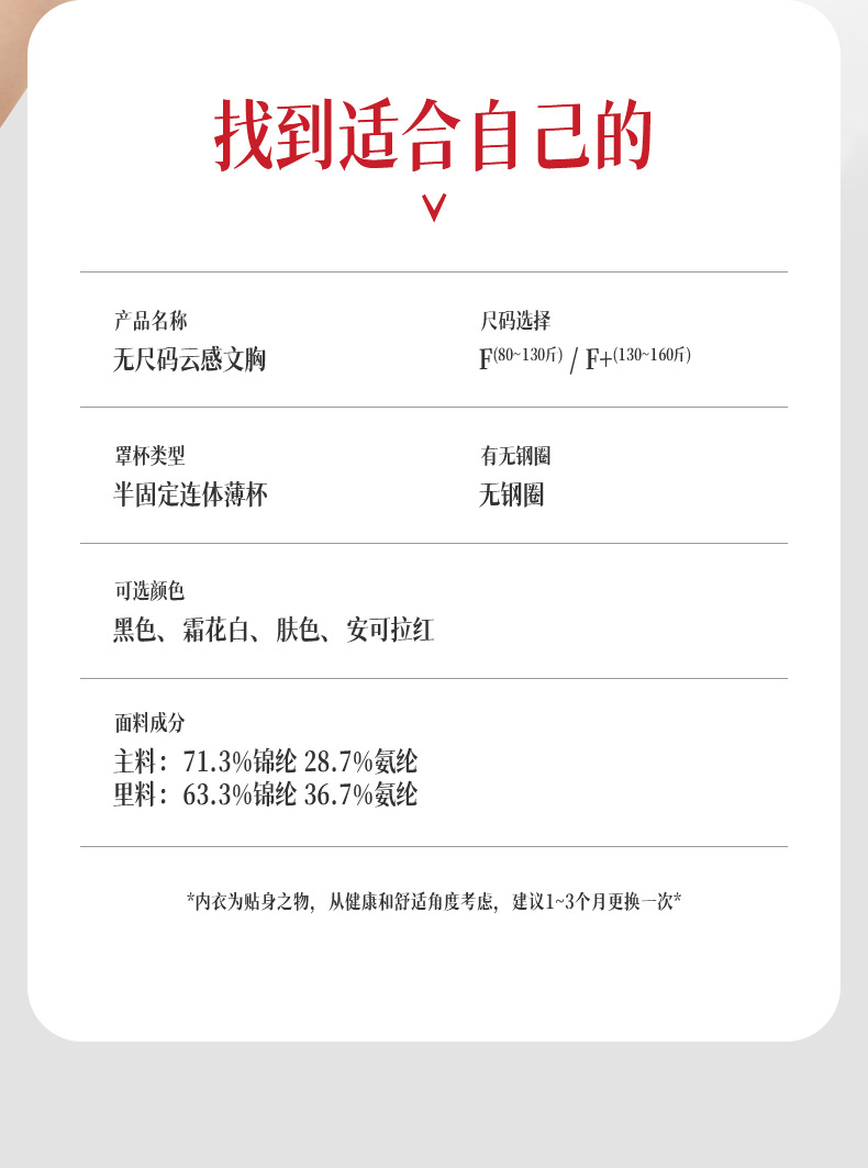 固定可调节细肩带 高弹舒适