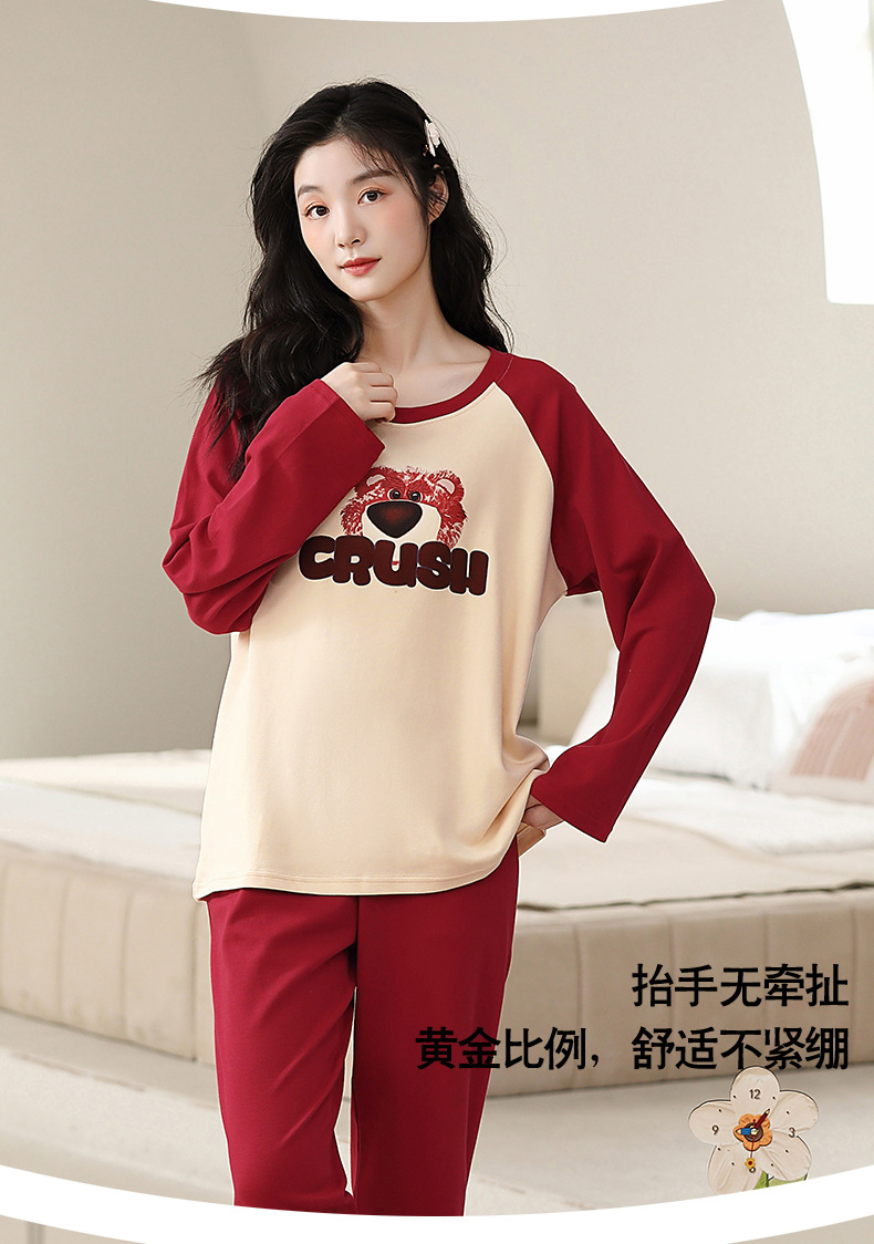 잠옷 여성의 봄과 가을 풀오버 긴 소매 면 2024 새로운 도착 의류 플러스 사이즈 만화 겨울 홈 의류 세트