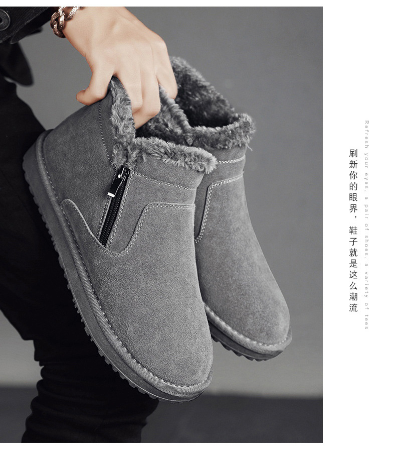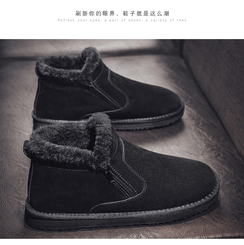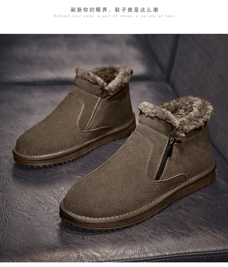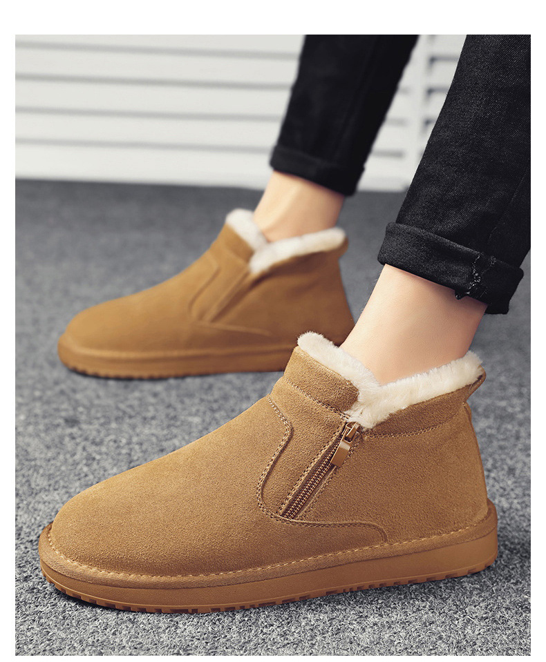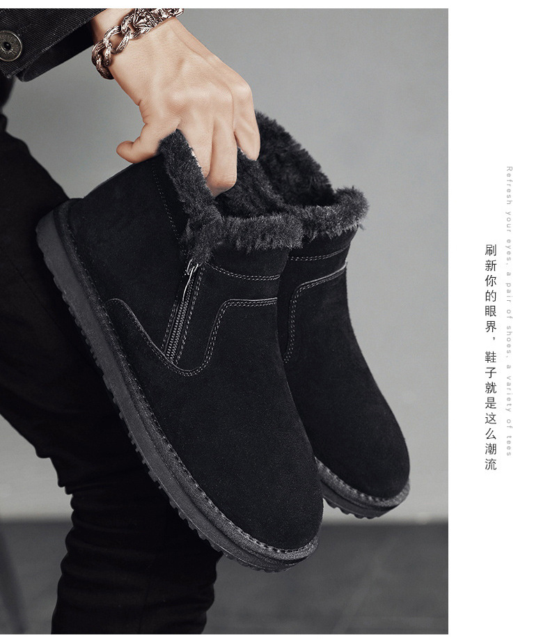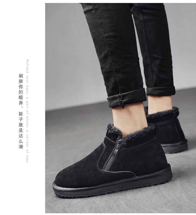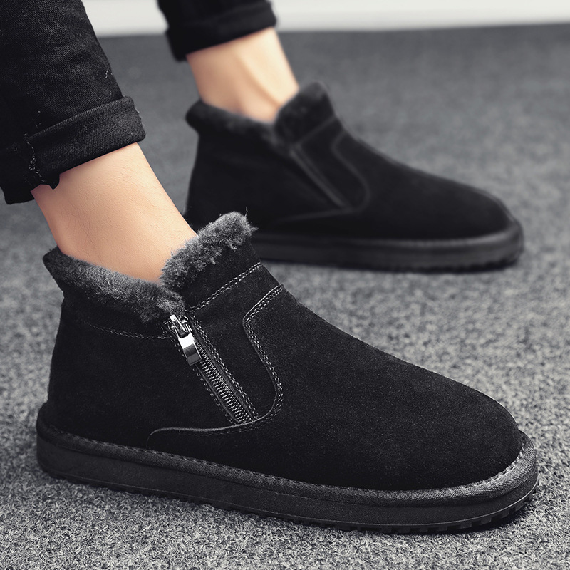 겨울 새 기모 따뜻한 눈 부츠 가죽 냉간 두꺼운 낮은 옆 지퍼 발 신발 남성 신발