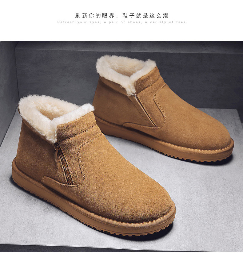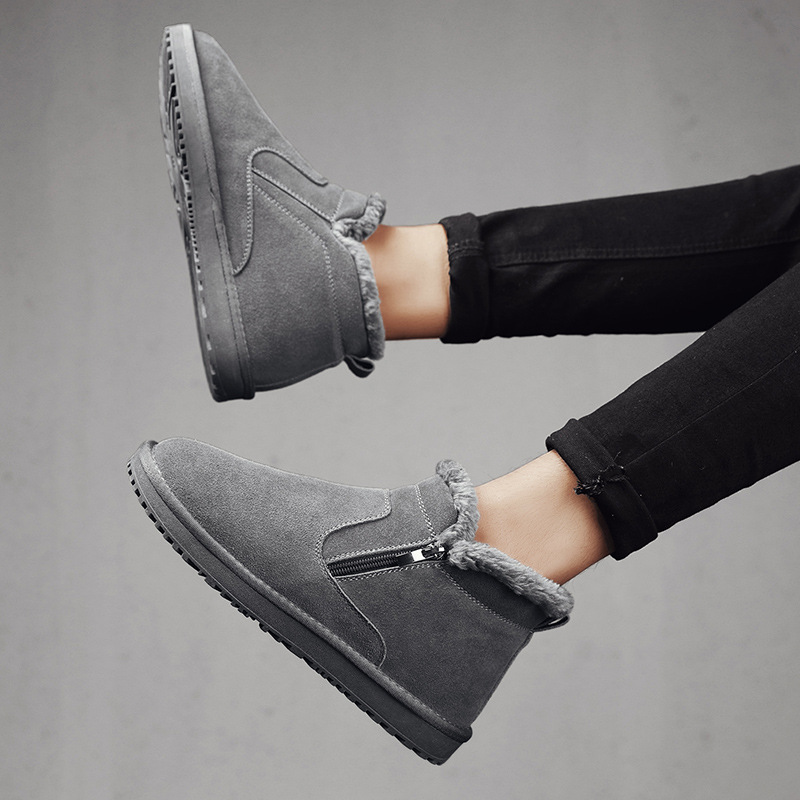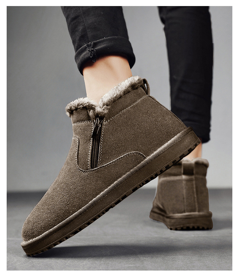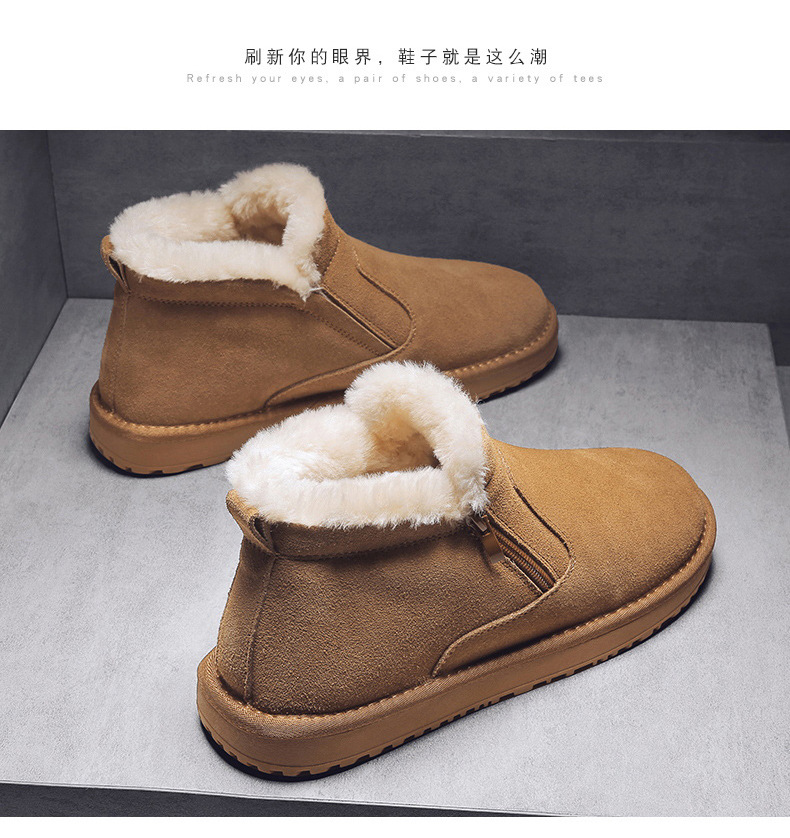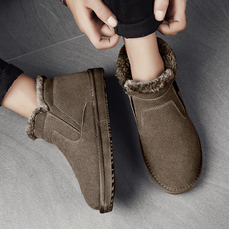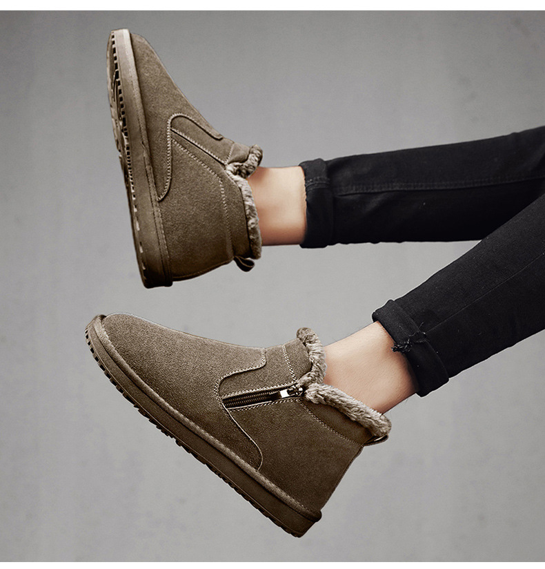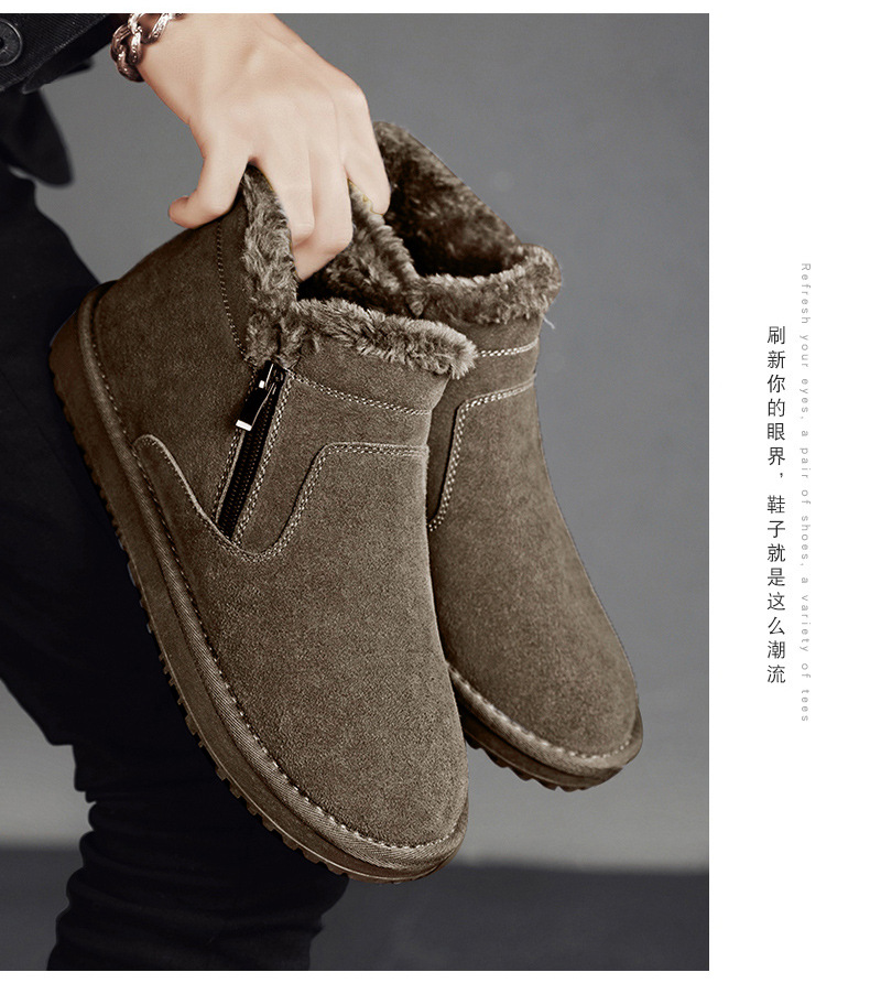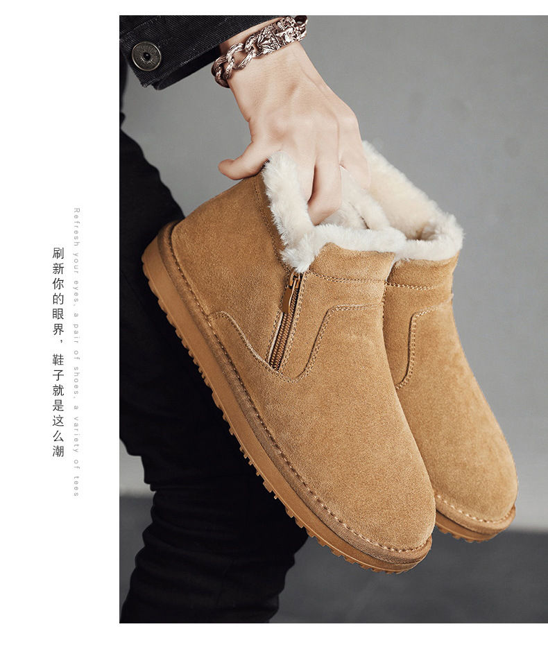 겨울 새 기모 따뜻한 눈 부츠 가죽 냉간 두꺼운 낮은 옆 지퍼 발 신발 남성 신발