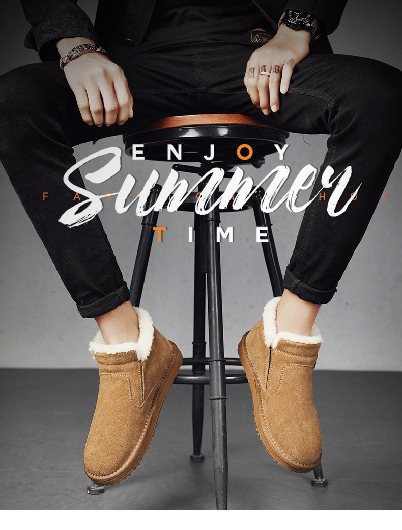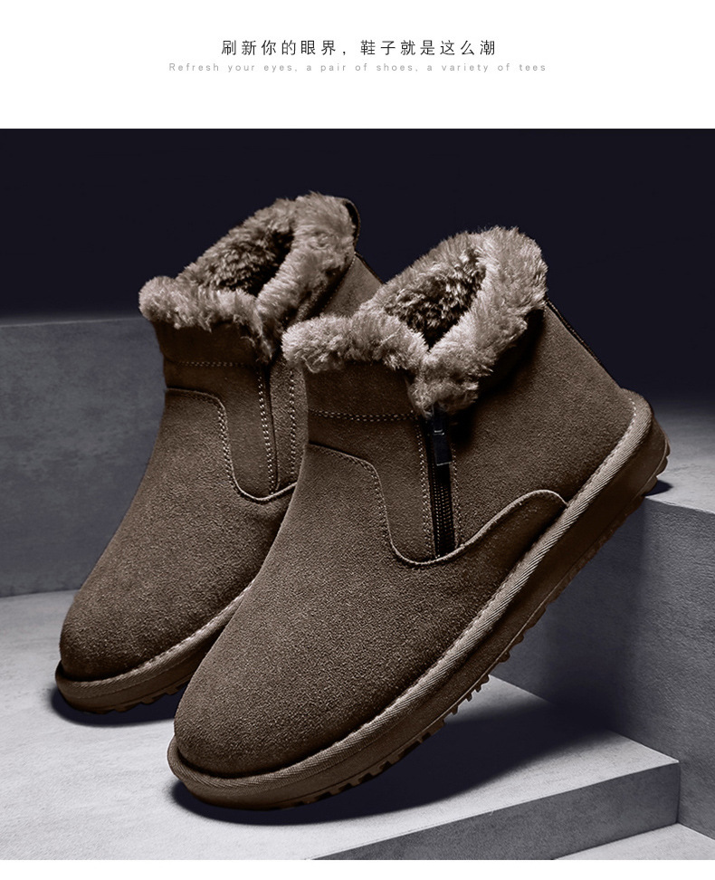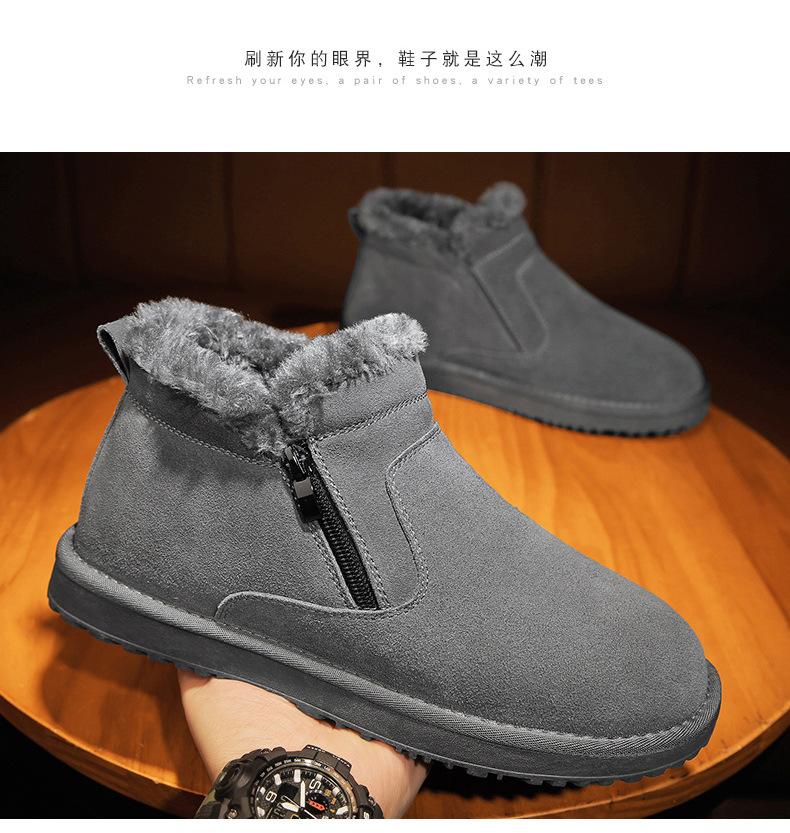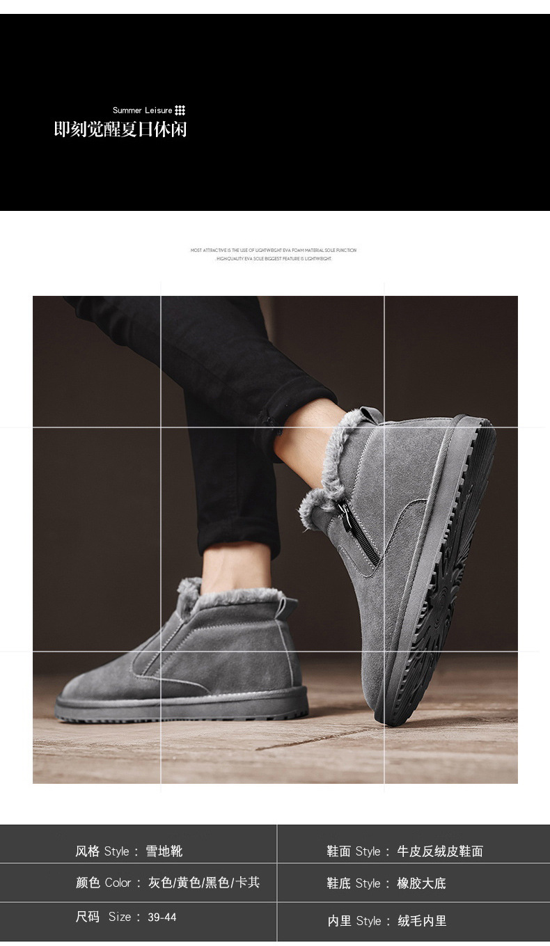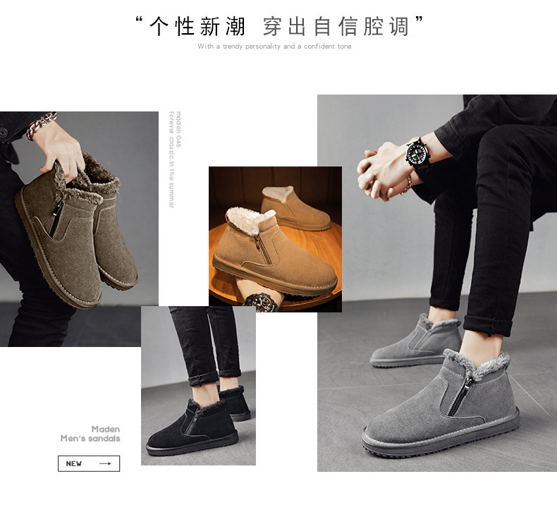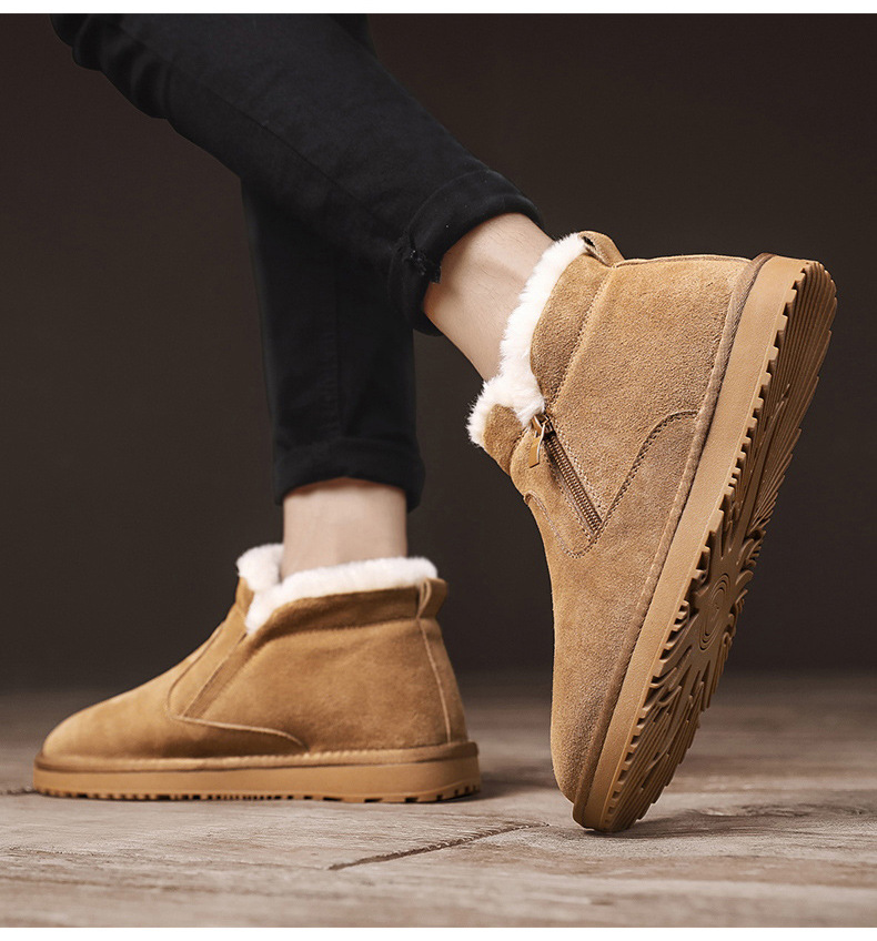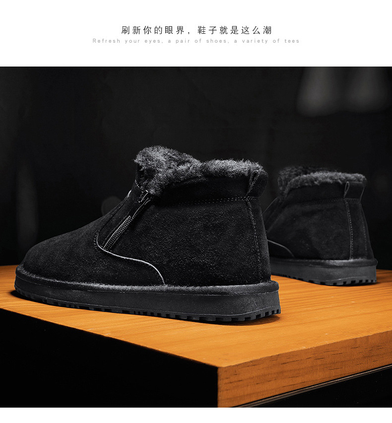 겨울 새 기모 따뜻한 눈 부츠 가죽 냉간 두꺼운 낮은 옆 지퍼 발 신발 남성 신발