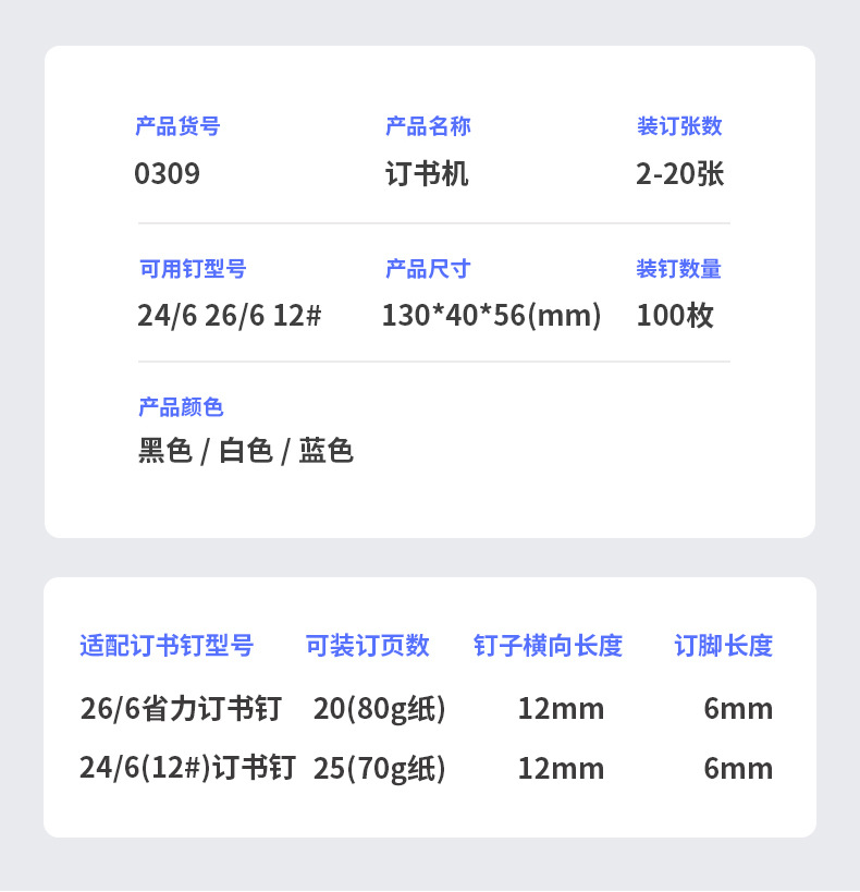 델리 0309 스테이플러 사무실 표준 번호 12 네일 수동 스테이플러 프레스 스테이플러 문구 용품