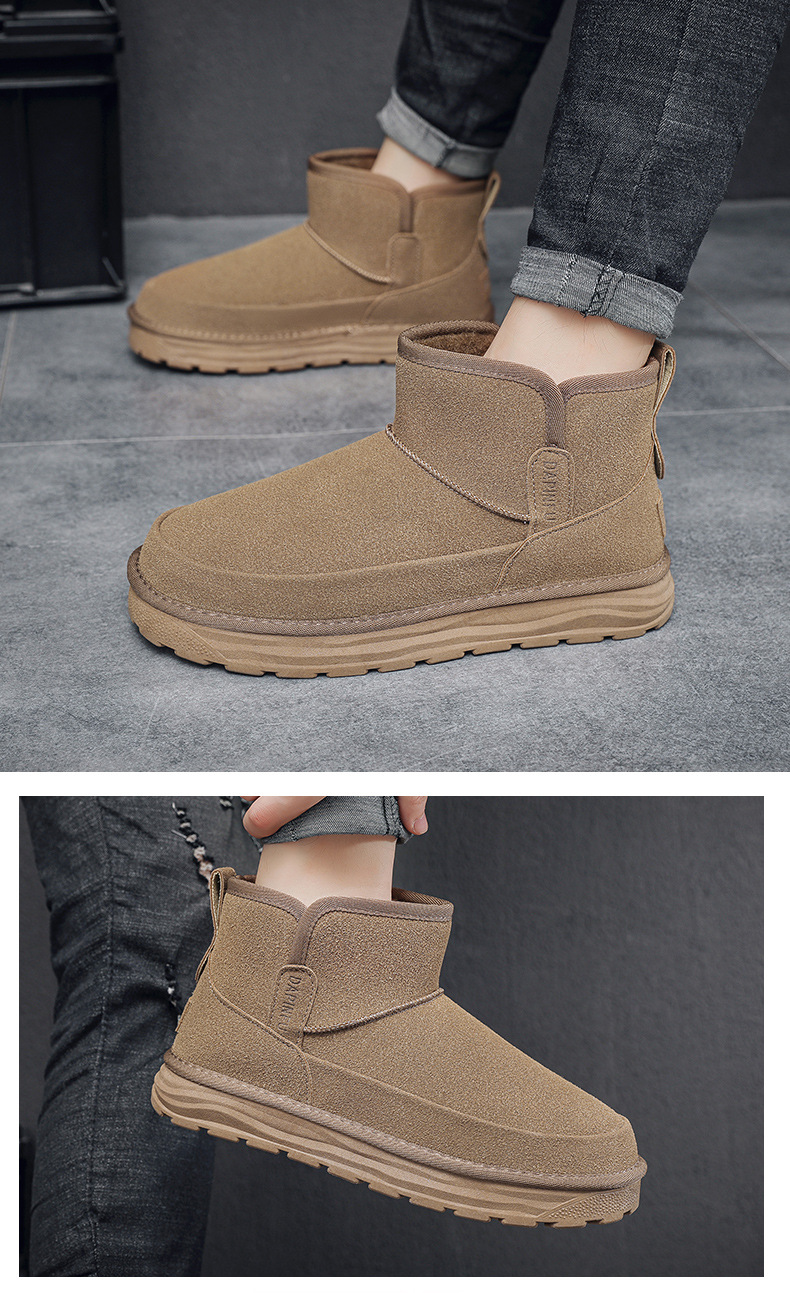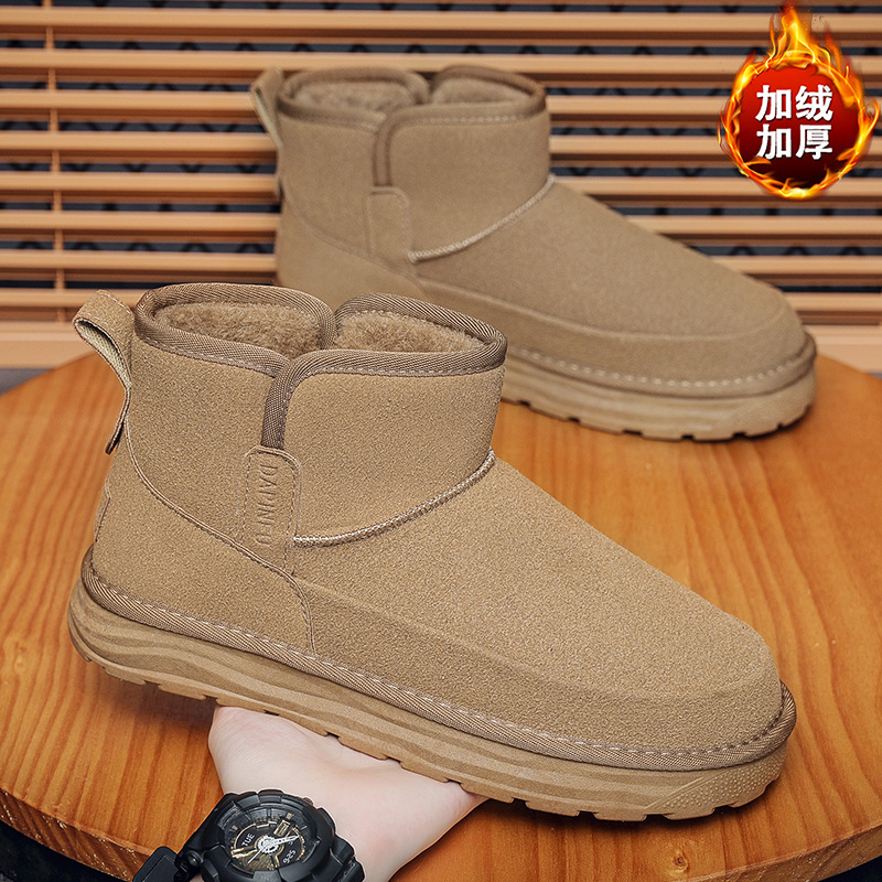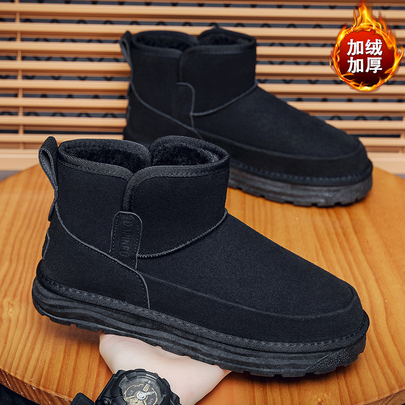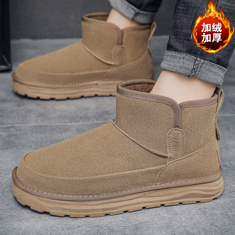 2024 년 겨울 새 남자 캐주얼 미드 튜브 스노우 부츠 레트로 올매치 두꺼운 따뜻한 남성면 신발 동북 부츠