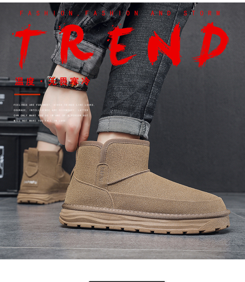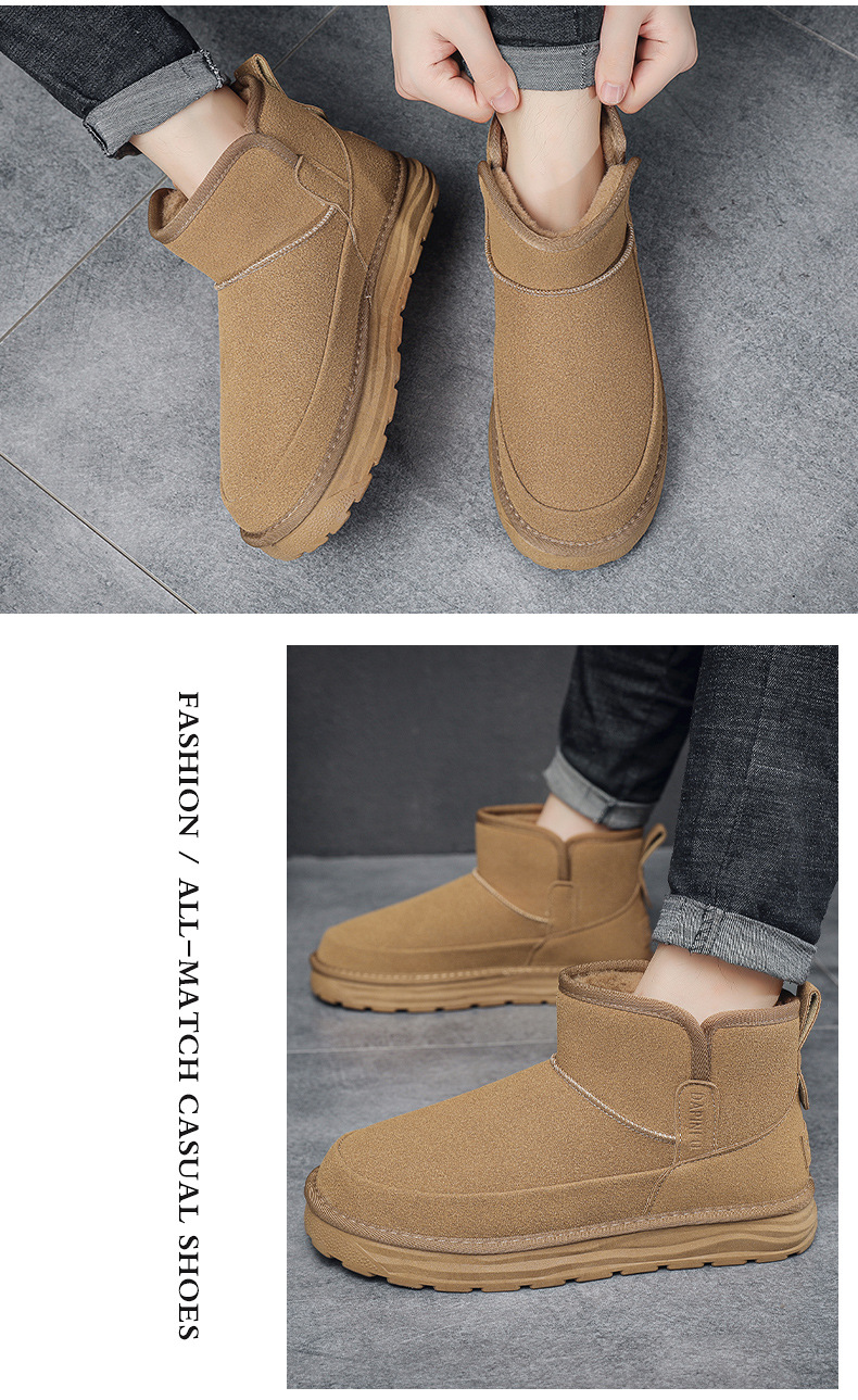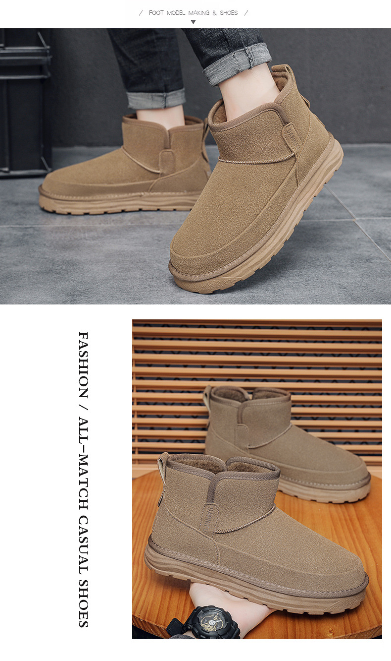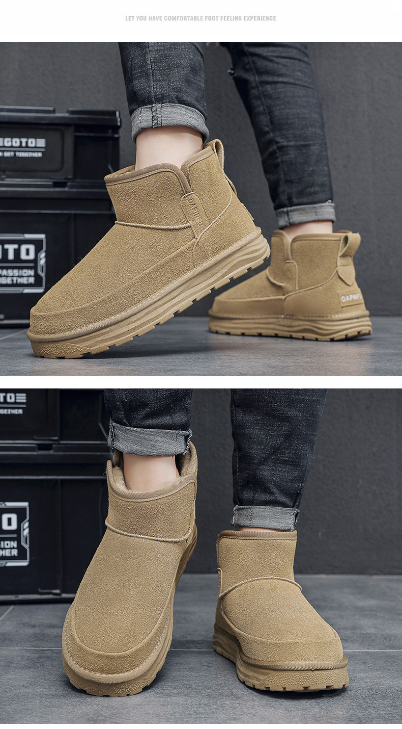2024 년 겨울 새 남자 캐주얼 미드 튜브 스노우 부츠 레트로 올매치 두꺼운 따뜻한 남성면 신발 동북 부츠
