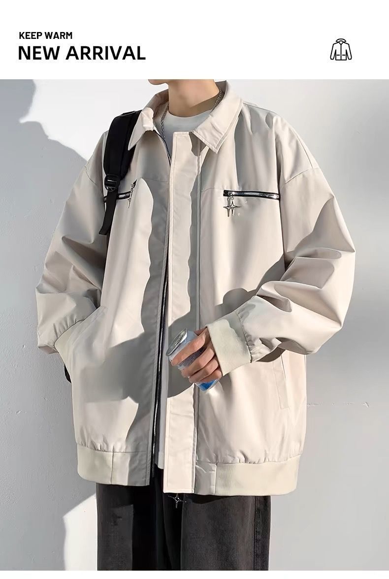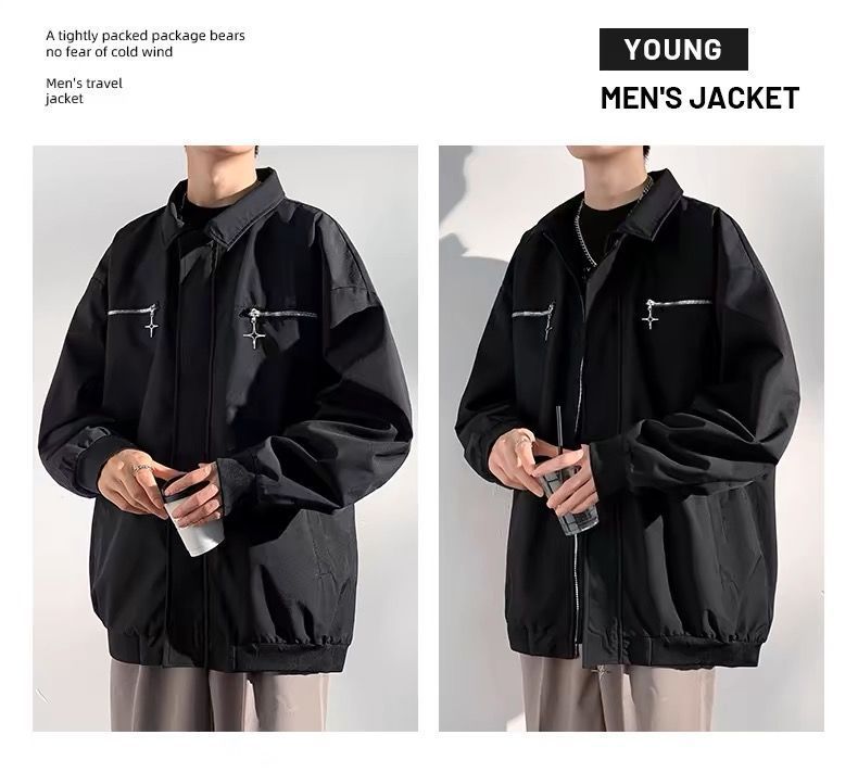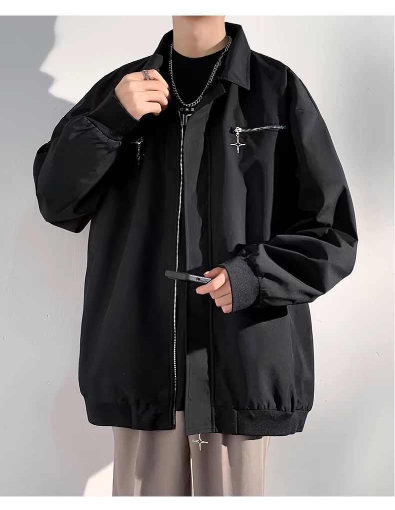 봄과 가을 재킷 남성용 아메리칸 스타일 패션 옷깃 캐주얼 자켓 루즈 올매치 더피 핸섬 한국 스타일 디자인 탑 옷