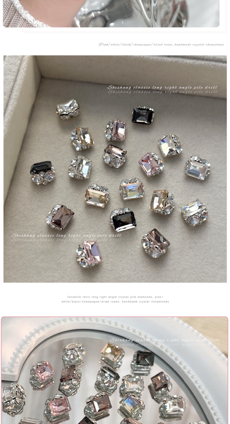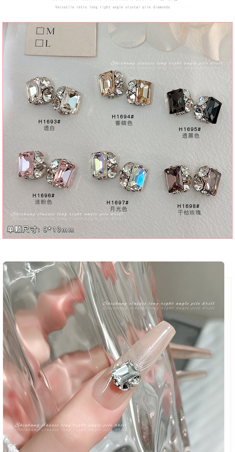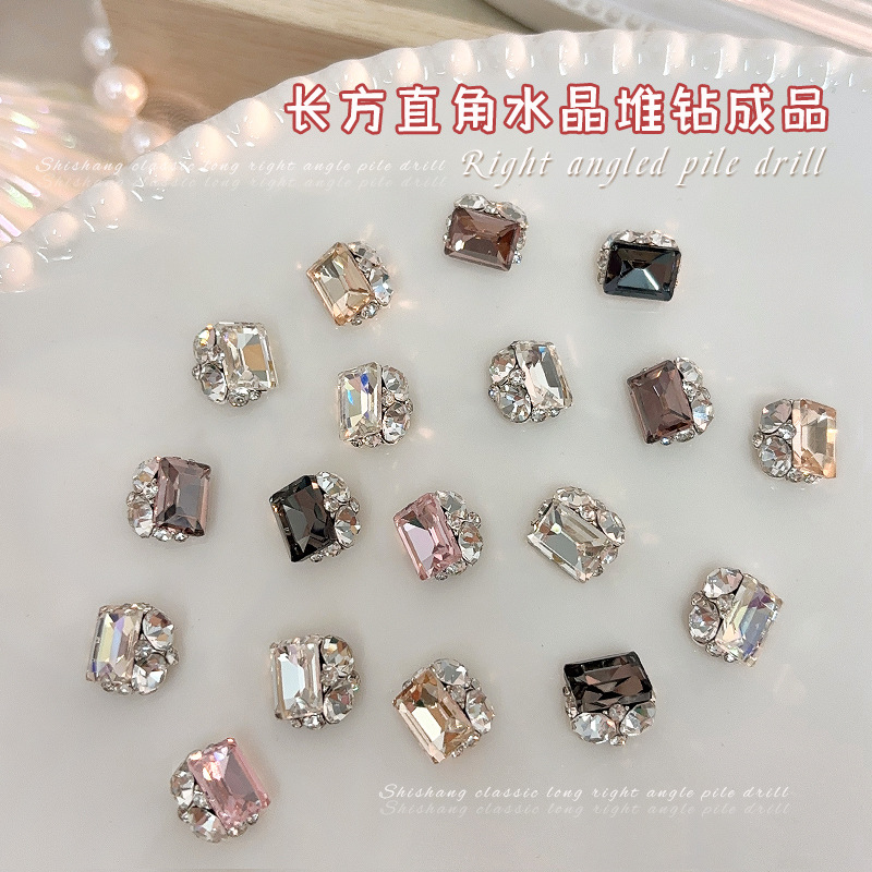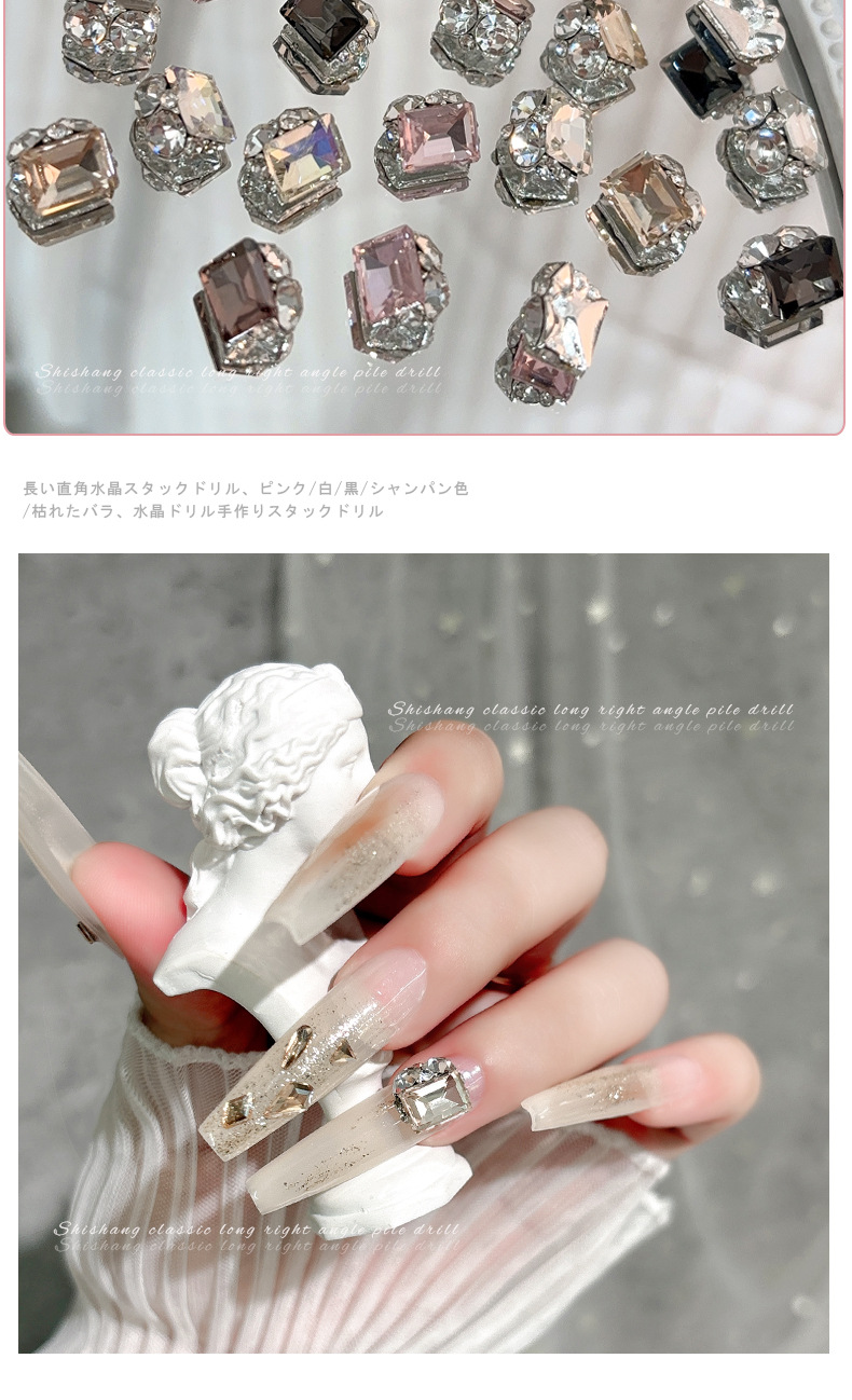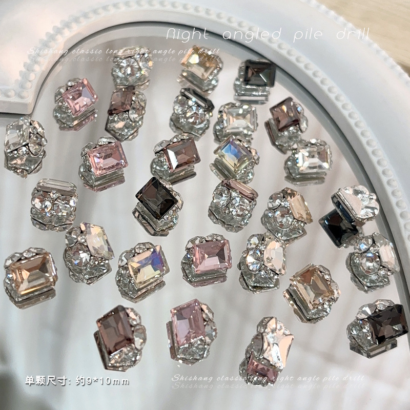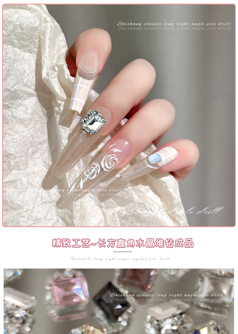 인기있는 매니큐어 쥬얼리 긴 스트레이트 스퀘어 크리스탈 더미 드릴링 슈퍼 플래시 풀 다이아몬드 라이트 럭셔리 프랑스 합금 네일 장식