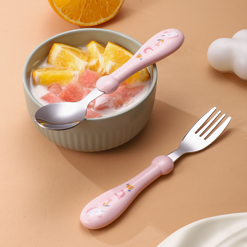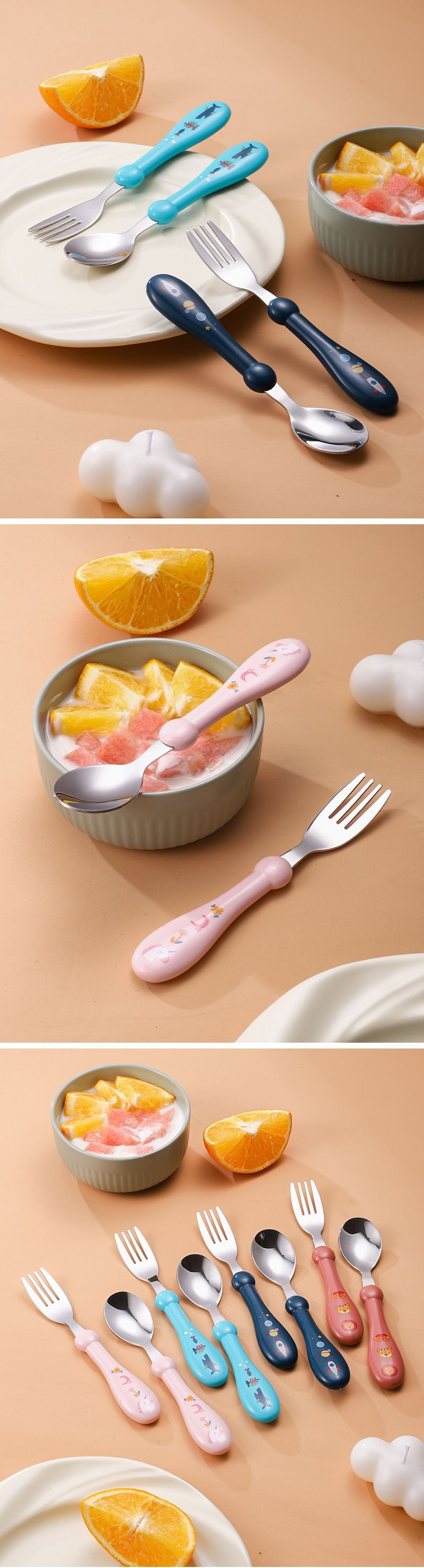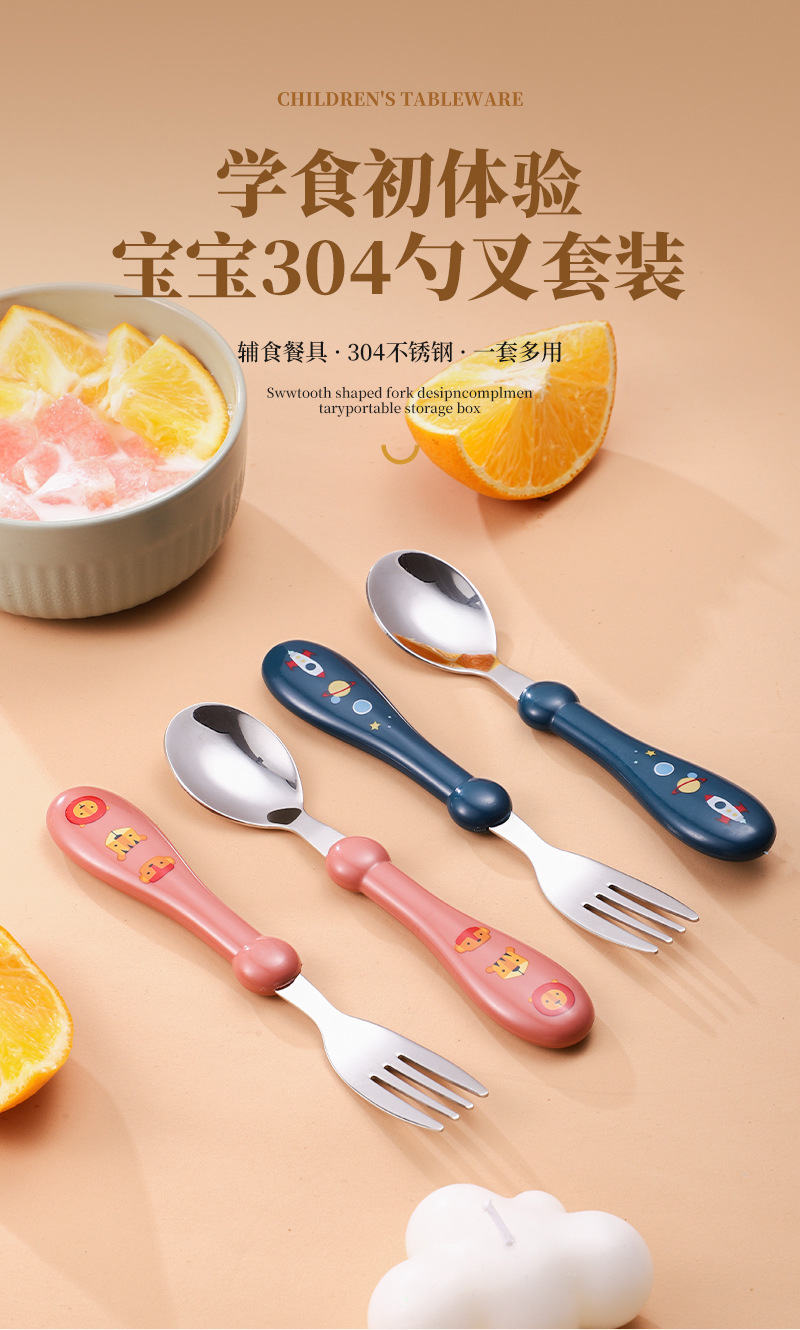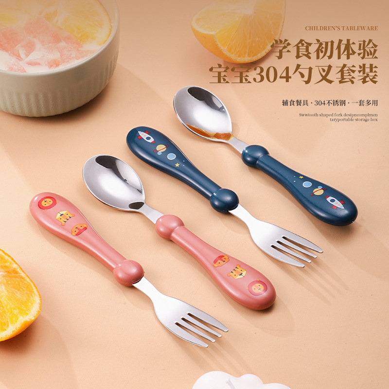 어린이 304 스테인레스 스틸 포크 스푼 세트 베이비 스푼 포크는 입을 다치게하지 않습니다. 훈련 숟가락 보완 식기