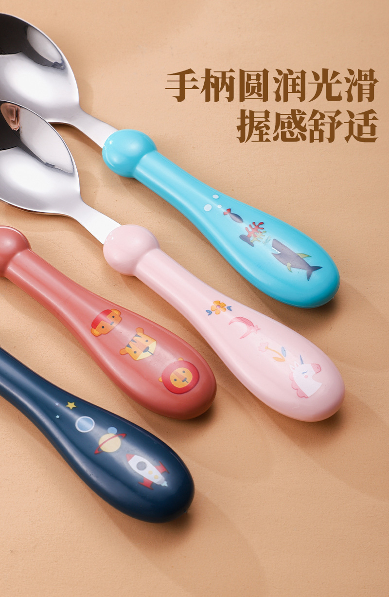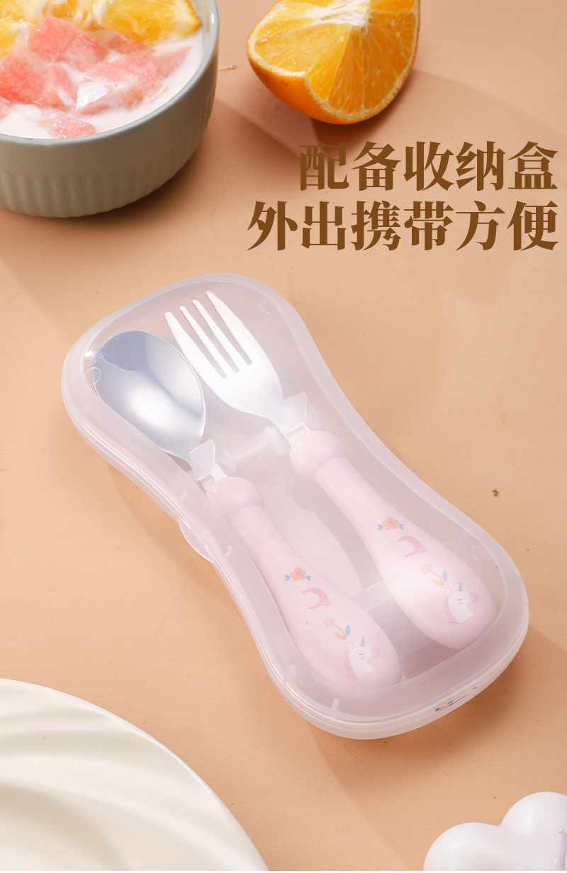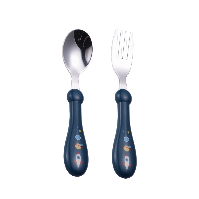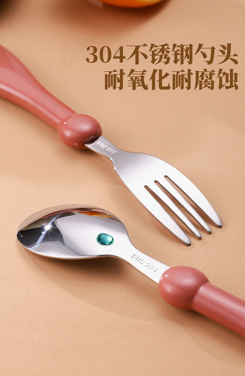 어린이 304 스테인레스 스틸 포크 스푼 세트 베이비 스푼 포크는 입을 다치게하지 않습니다. 훈련 숟가락 보완 식기