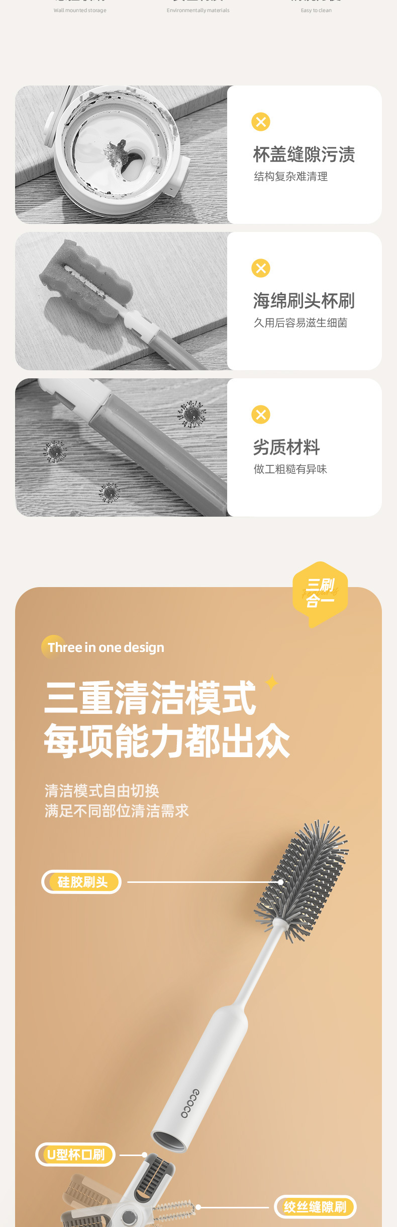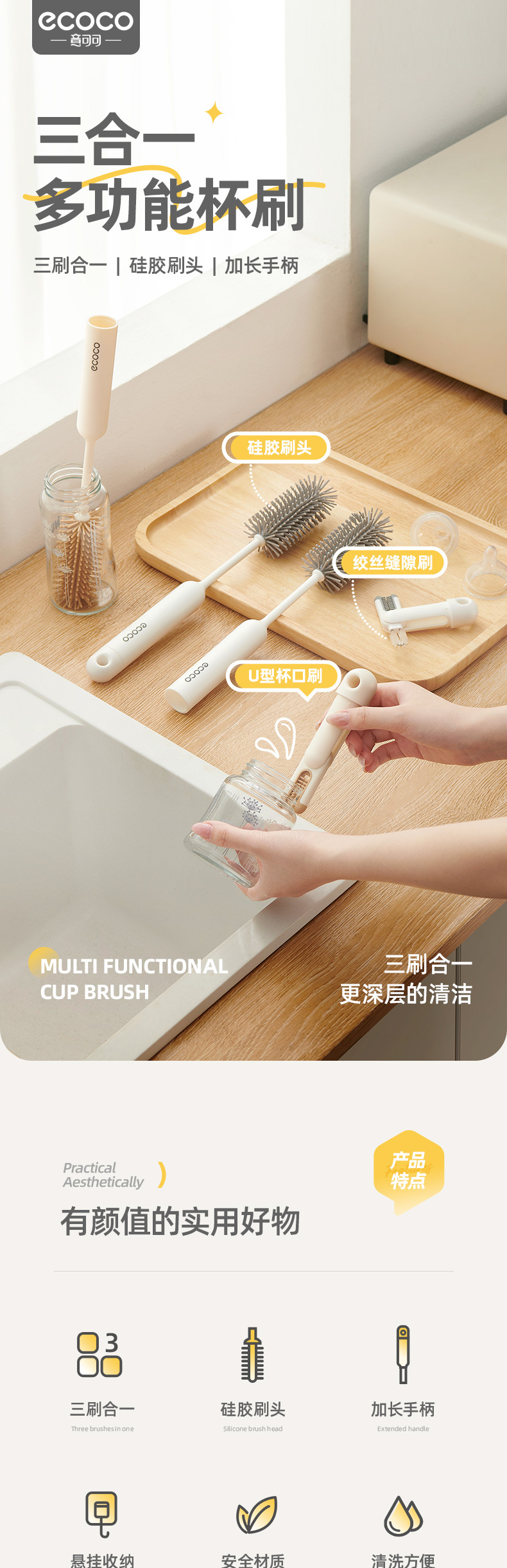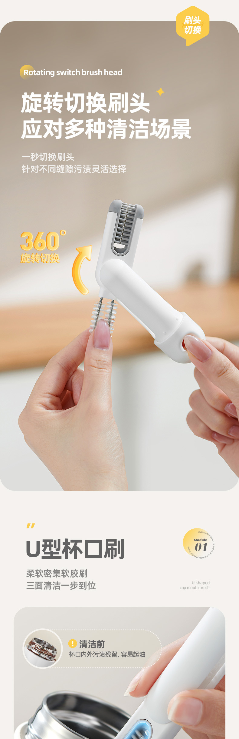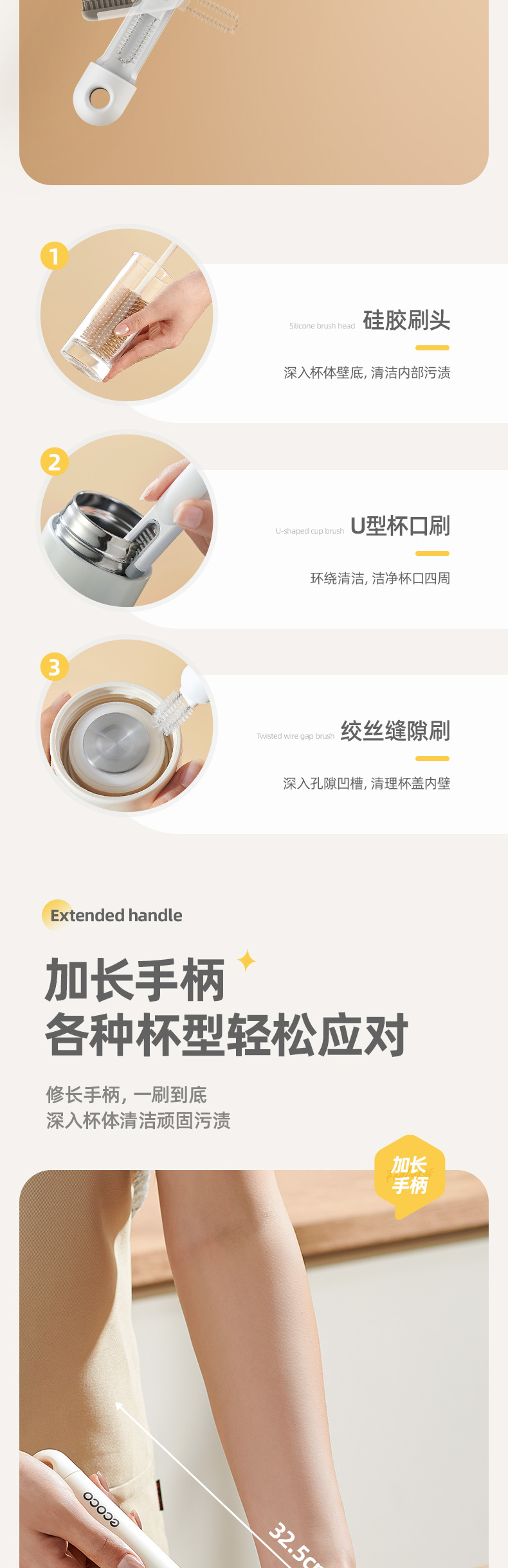 컵 브러시, 물컵 청소, 젖병, 보온병 컵 청소 브러시, 가정용 3-in-1 다기능 긴 손잡이 컵 세척 브러시