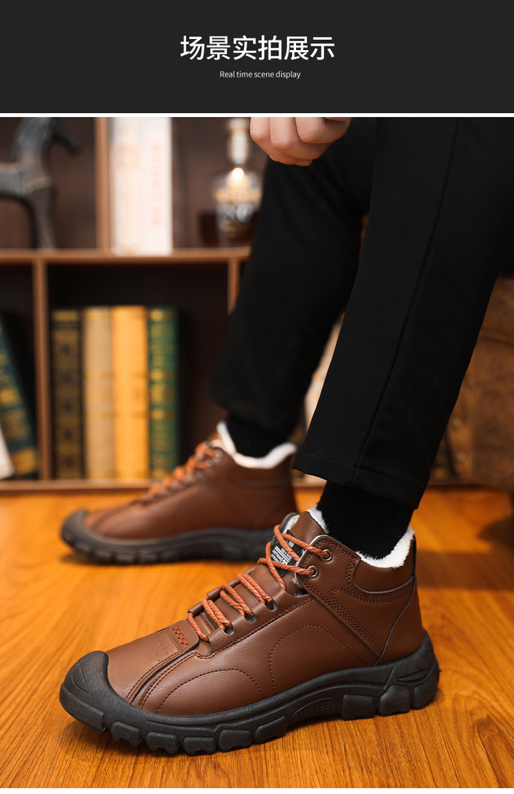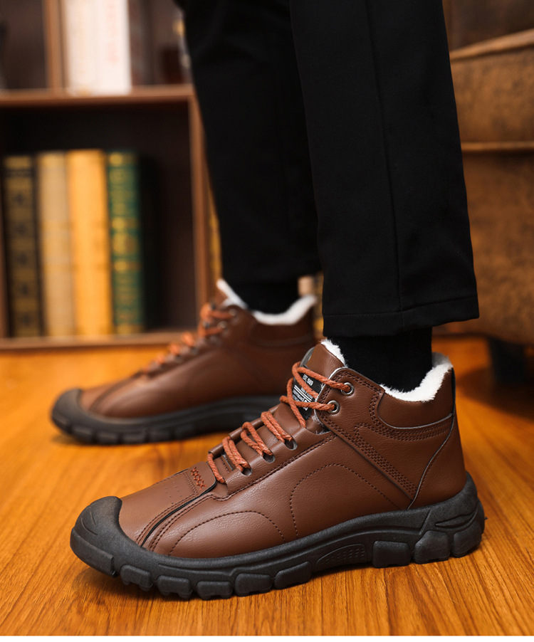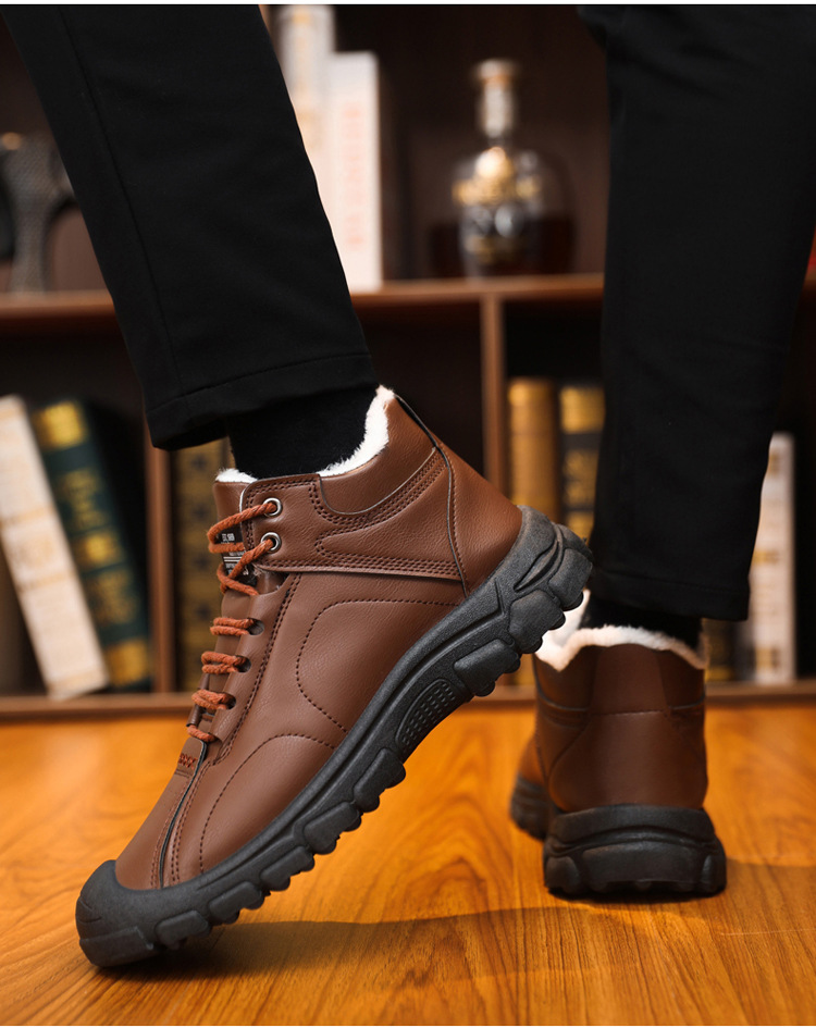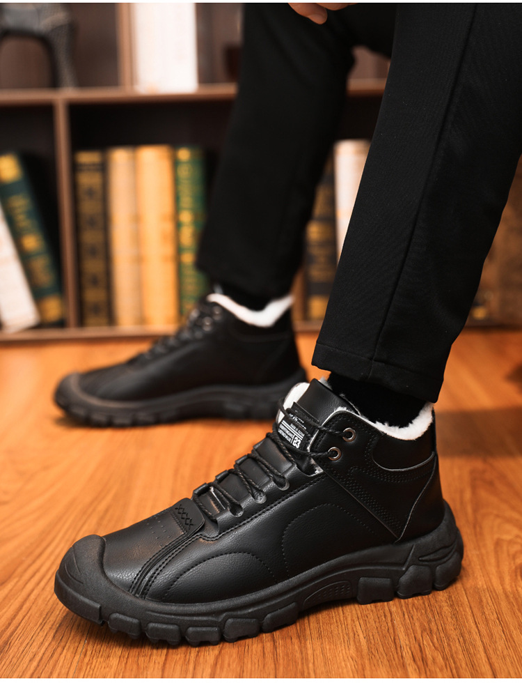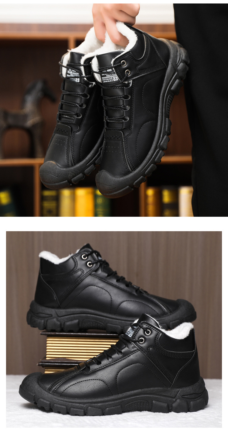 스노우 부츠 2024 새로운 겨울 기모 따뜻한 마틴 부츠 남성 부츠 부드러운 바닥 부드러운 표면 높은 남성 신발 면화 신발