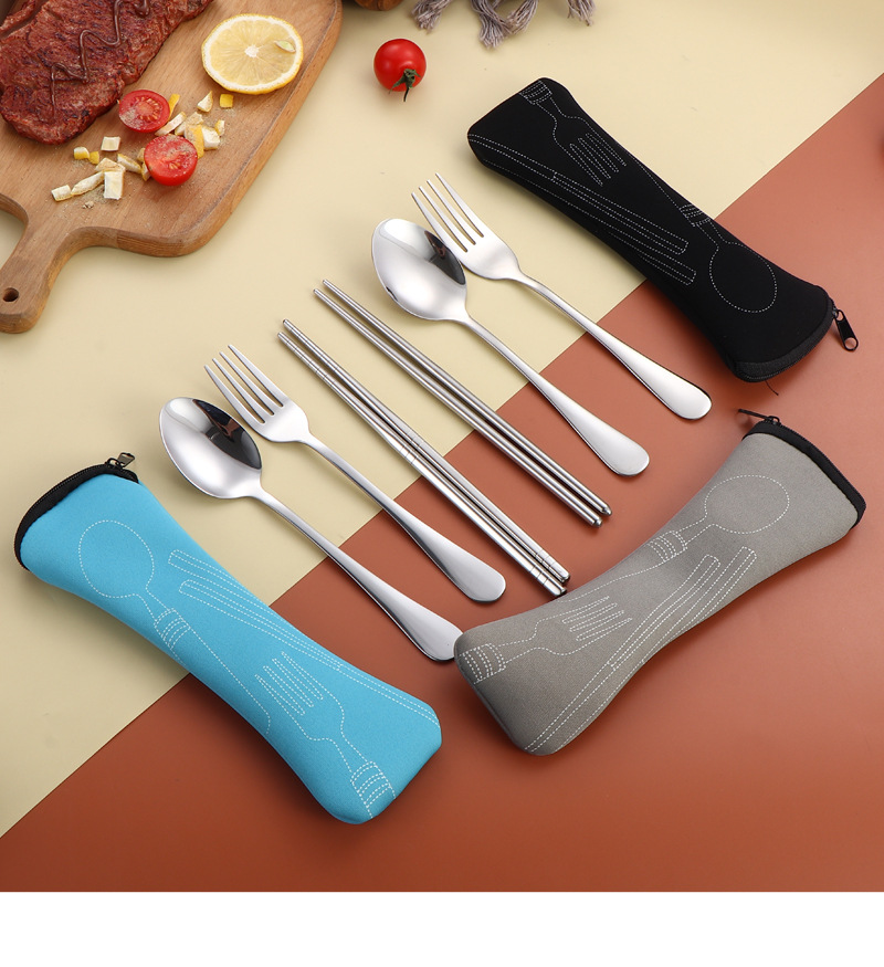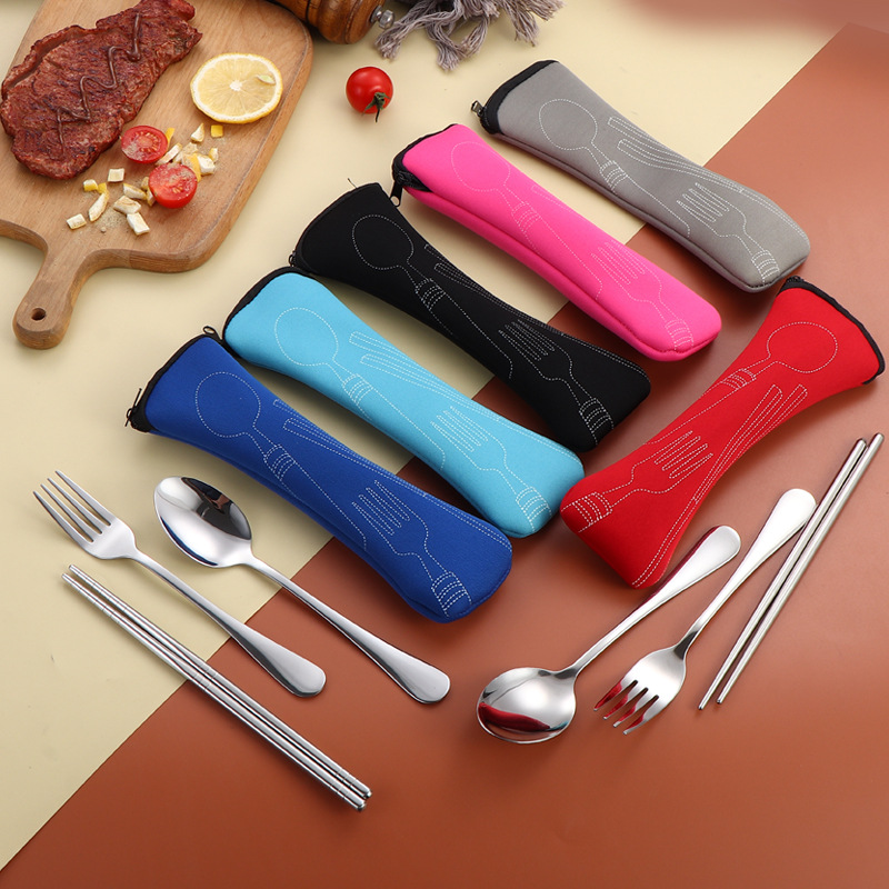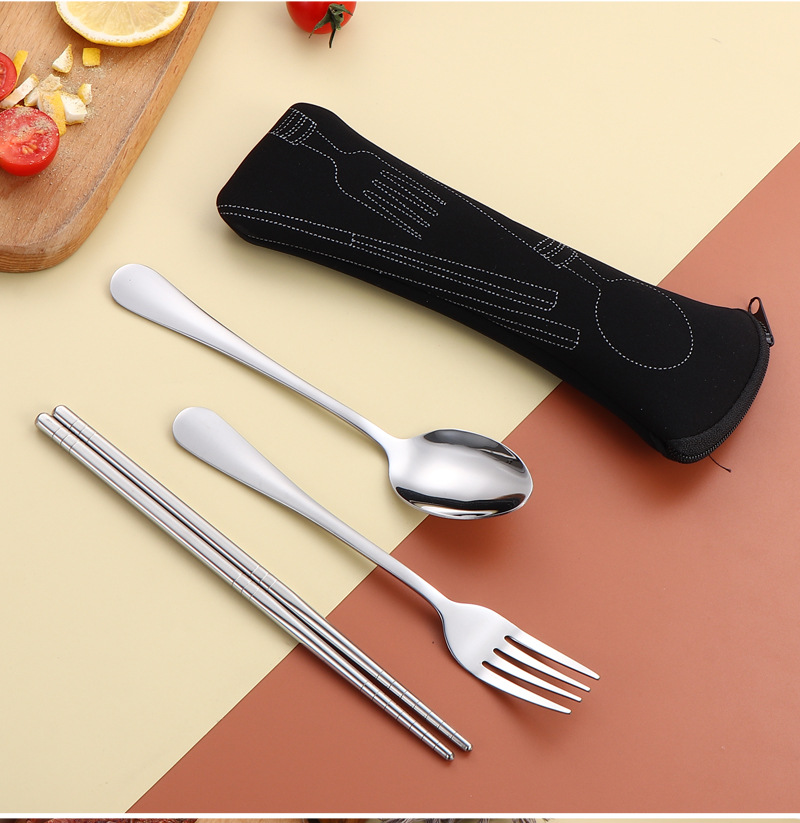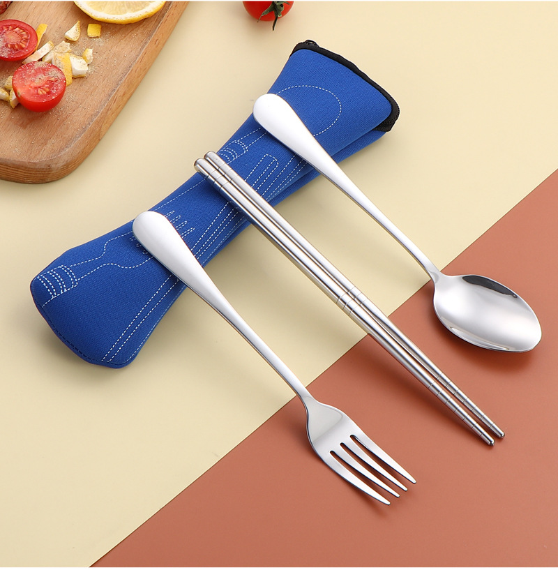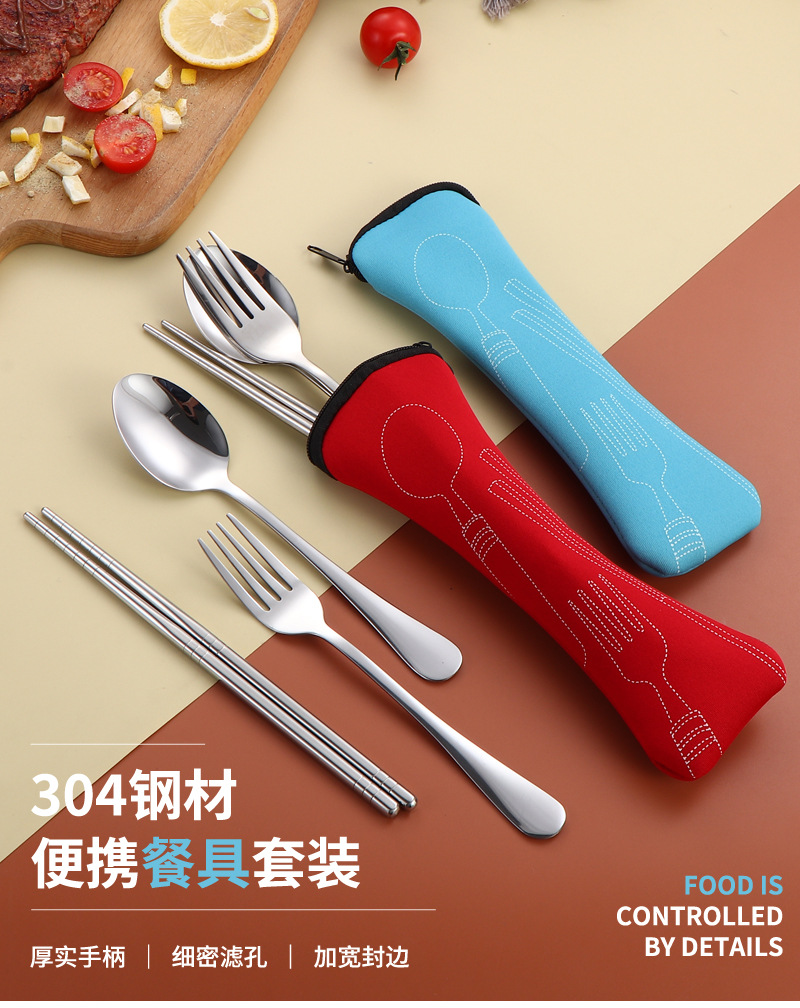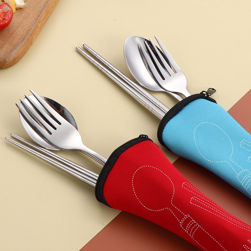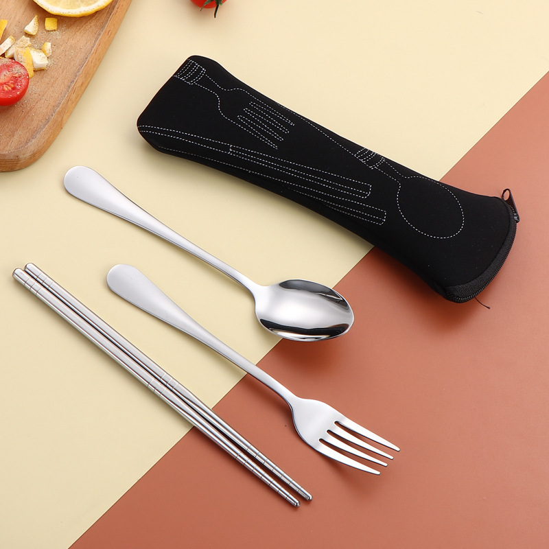 304 스테인레스 스틸 식기 세트 2 ~ 3 조각 숟가락 젓가락 포크 학생 편리한 선물 야외 천 가방 보관