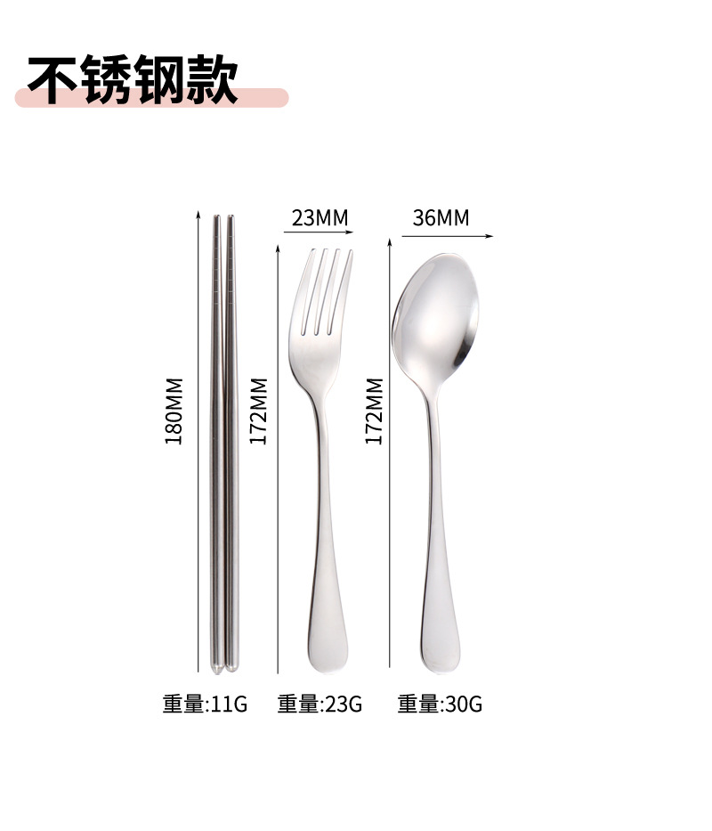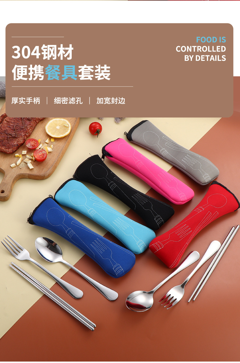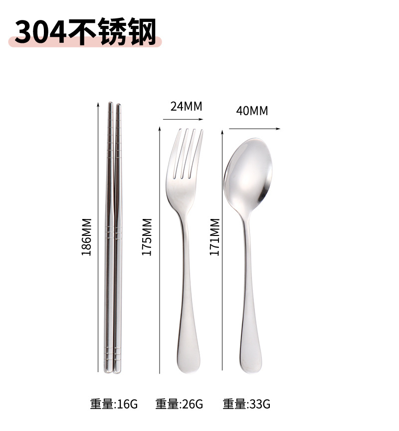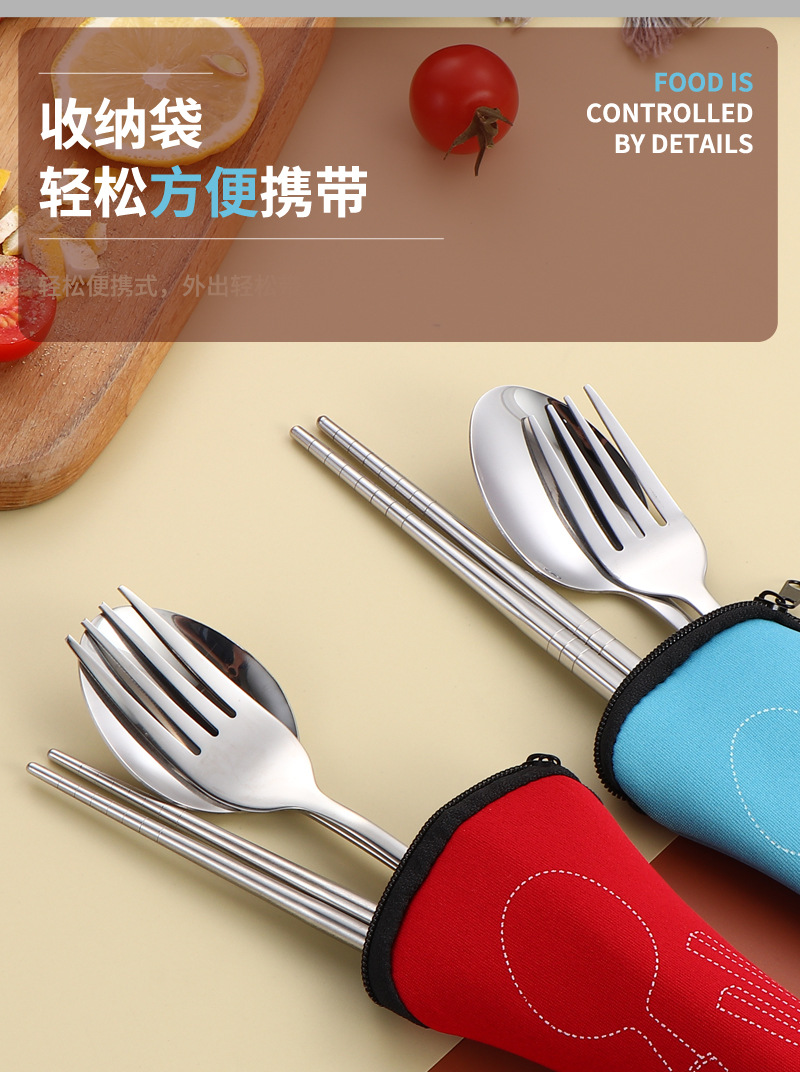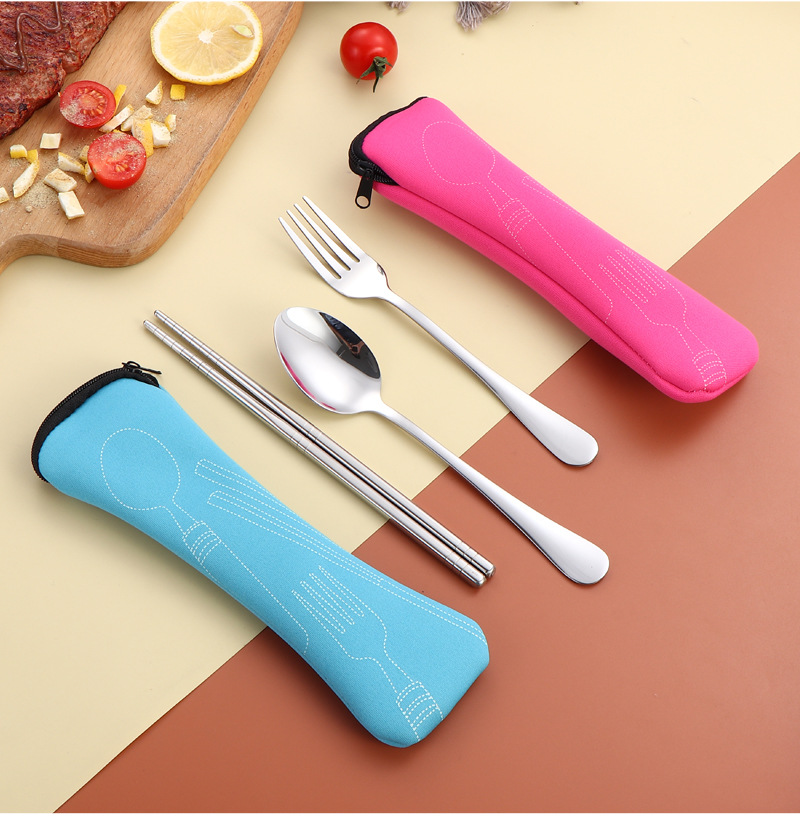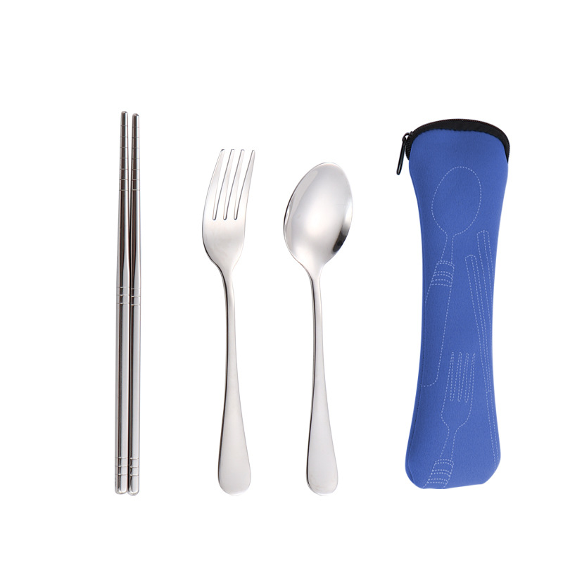 304 스테인레스 스틸 식기 세트 2 ~ 3 조각 숟가락 젓가락 포크 학생 편리한 선물 야외 천 가방 보관