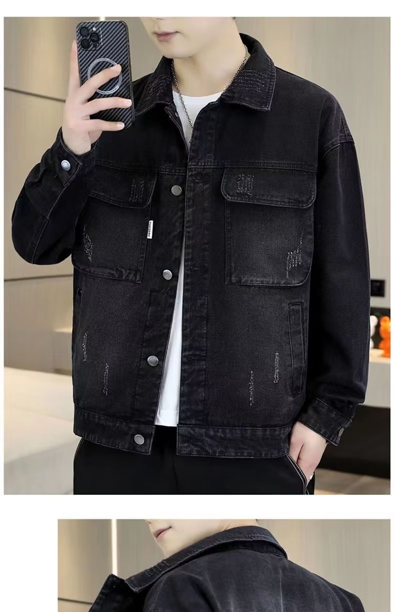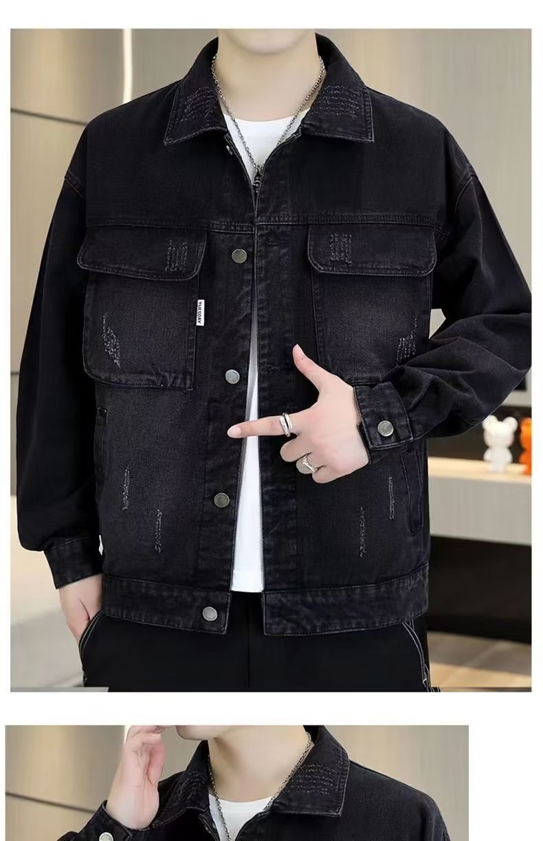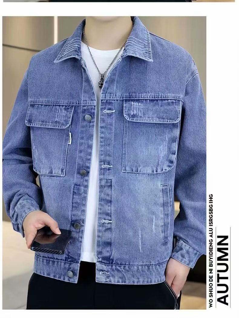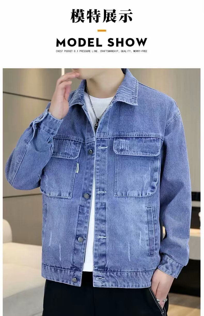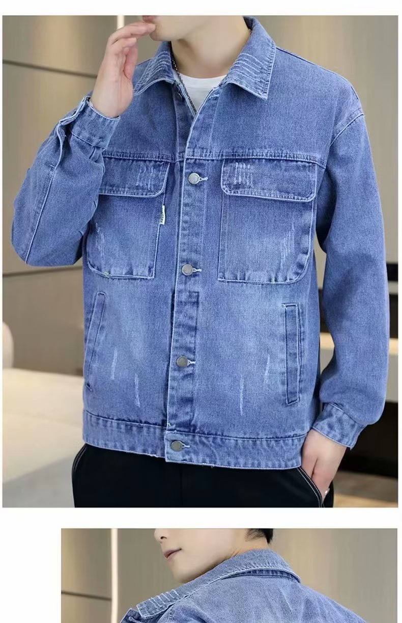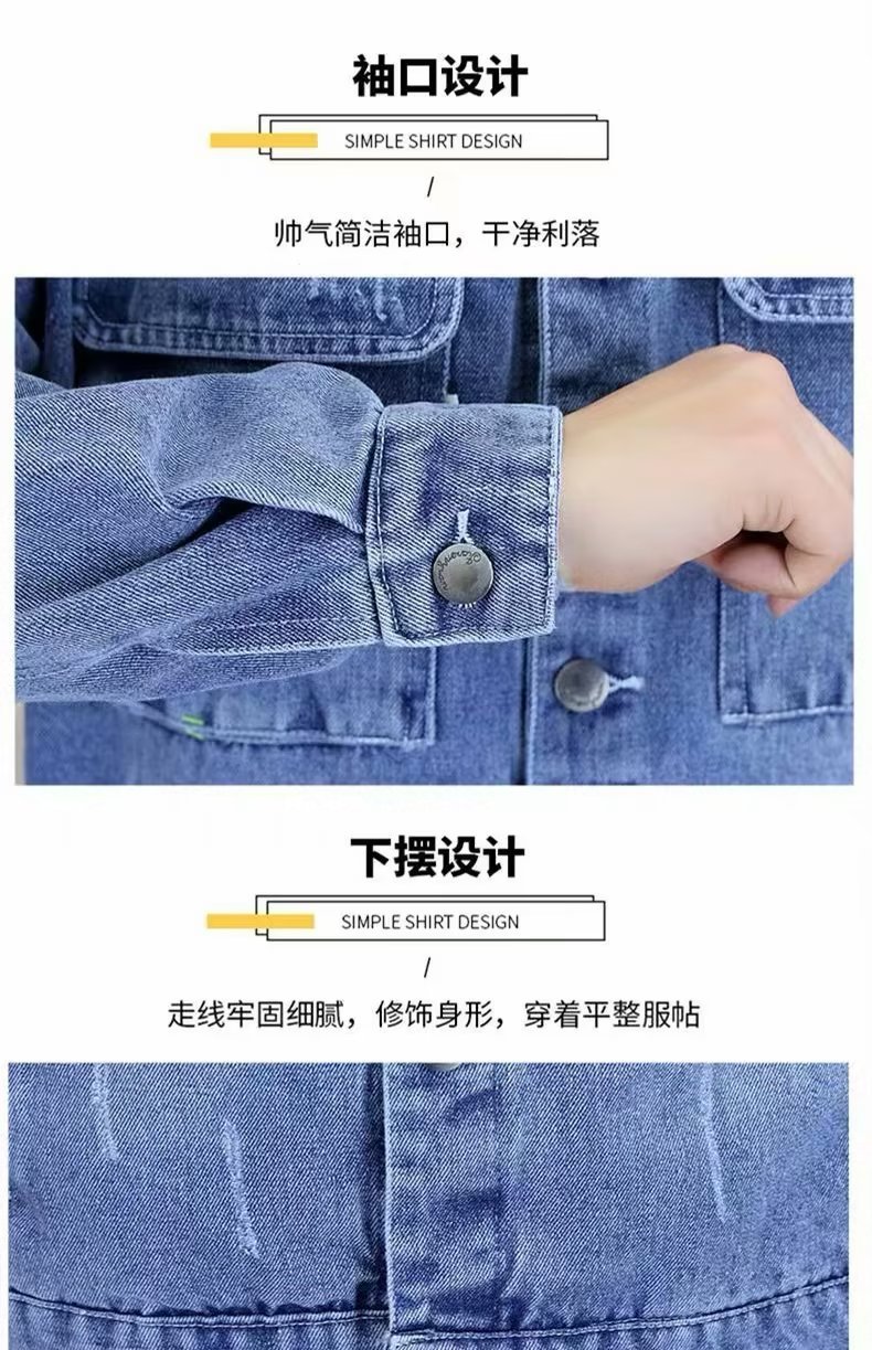 남성 데님 재킷 봄과 가을 2024 새로운 건설 현장 내마모성 캐주얼 핸섬 재킷 데님 옷