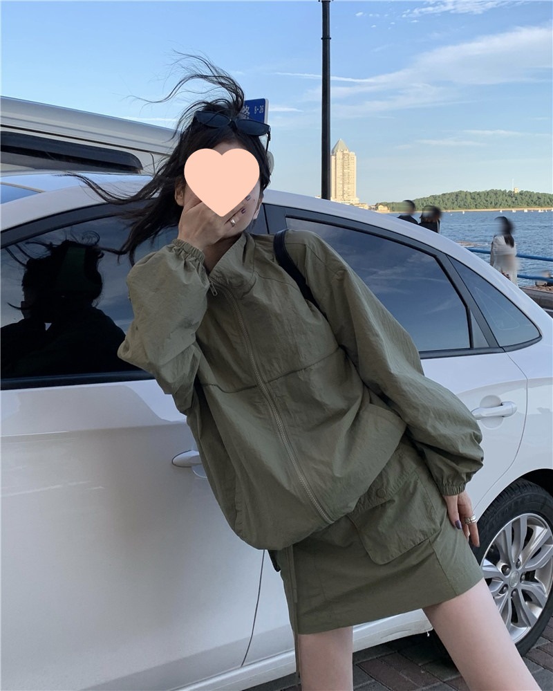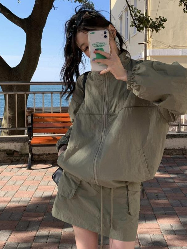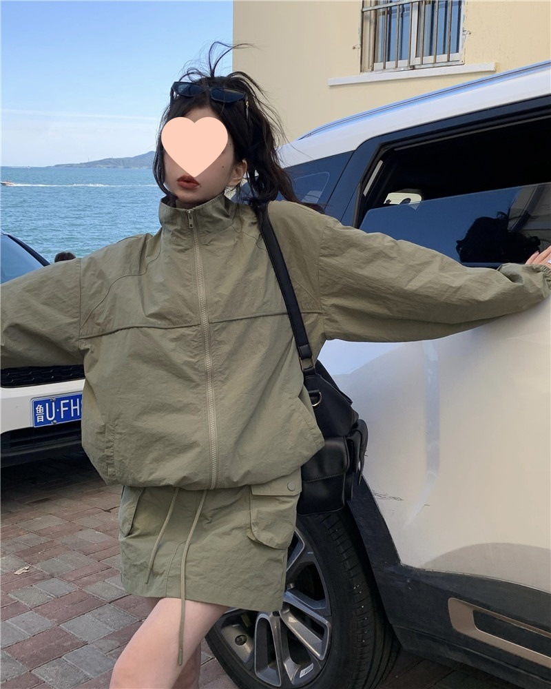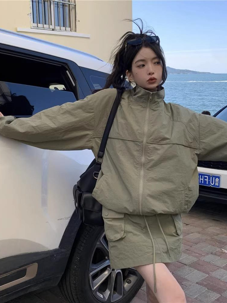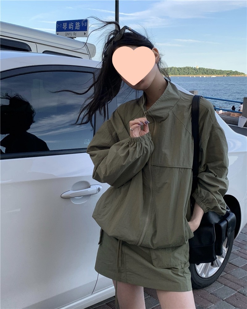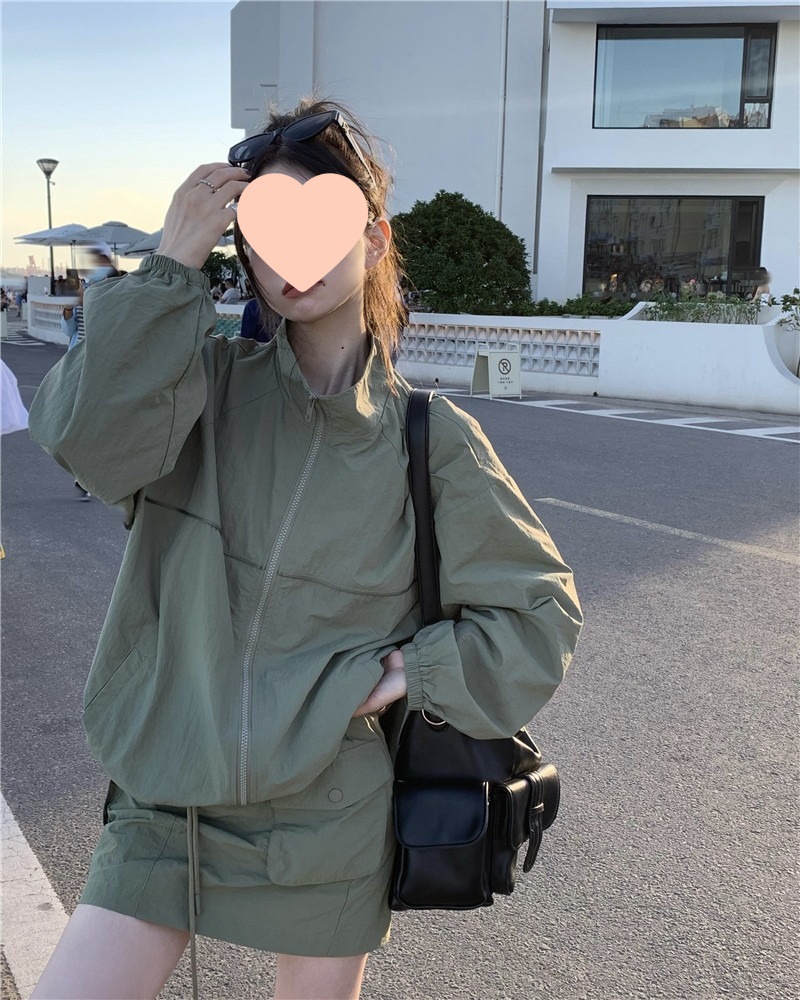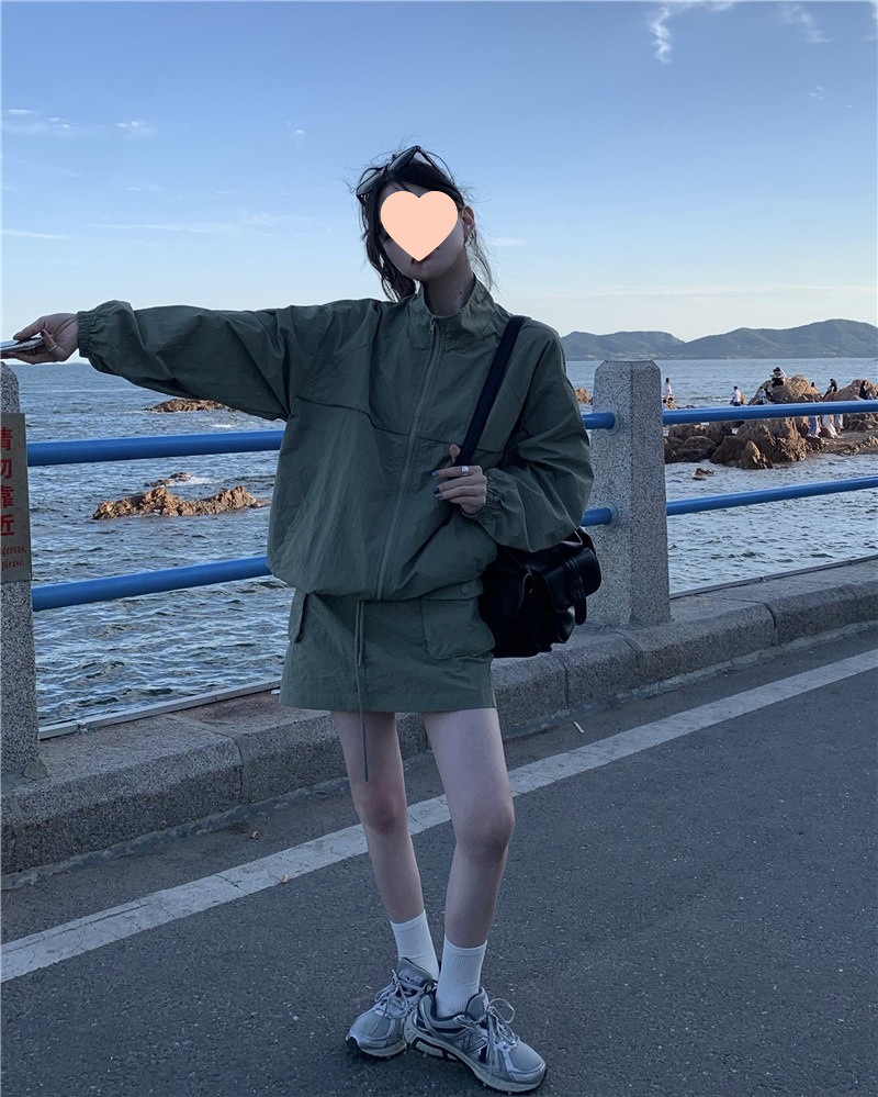 2024 년 초가을 작은 스포츠 세트 여성 그물 붉은 튀김 거리 얇은 충전 코트 바지 짧은 치마 투피스 세트