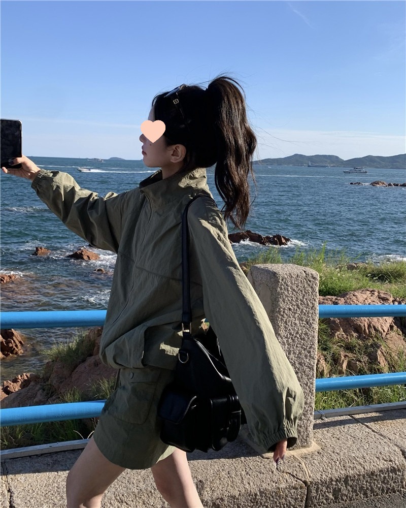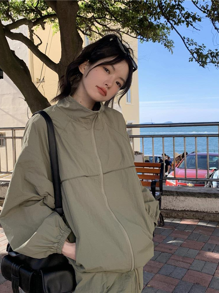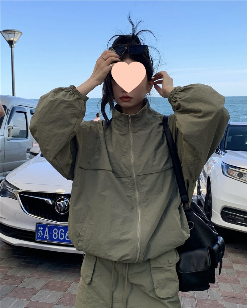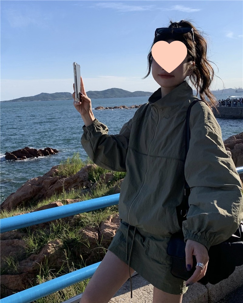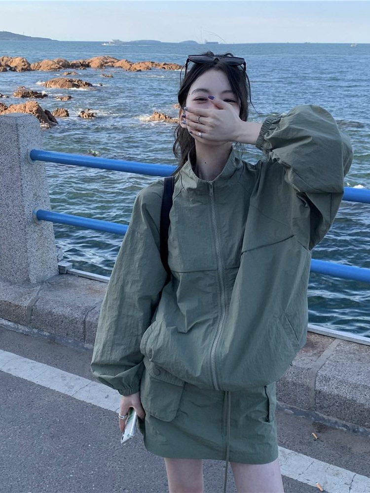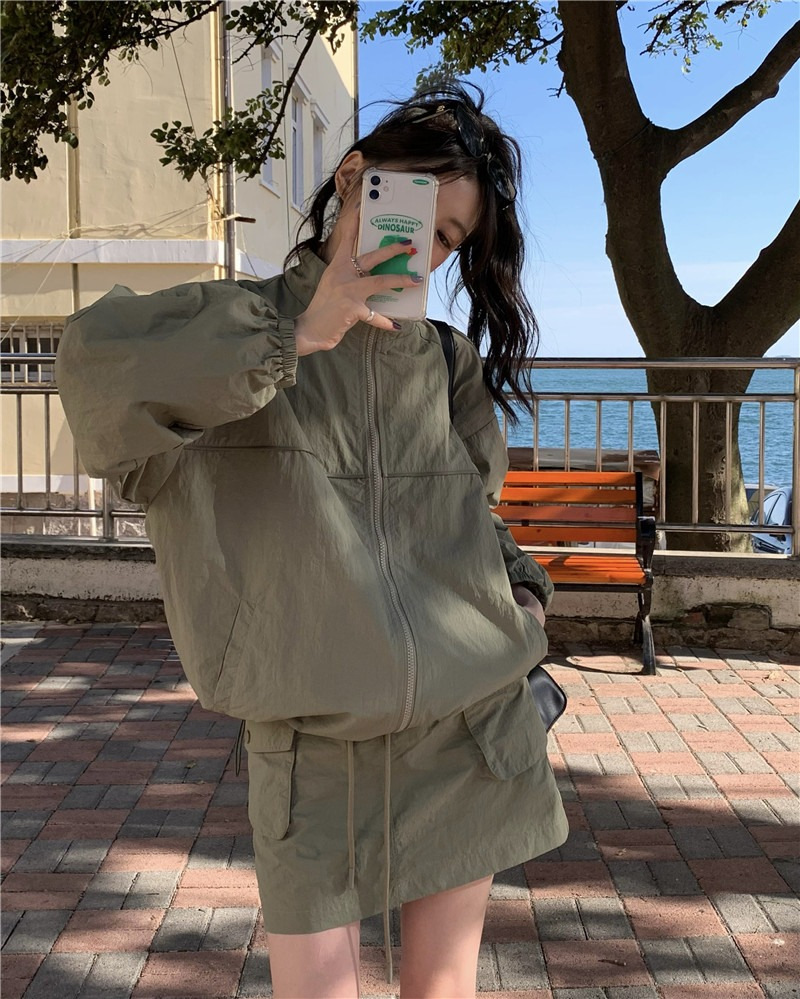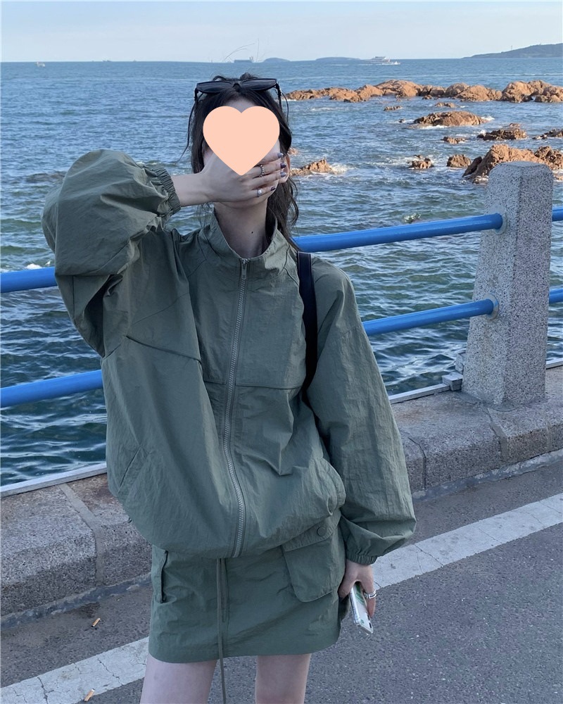2024 년 초가을 작은 스포츠 세트 여성 그물 붉은 튀김 거리 얇은 충전 코트 바지 짧은 치마 투피스 세트