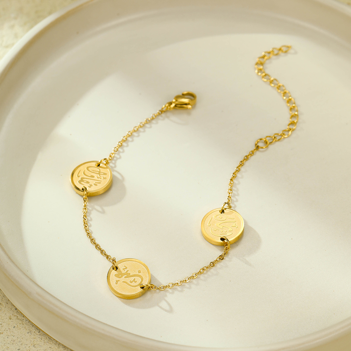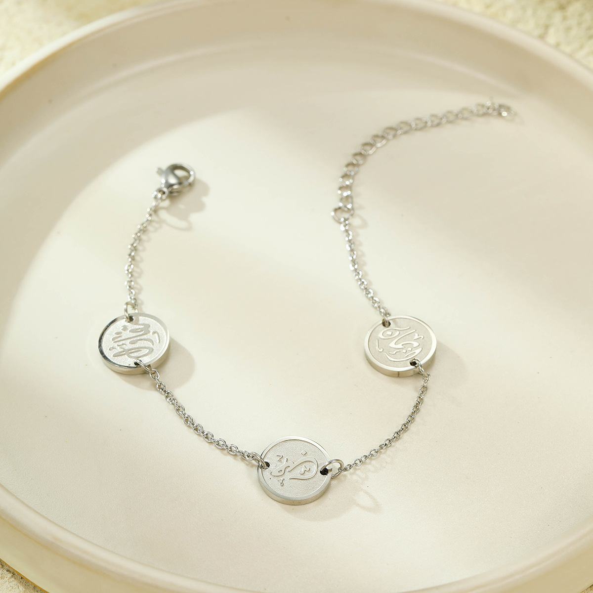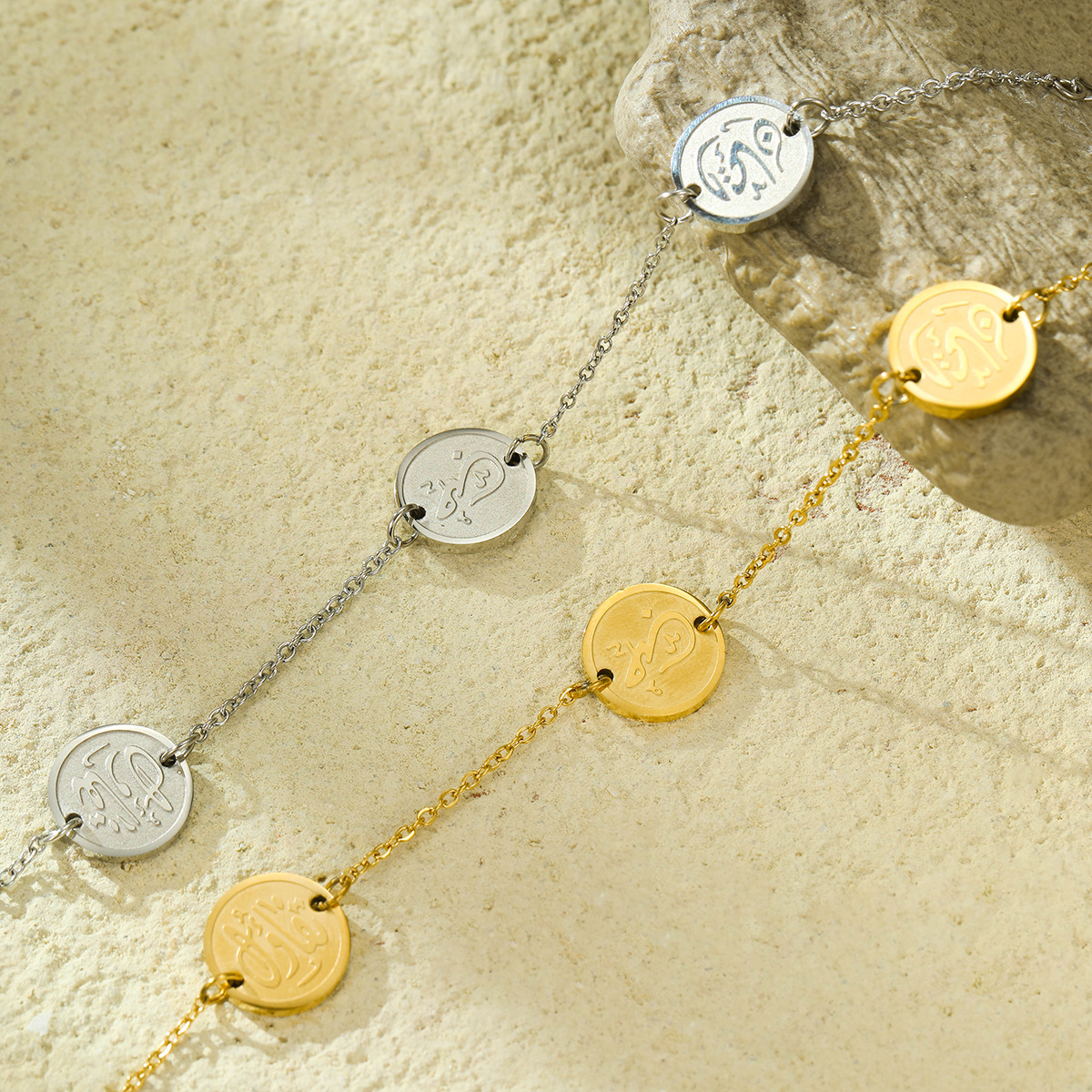 국경 간 스테인레스 스틸 아랍어 라운드 카드 지원 레터링 티타늄 스틸 남성과 여성의 동일한 스타일이 올 매치 팔찌를 퇴색시키지 않습니다.
