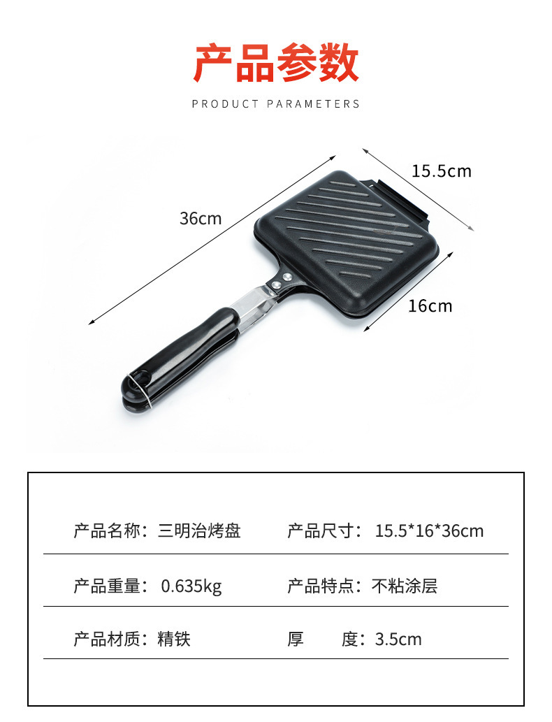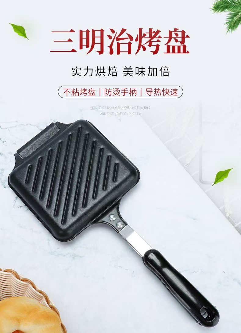 가정용 양면 비 스틱 샌드위치 베이킹 트레이 주철 와플 아침 식사 빵 프라이팬 공장 직접 국경
