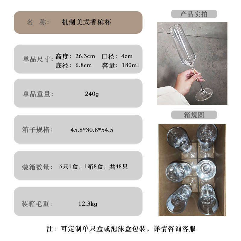 기계로 만든 유리 아메리칸 샴페인 글라스(싱글)