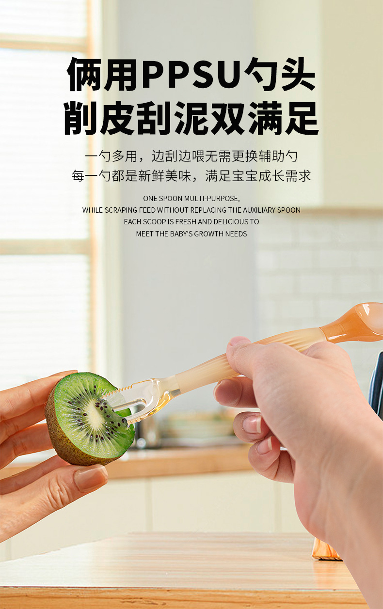 아기 제품 새로운 PPSU 더블 헤드 스크래핑 스푼 실리콘 아기 과일 식품 보충 숟가락 휴대용 과일 긁기 숟가락