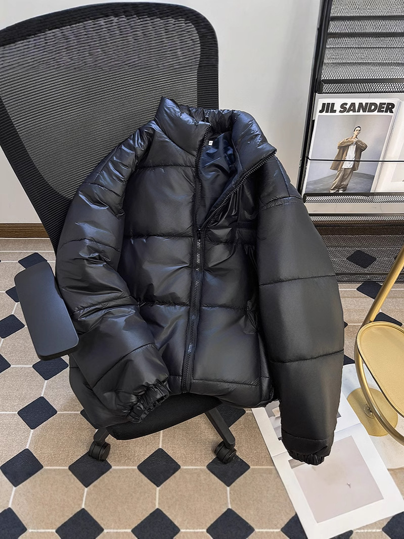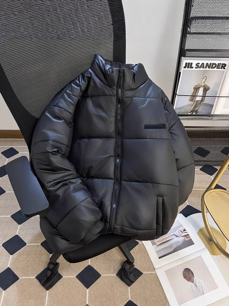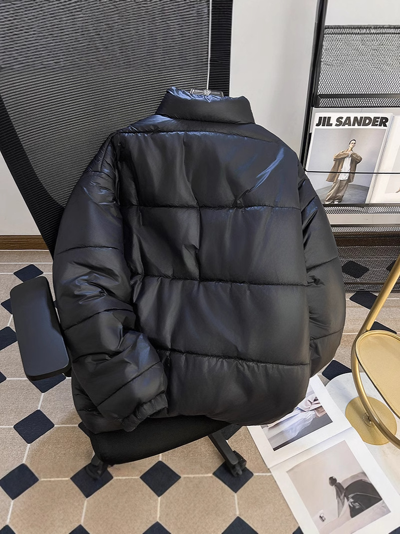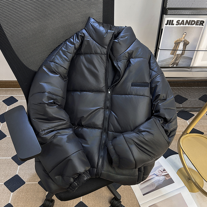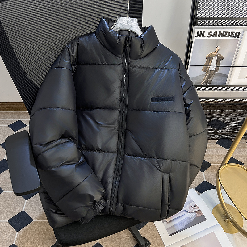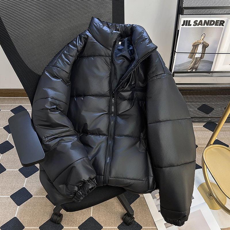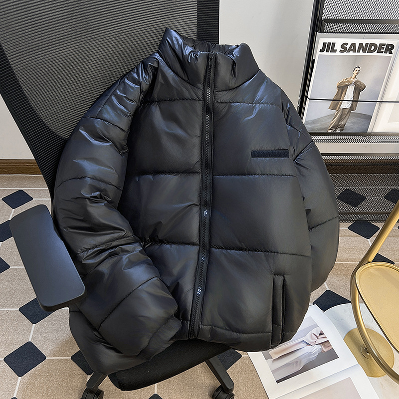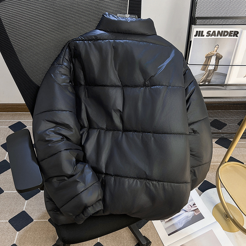 남성과 여성을위한 새로운 미국식 PU 가죽 다운 코튼 패딩 코트 겨울 두꺼운 따뜻한 코트 스탠드 칼라 빵 코트면 패딩 재킷
