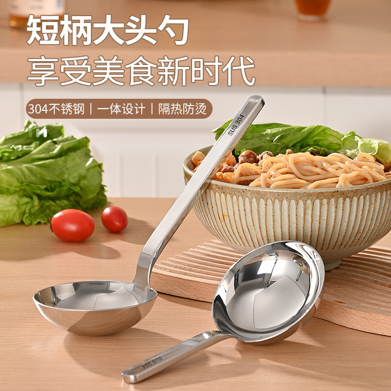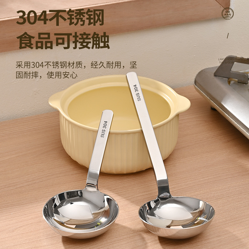 短柄大头勺子简约喝汤大圆勺子餐具定制批发不锈钢勺子家用高颜值