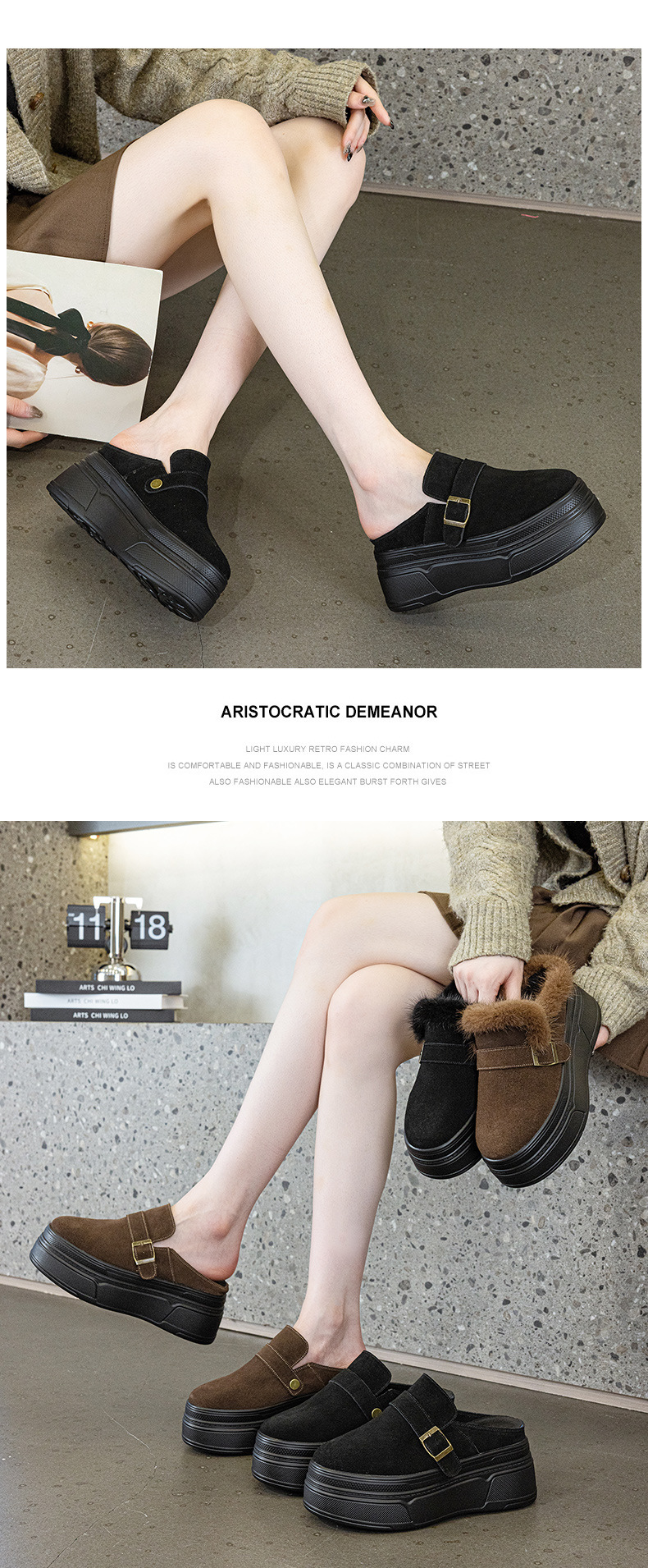 여성용 플리스 안감 버켄스탁 슈즈 2026년 겨울 신상 키높이 두꺼운 밑창 스노우 부츠 작은 키를 가진 분들을 위한 두꺼운 밑창 면 슬리퍼
