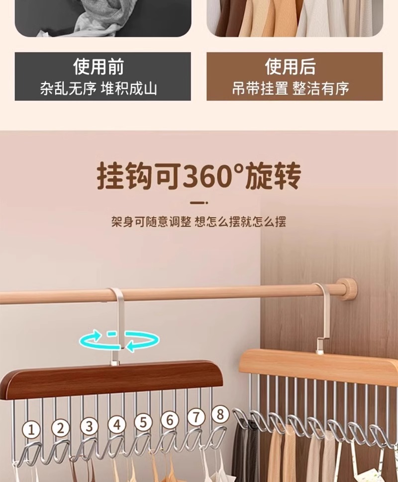 인터넷 축하 슬링 다기능 후크 넥타이 속옷 저장 실크 스카프 후크 고급 8 훅 걸이 솔리드 우드 건조 랙
