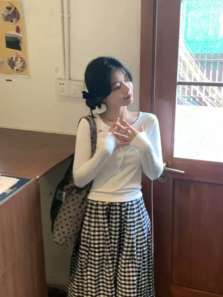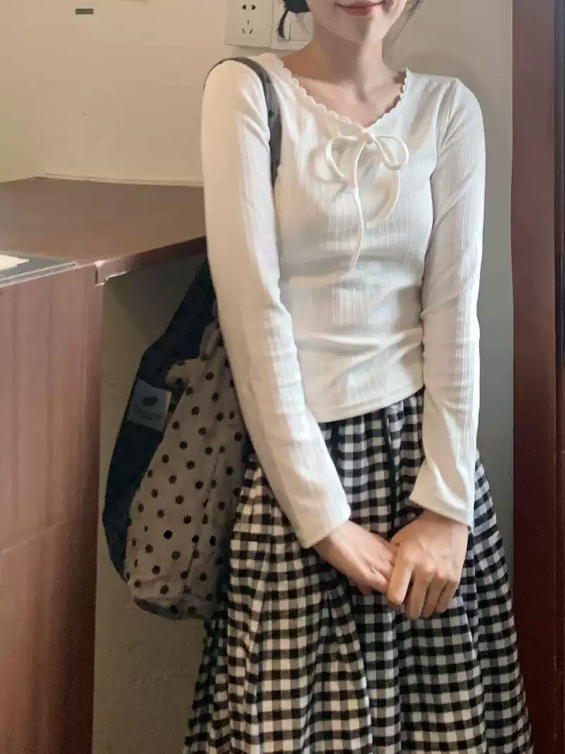 재고 링 크림 화이트 활 슬림 핏 베이스 소프트 왁스 쉘 에지 긴팔 티셔츠 올 매치 탑