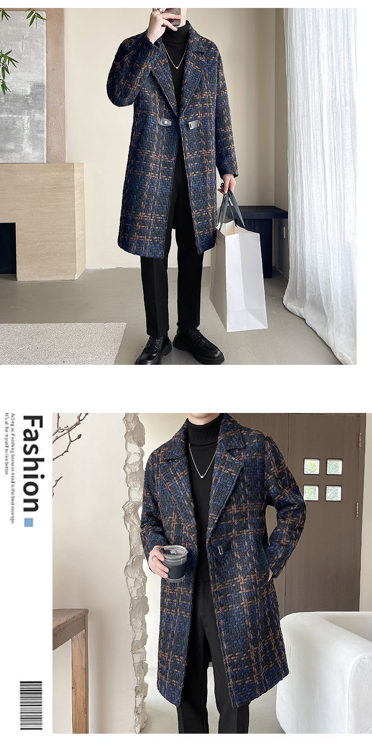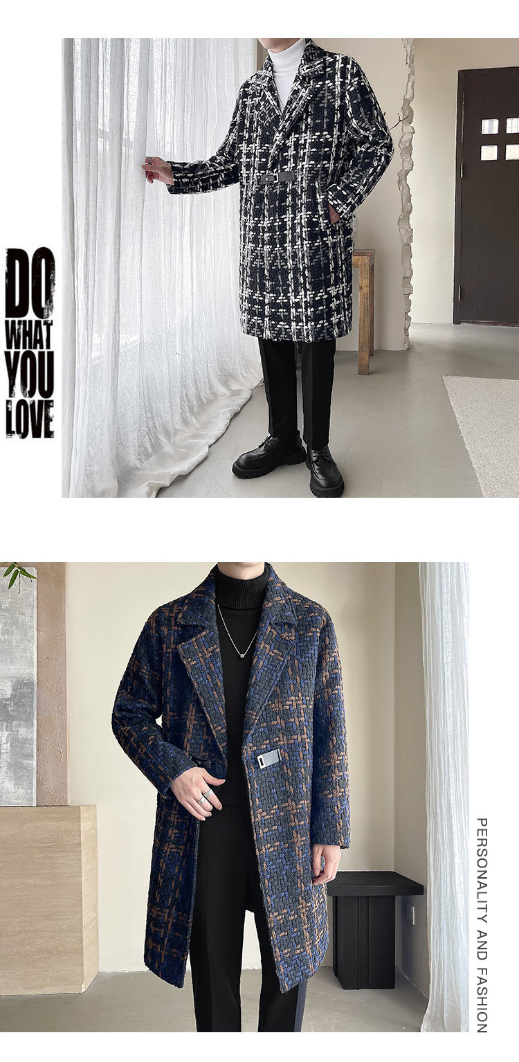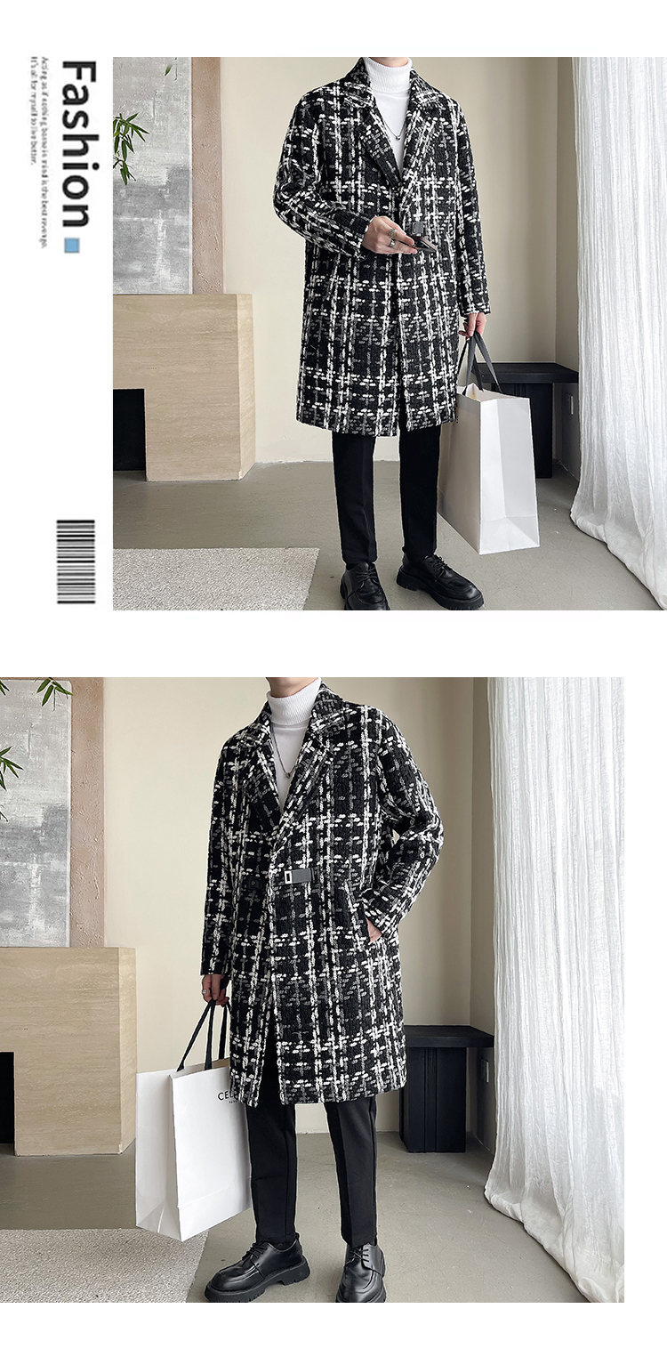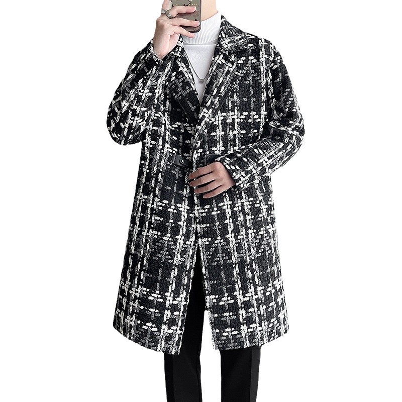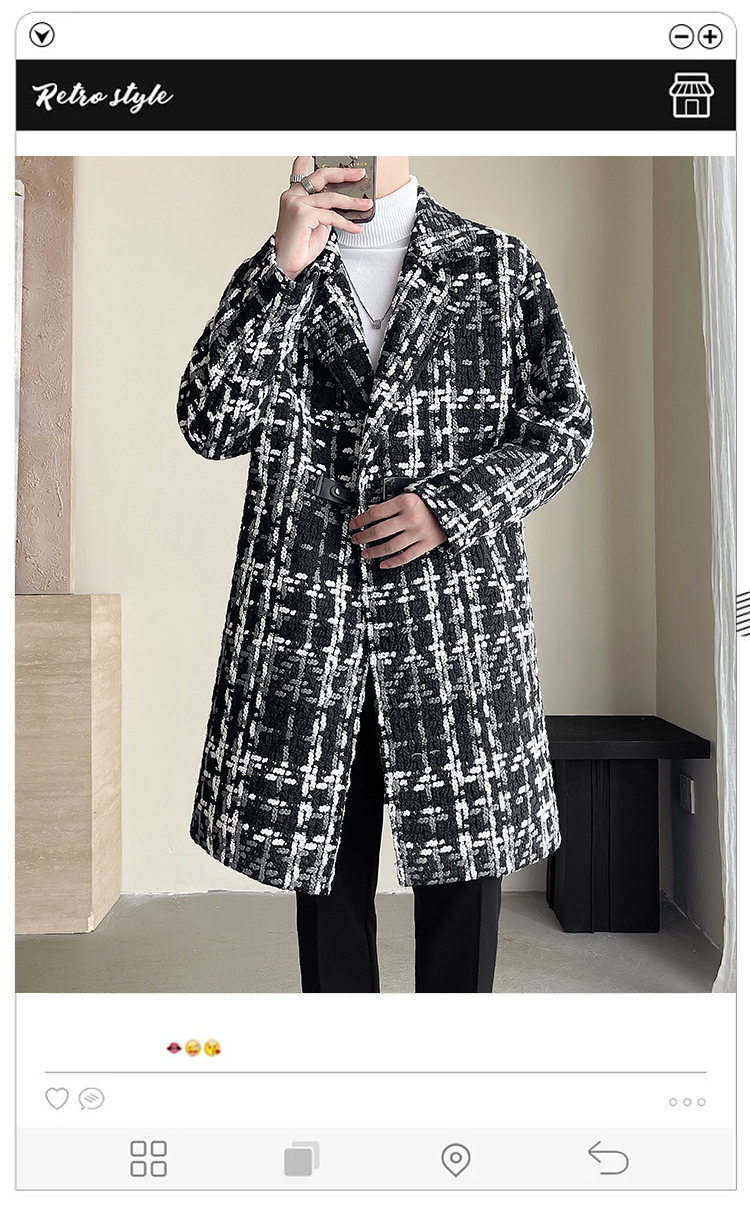 누빔안감 모직 코트 중장 가을과 겨울 새로운 느슨한 패션 샤넬 스타일 격자 무늬 코트 남자 코트