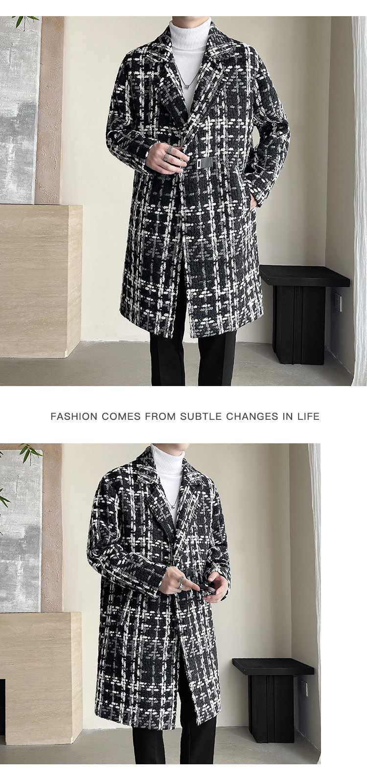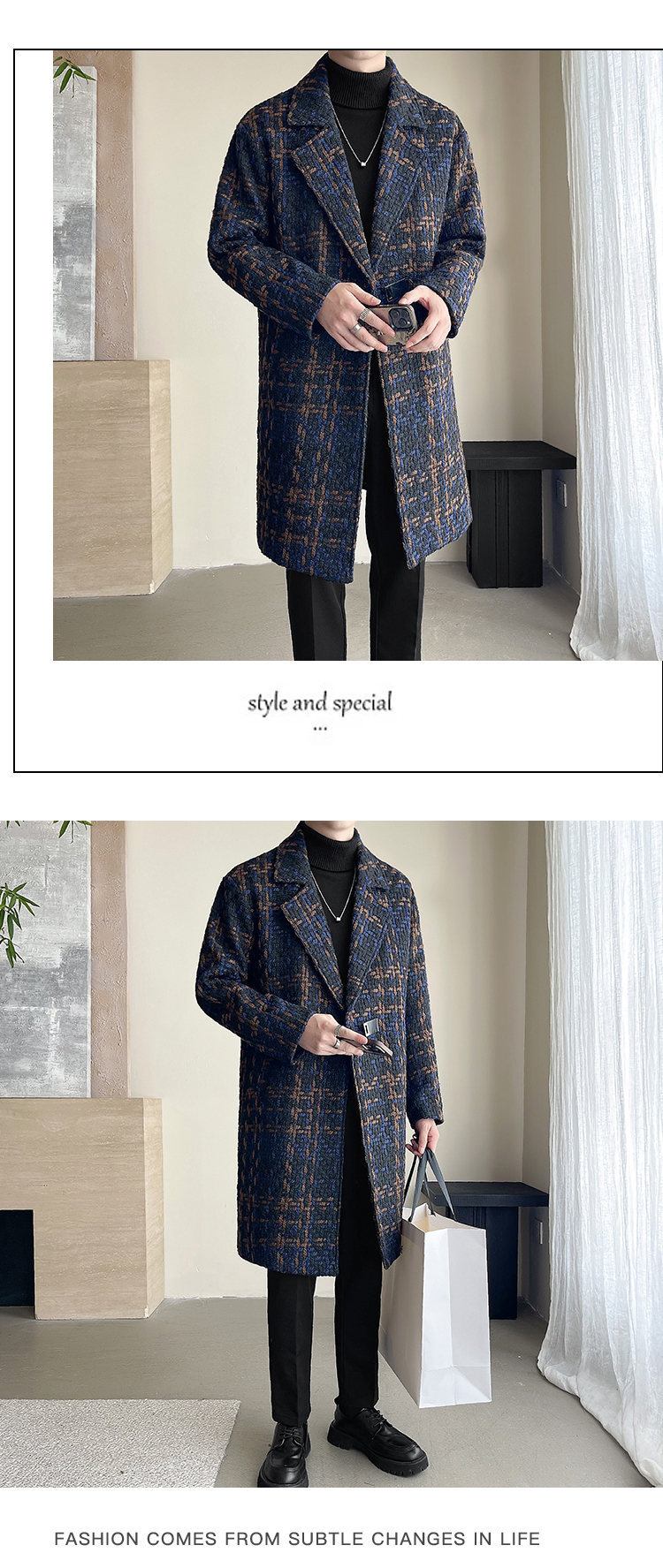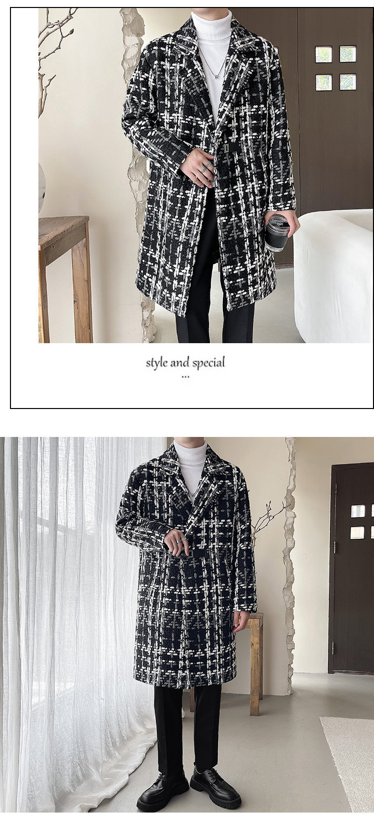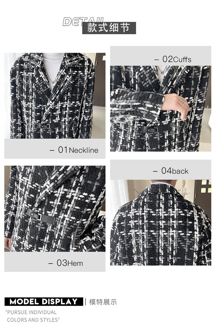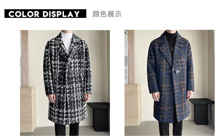 누빔안감 모직 코트 중장 가을과 겨울 새로운 느슨한 패션 샤넬 스타일 격자 무늬 코트 남자 코트