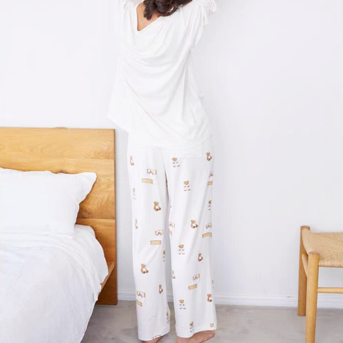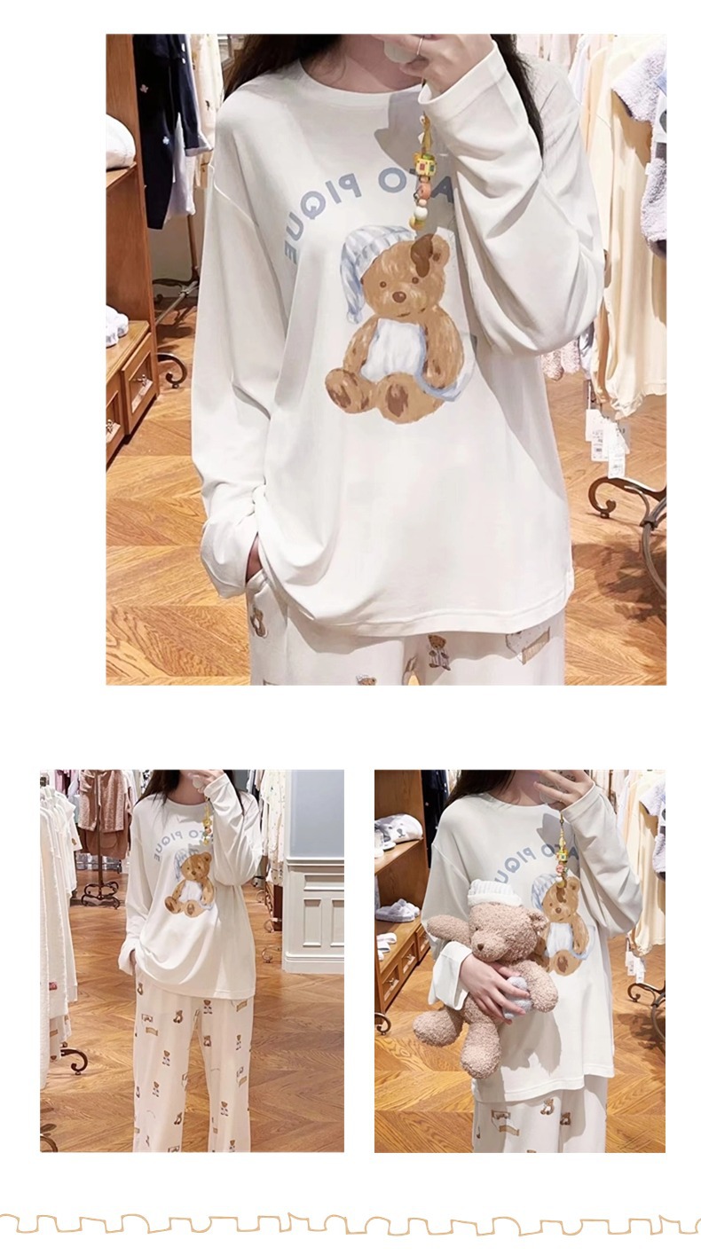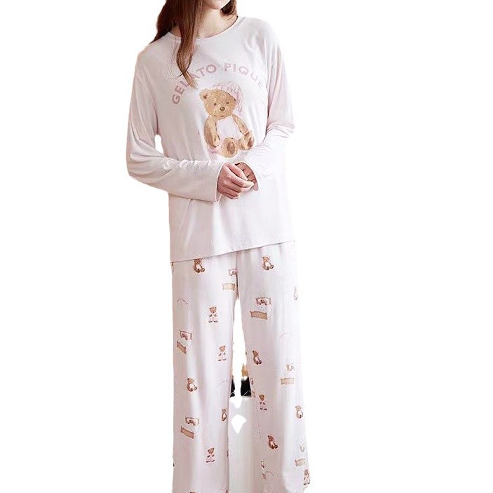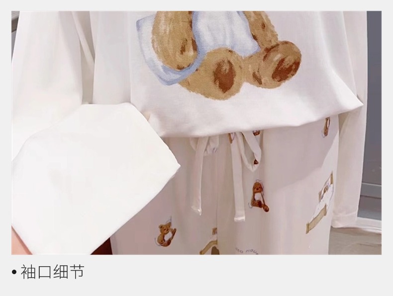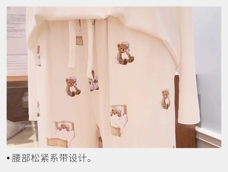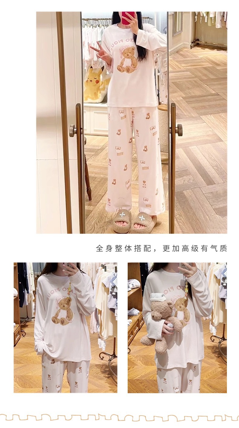 가을과 겨울 새 집 옷 여성의 부드러운 잠자는 곰 풀오버 긴 소매 잠옷 홈 라운드 넥 바지 세트