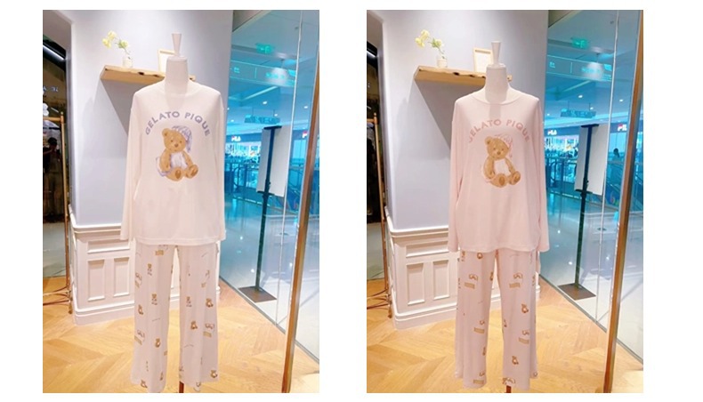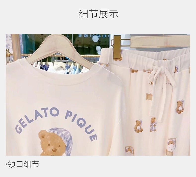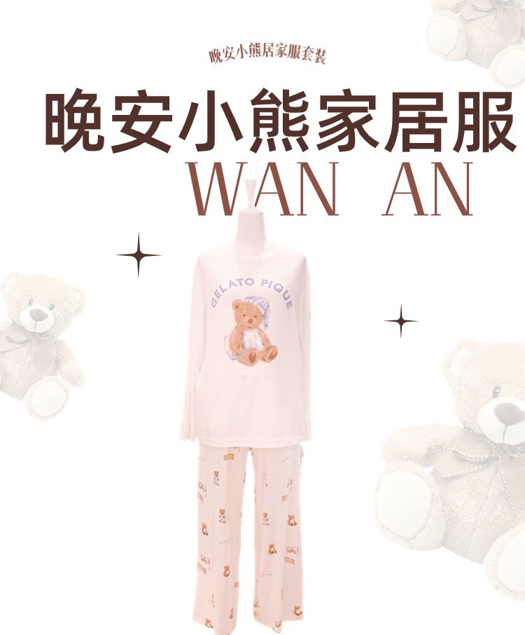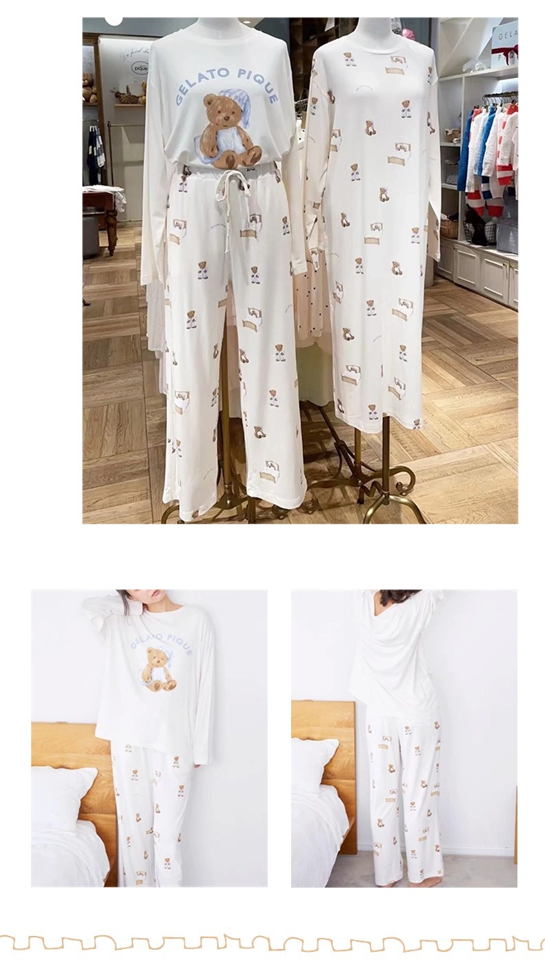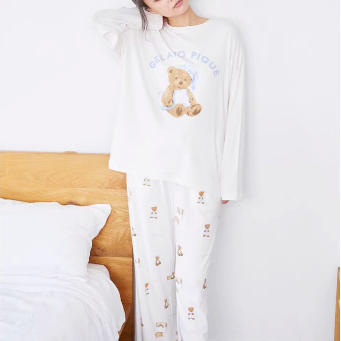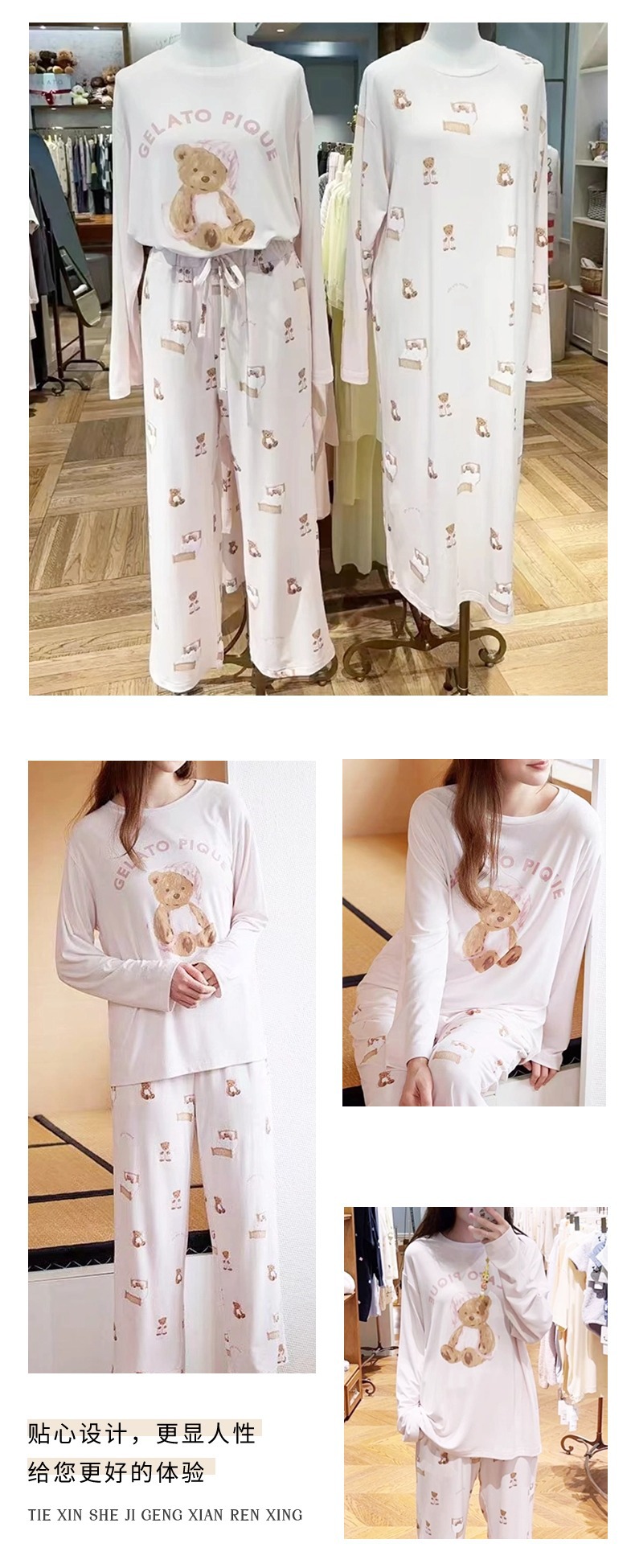 가을과 겨울 새 집 옷 여성의 부드러운 잠자는 곰 풀오버 긴 소매 잠옷 홈 라운드 넥 바지 세트