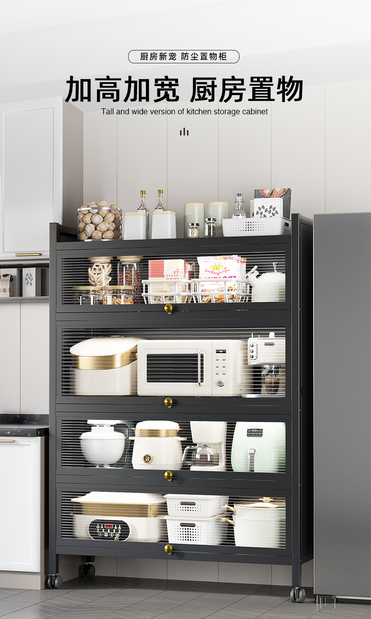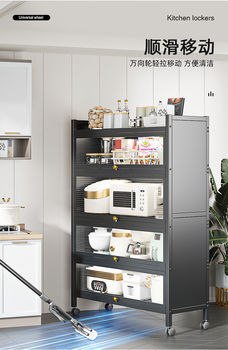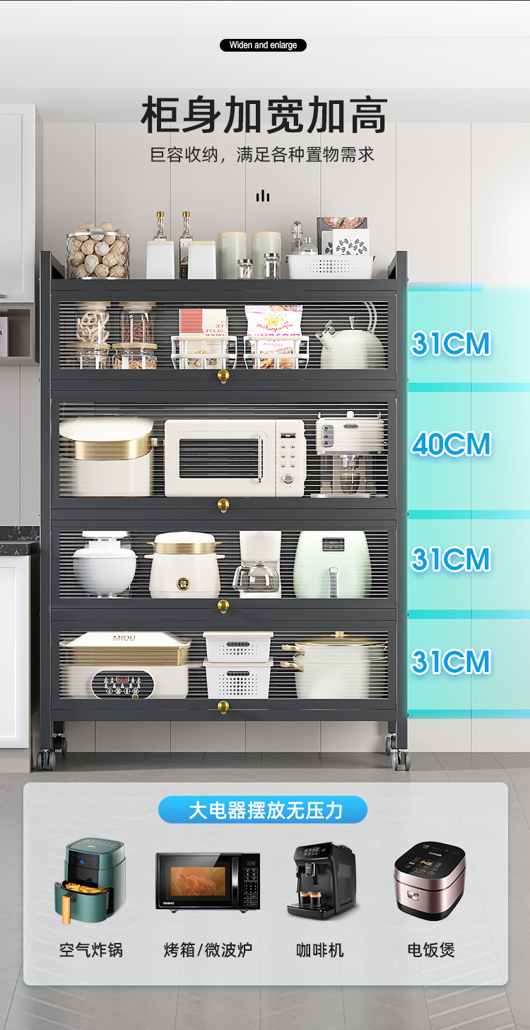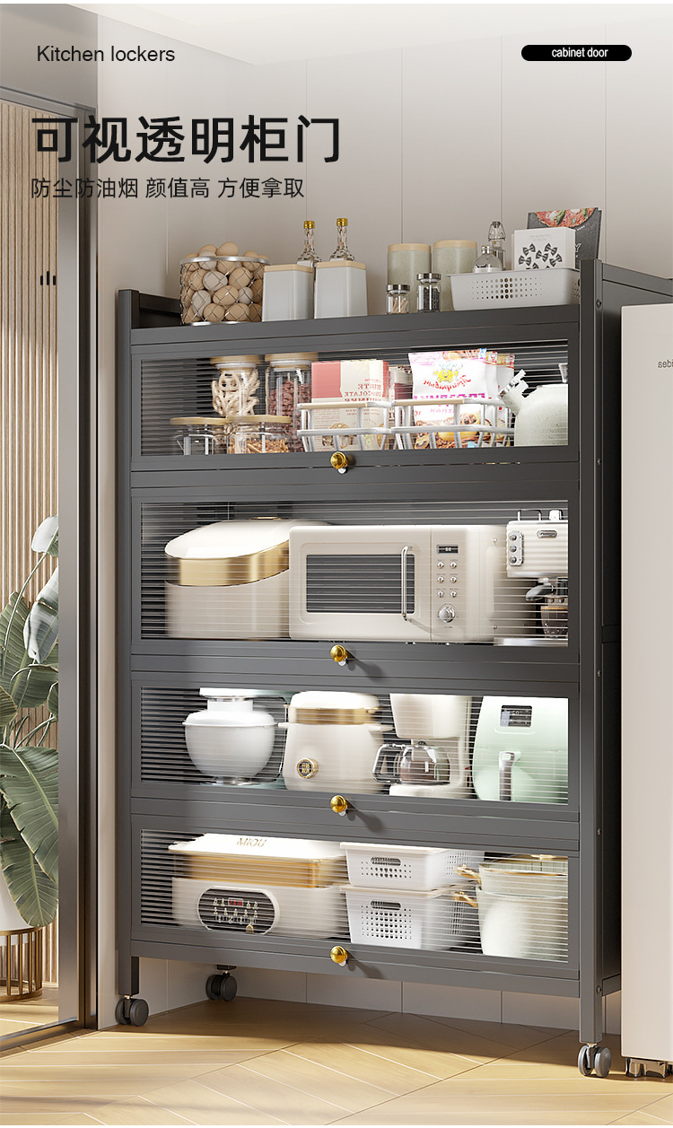 주방 스토리지 랙 바닥 다층 전자 레인지 스토리지 랙 도어 스토리지 컨테이너가있는 다기능 오븐 팟 랙