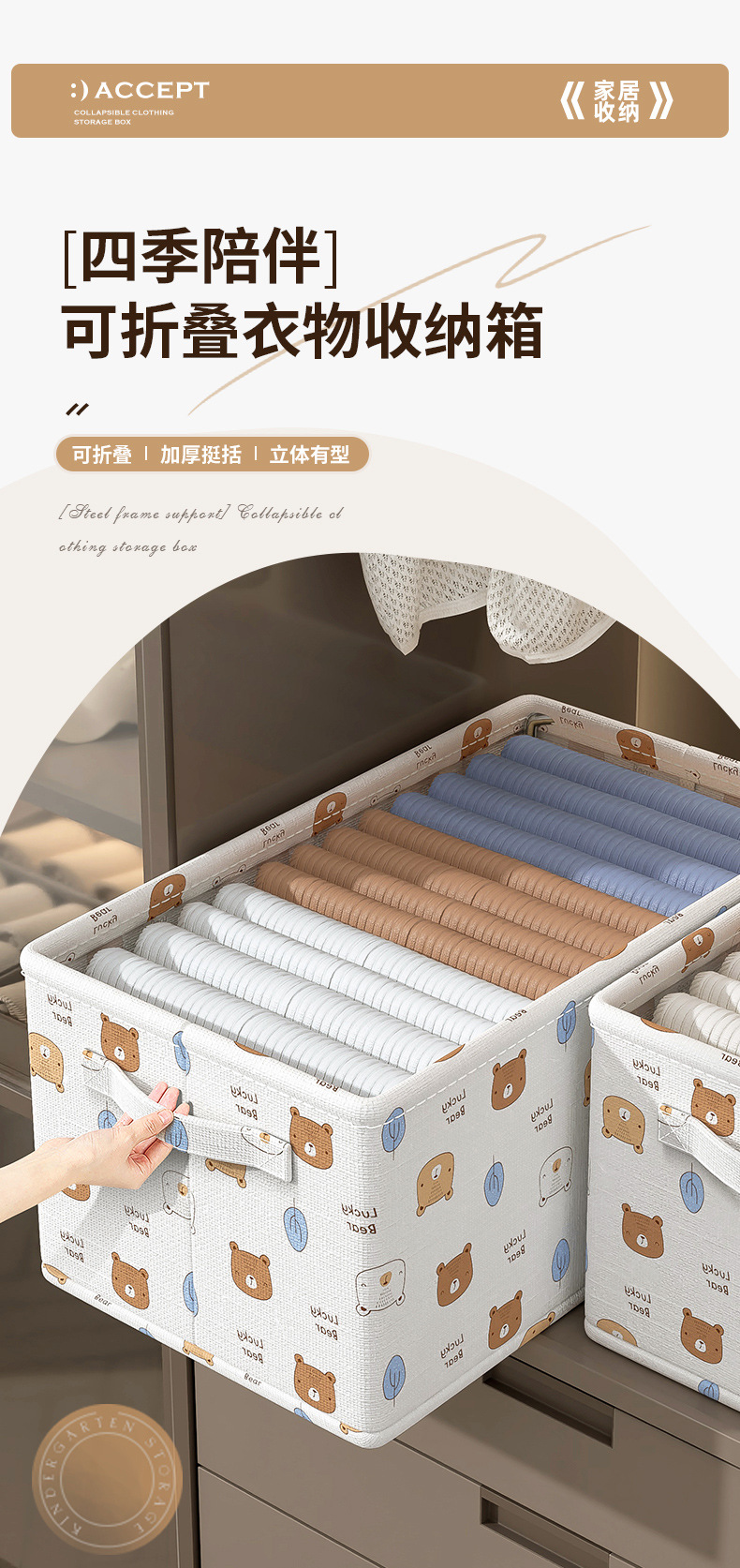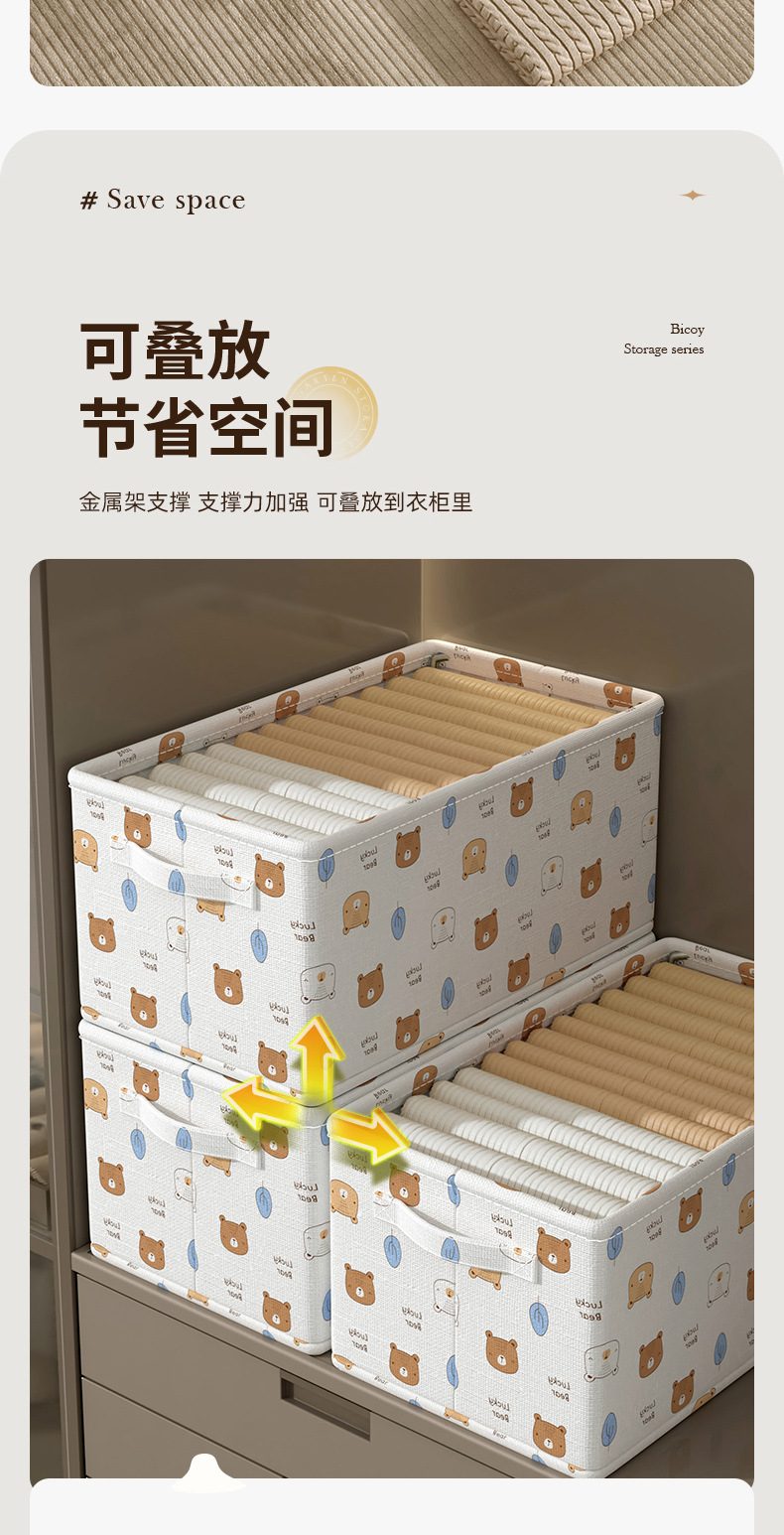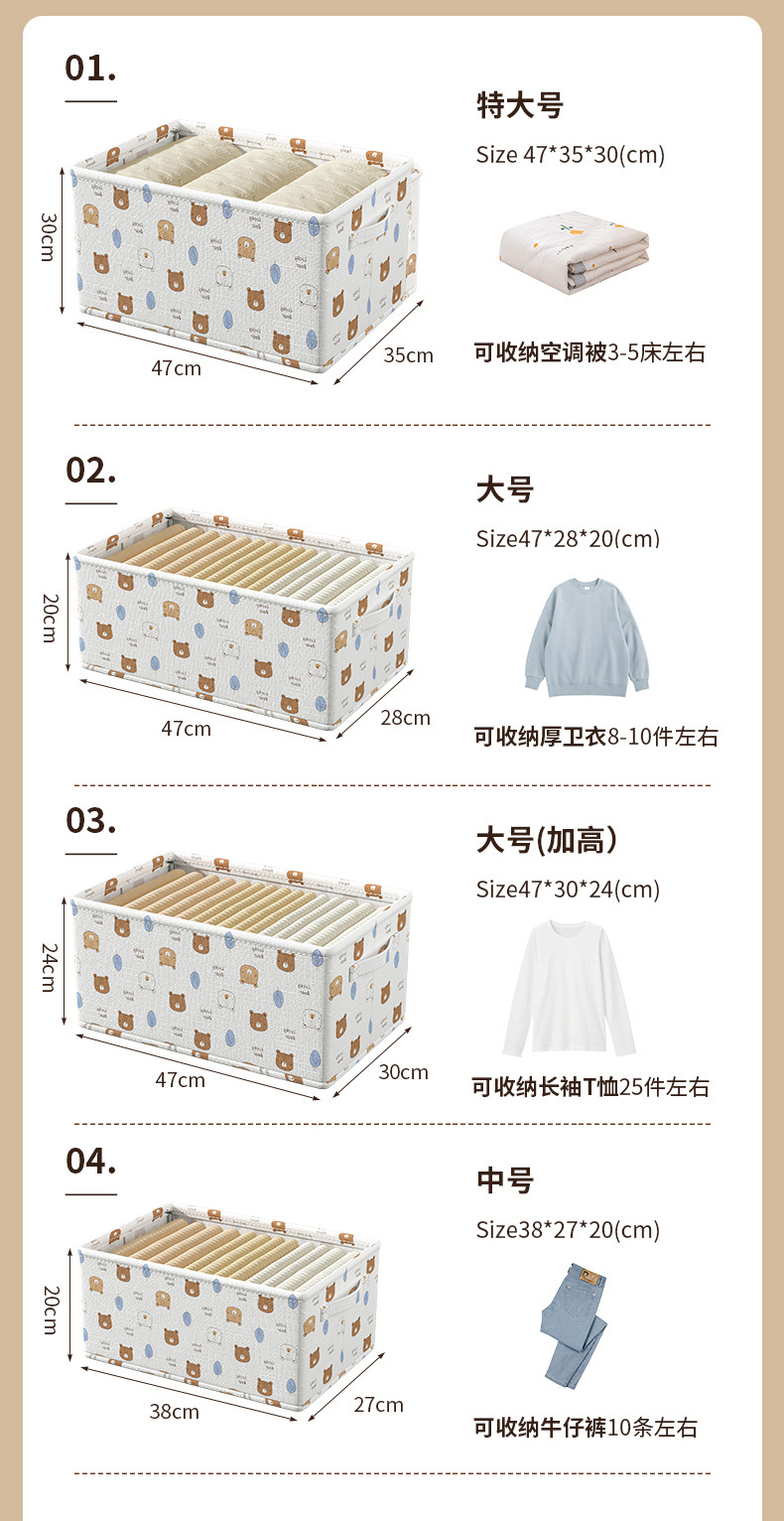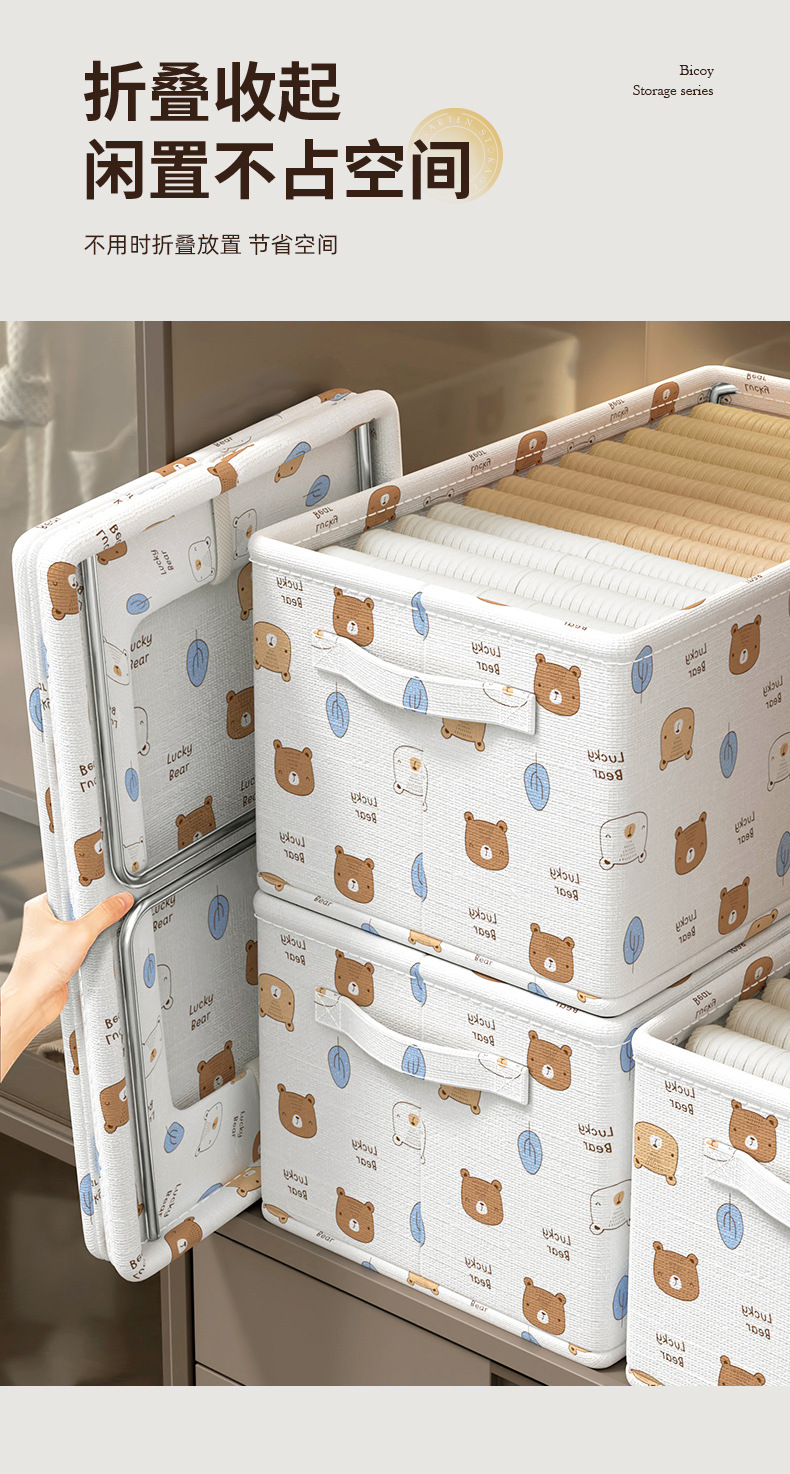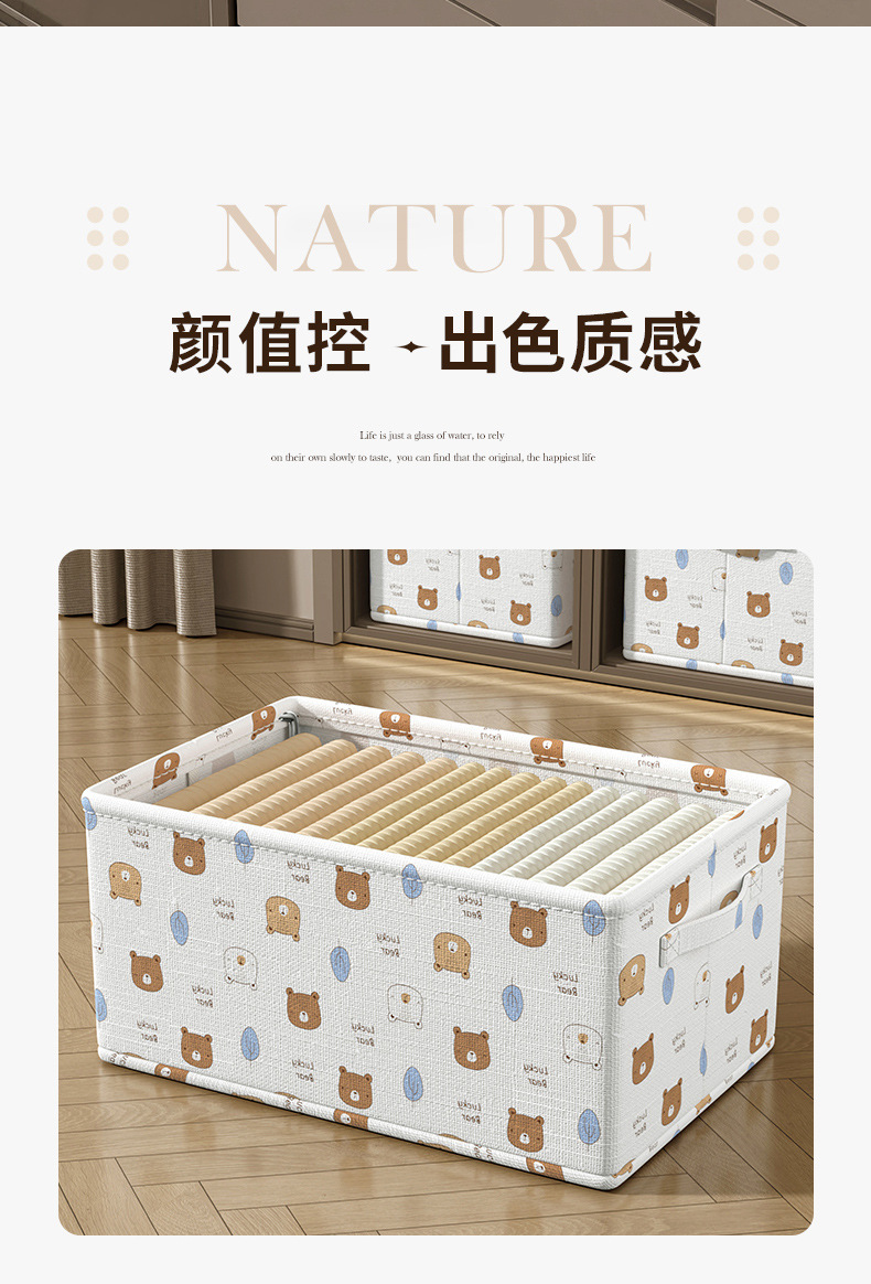 Baicaoyuan 의류 보관 바구니 가정용 직물 옷 바지 포장 상자 옷장 접이식 보관 상자 보관 바구니