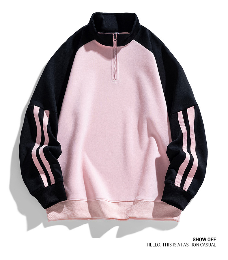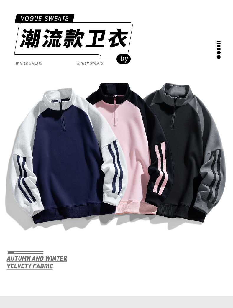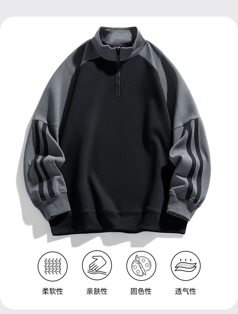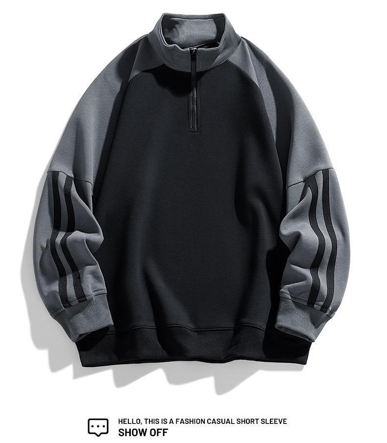 남성 티셔츠 봄과 가을 미국 스타일 하이 스트리트 트렌디 브랜드 트렌디 한 하프 지퍼 헤비 스웨트 셔츠 느슨한 캐주얼 탑 옷