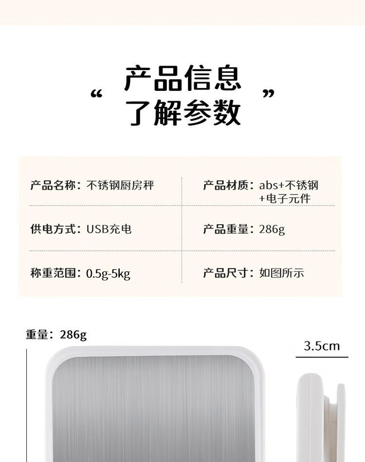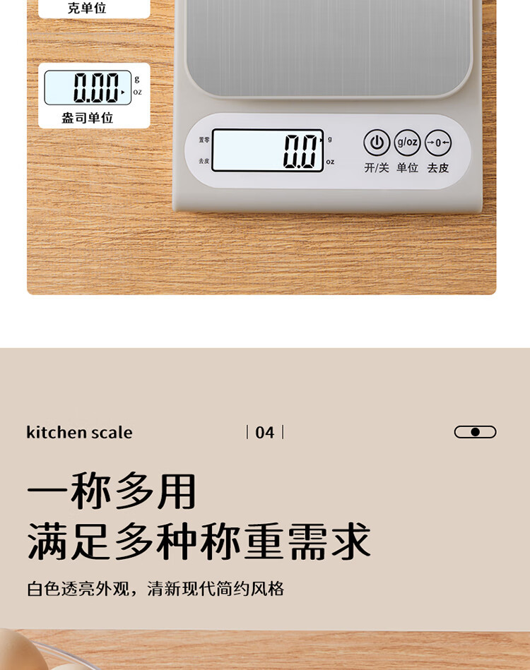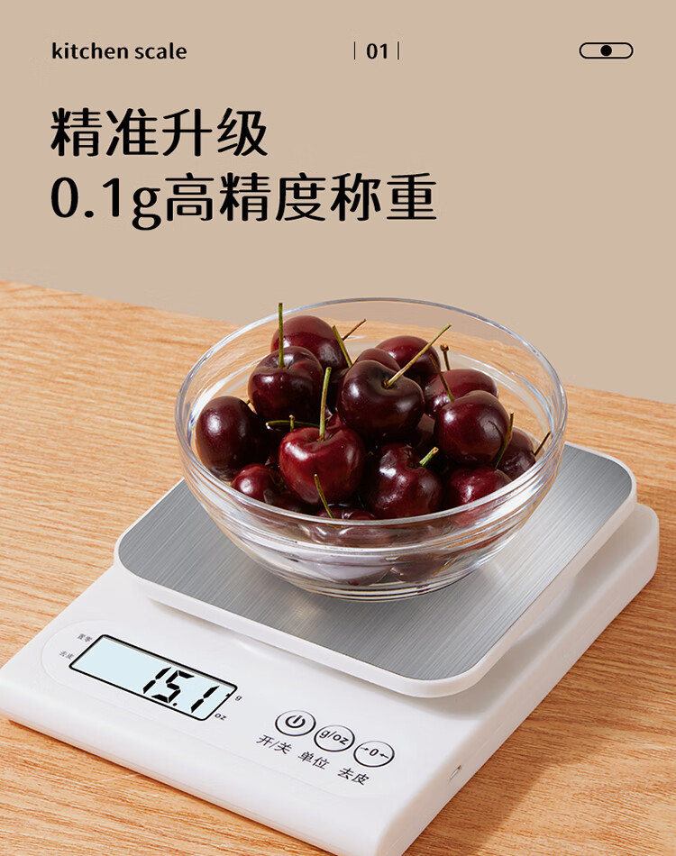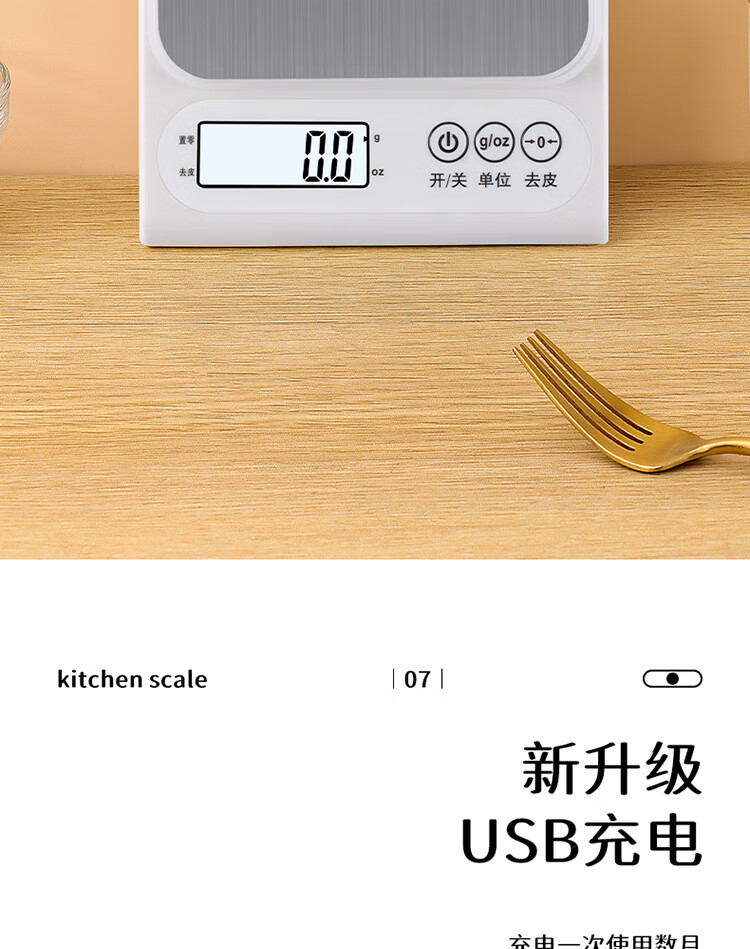 스테인레스 스틸 주방 저울⭐5kg/0.1g [충전식 모델]