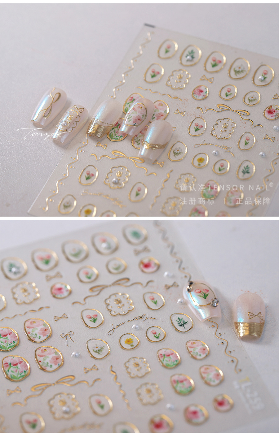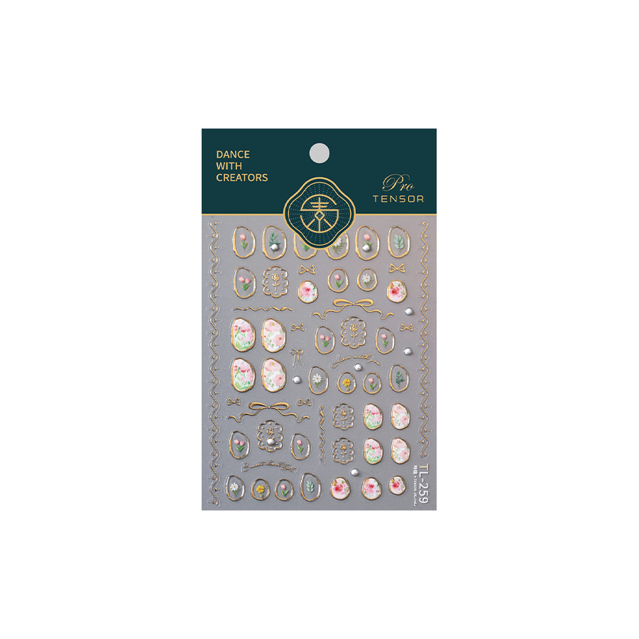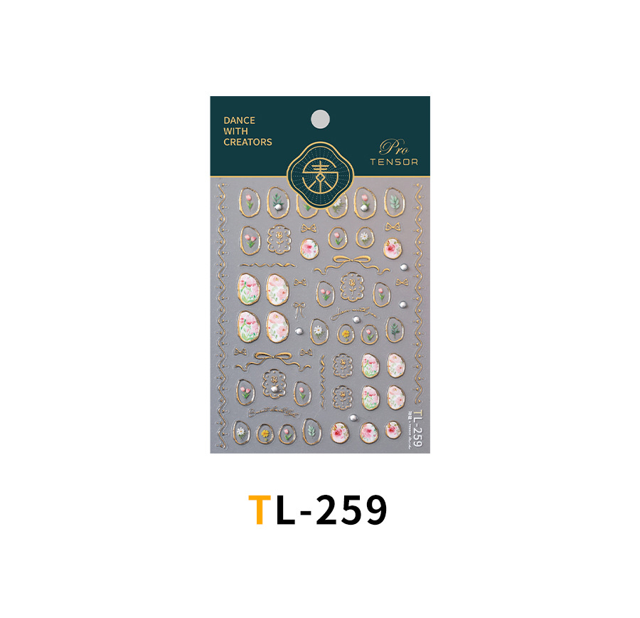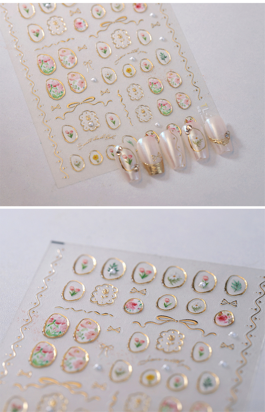 철제 프렌치 라이트 럭셔리 스타일 꽃무늬 네일 스티커 TL259 부드러운 요정풍 진주 꽃무늬 리본 네일 스티커