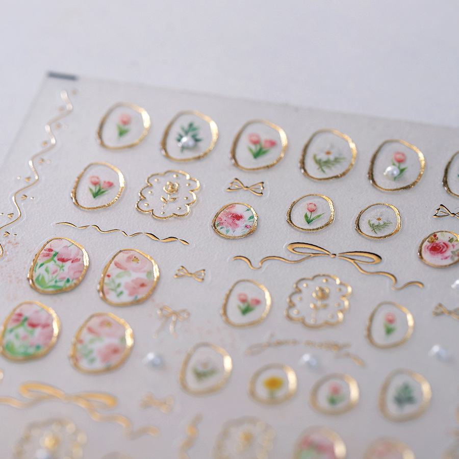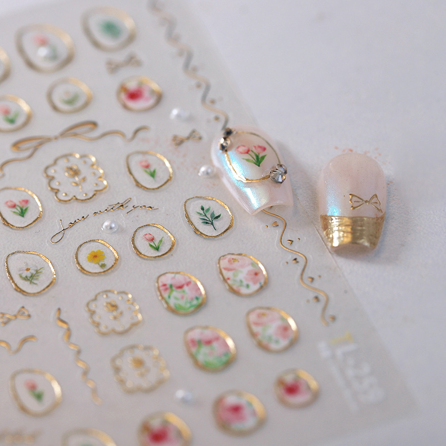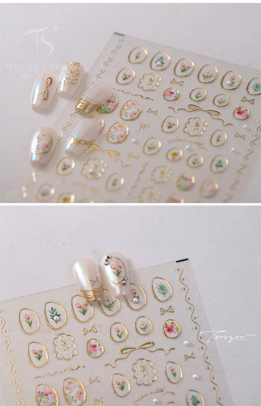 철제 프렌치 라이트 럭셔리 스타일 꽃무늬 네일 스티커 TL259 부드러운 요정풍 진주 꽃무늬 리본 네일 스티커
