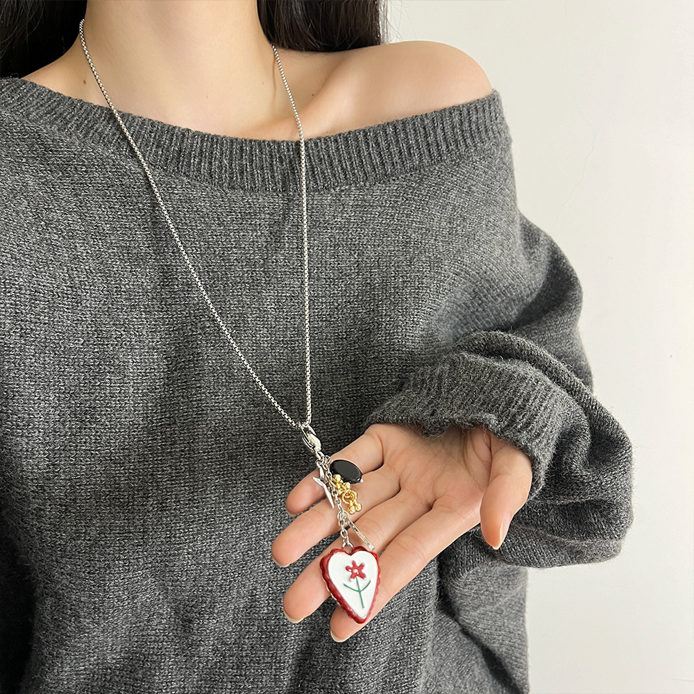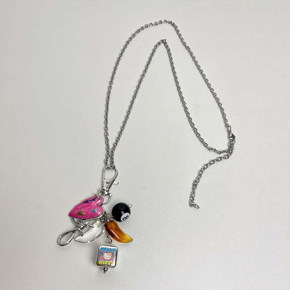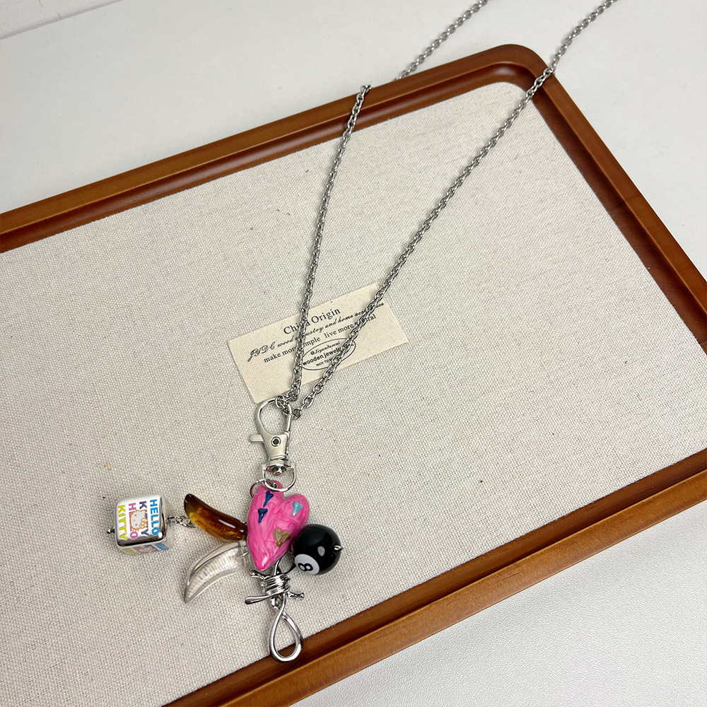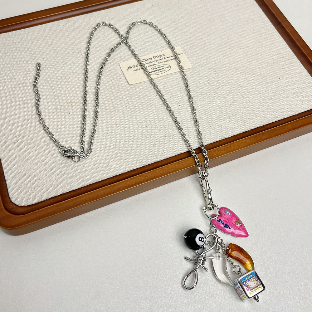 멀티 요소 당구가있는 Ins Blogger 사랑 펜던트 목걸이 틈새 디자인 긴 스웨터 체인 스웨터 체인