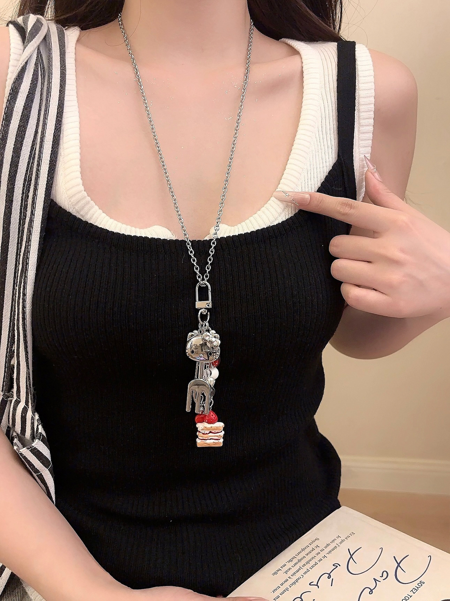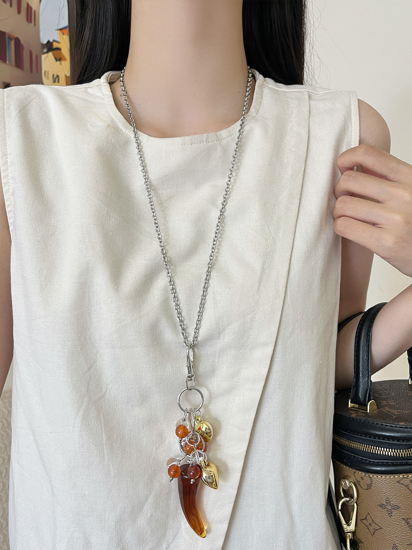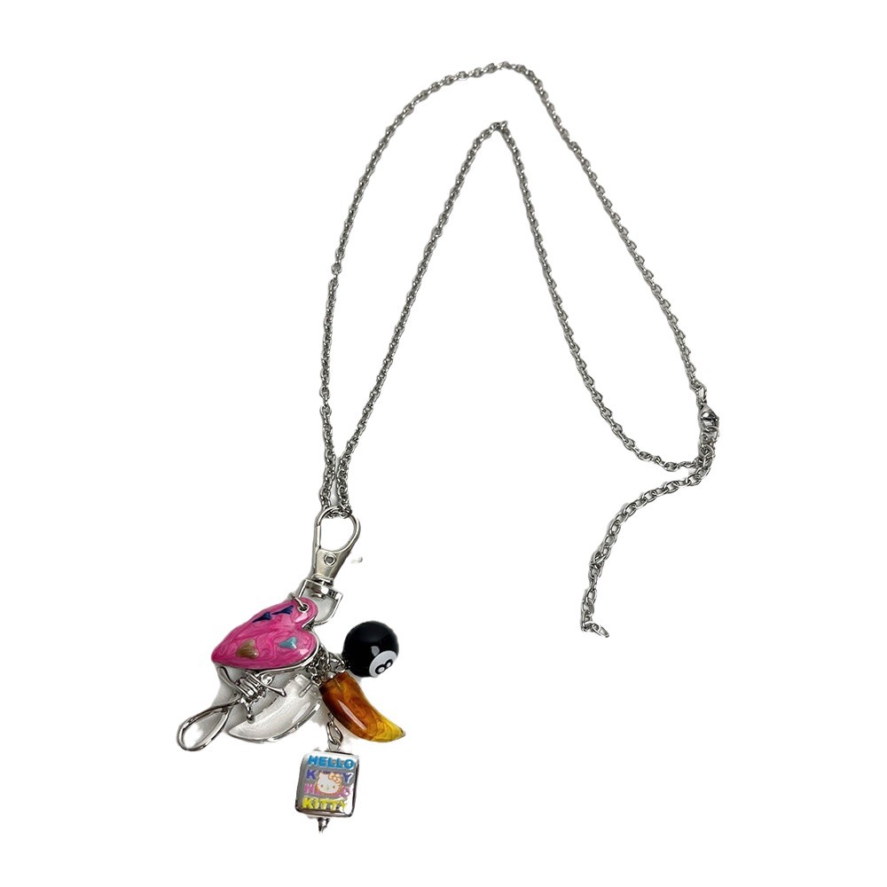 멀티 요소 당구가있는 Ins Blogger 사랑 펜던트 목걸이 틈새 디자인 긴 스웨터 체인 스웨터 체인