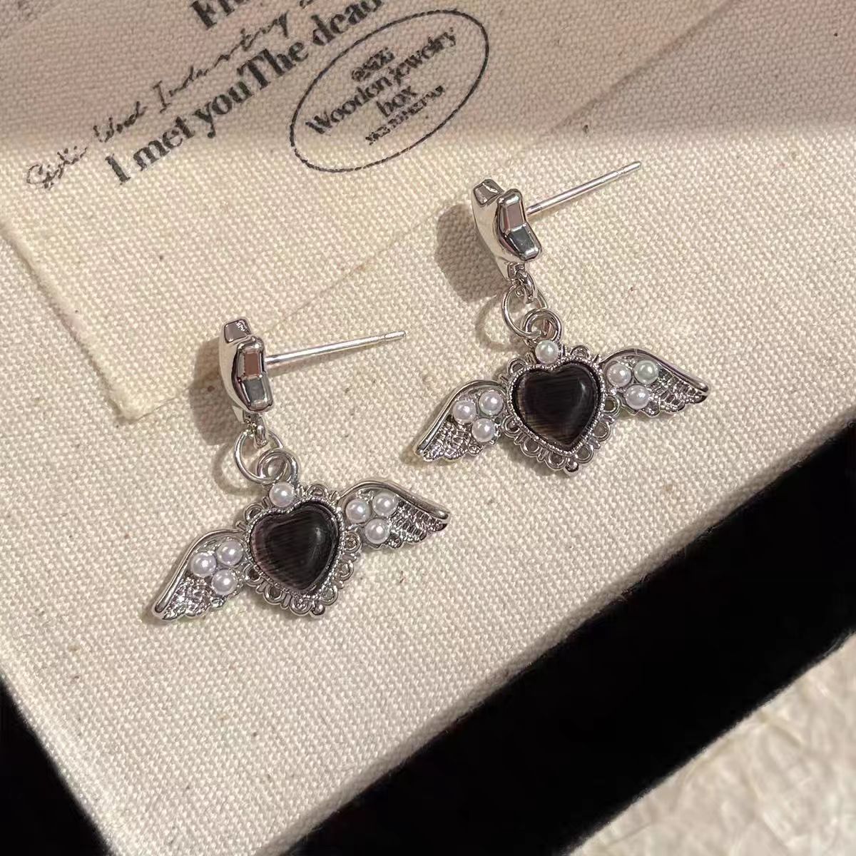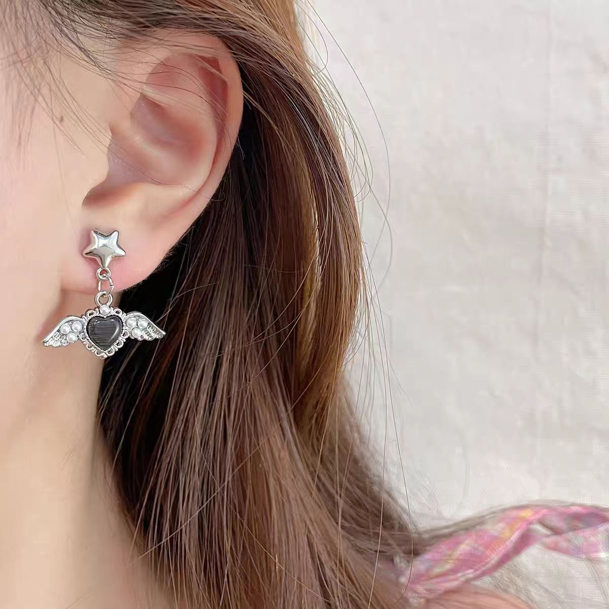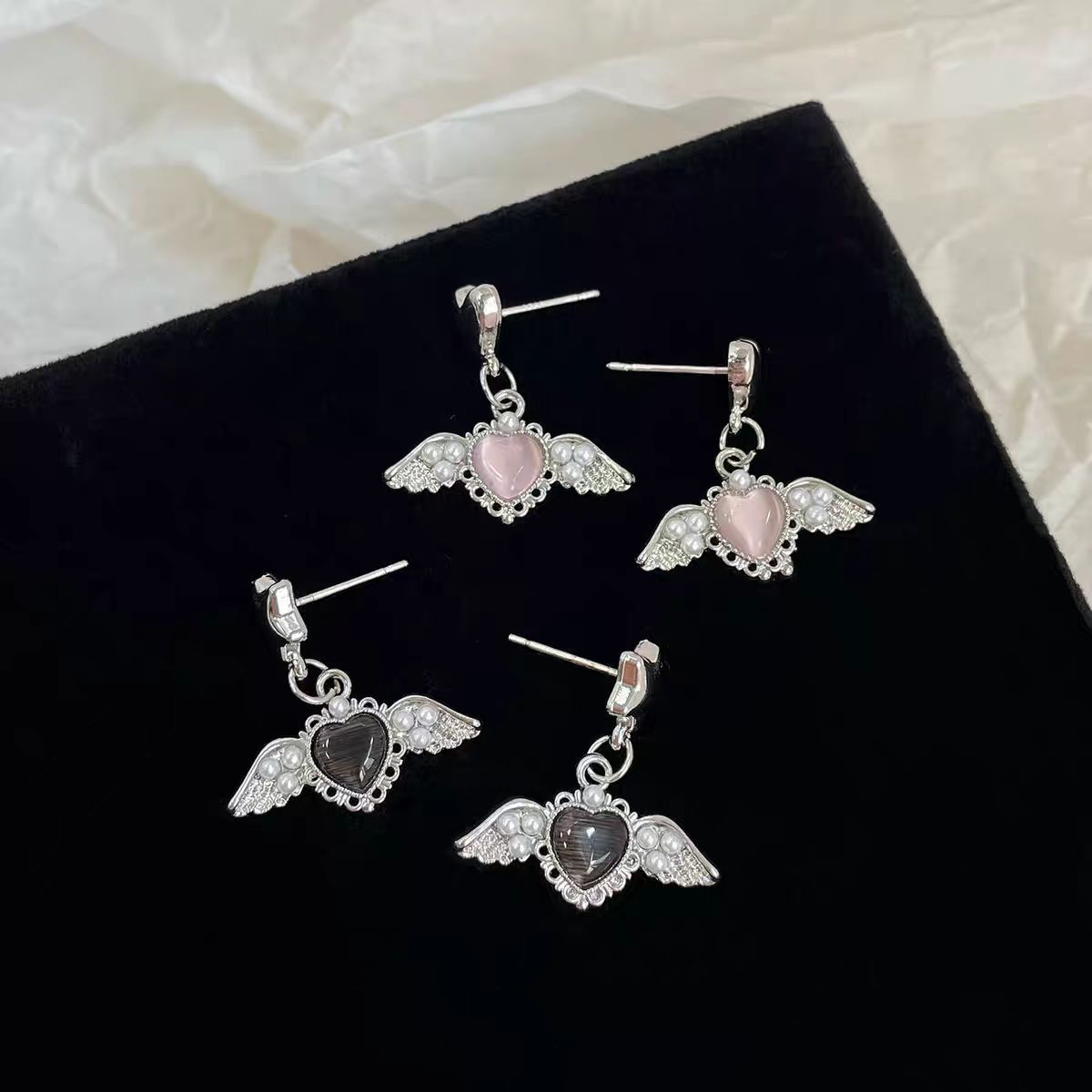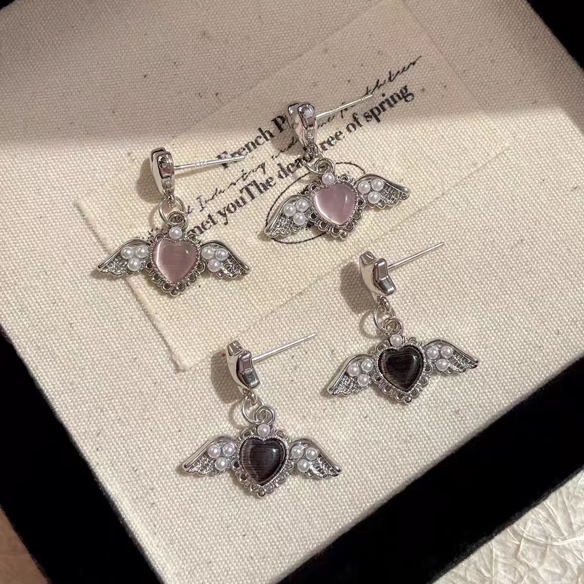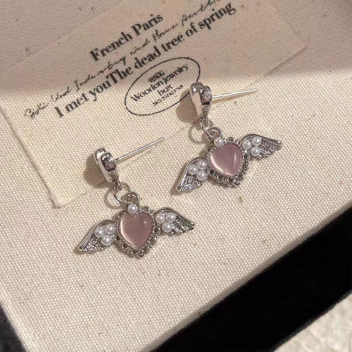달콤한 소녀 천사 날개 진주 사랑 귀걸이 실버 바늘 달콤한 멋진 소녀 틈새 디자인 감각 섬세한 귀 보석