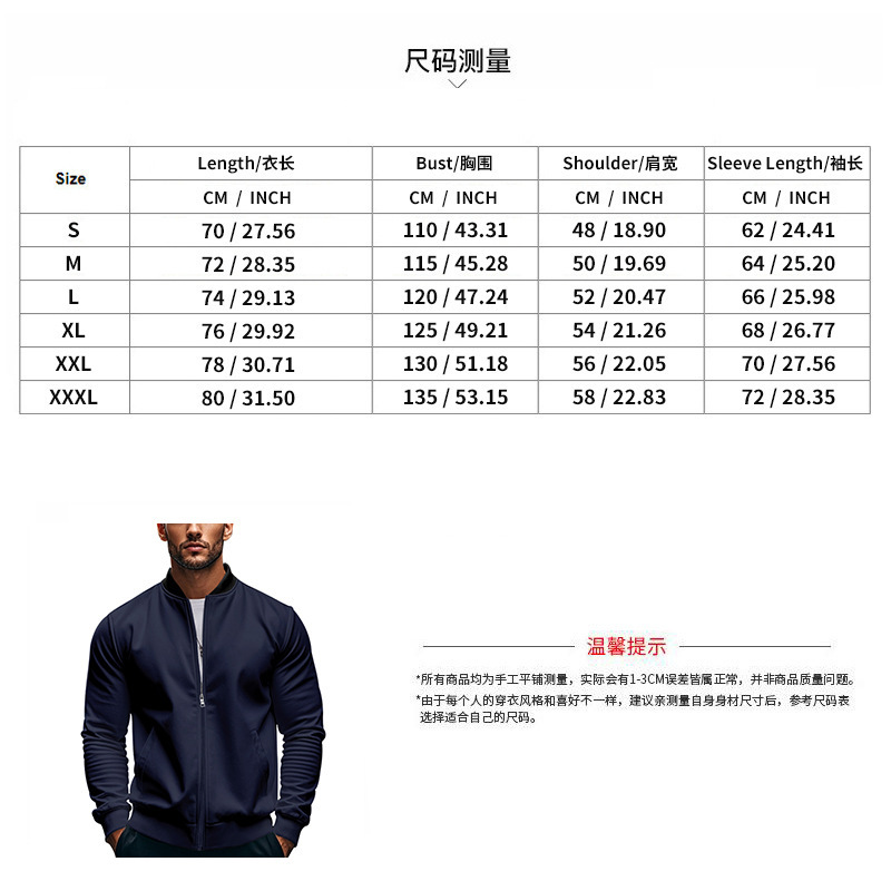 2025 새로운 국경 가을 남성 스탠드 칼라 재킷 솔리드 컬러 스포츠 캐주얼 지퍼 긴팔 탑 남성 코트