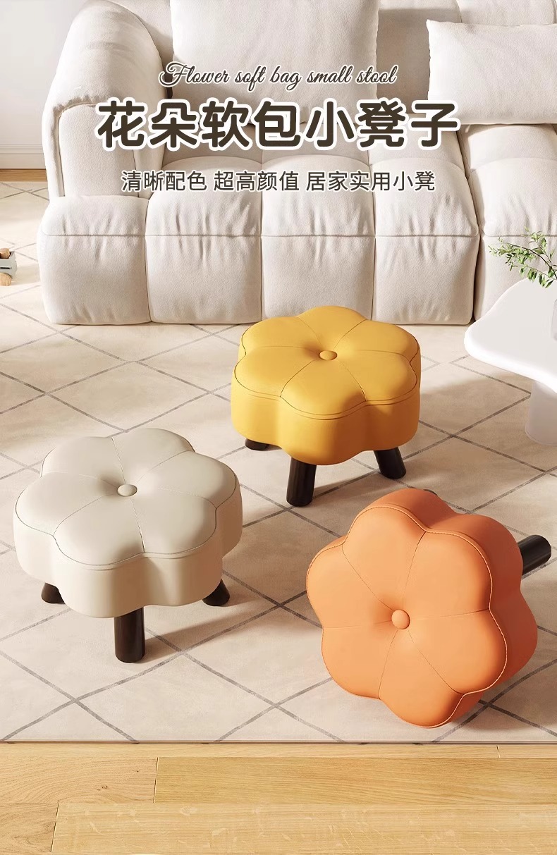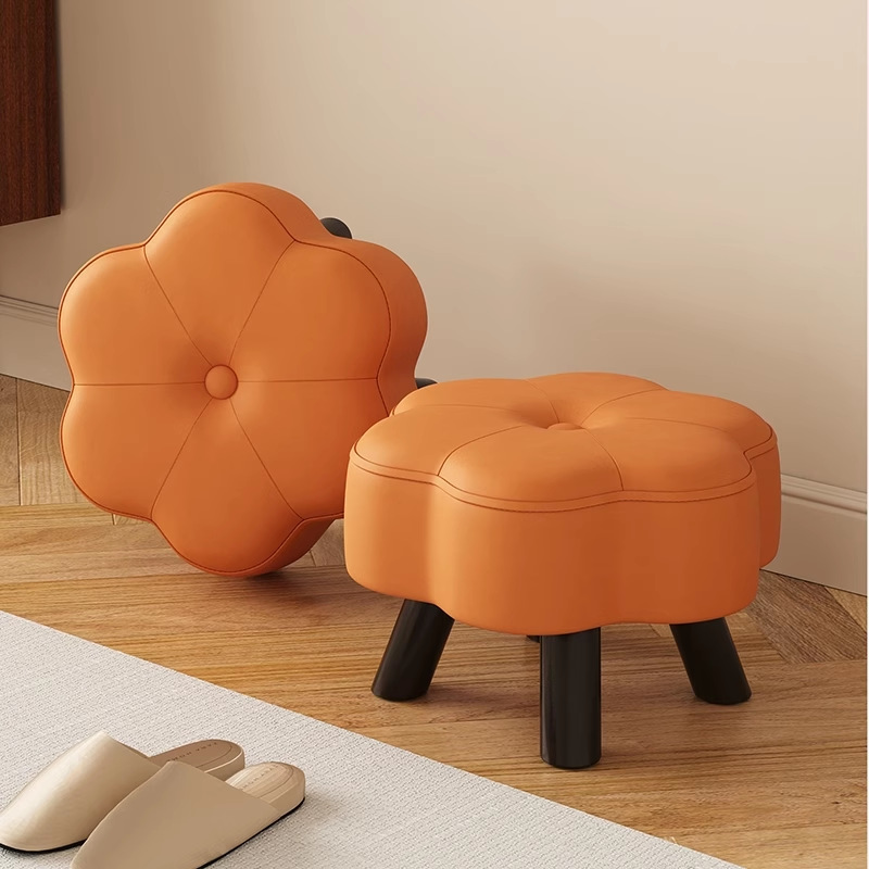작은 의자, 가정용 낮은 의자, 원목 의자, 거실 소파 의자, 간단한 신발 교환 의자, 창의적인 부드러운 패브릭으로 감싼 인터넷 연예인 원형 의자