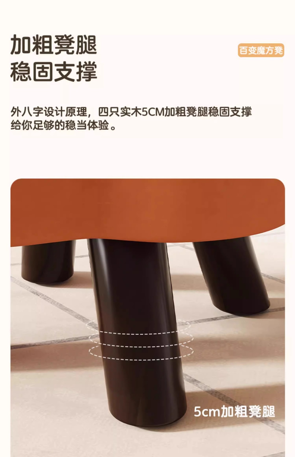 [단단한 나무 프레임 두꺼운 스툴 다리] 브라운 스퀘어 스툴