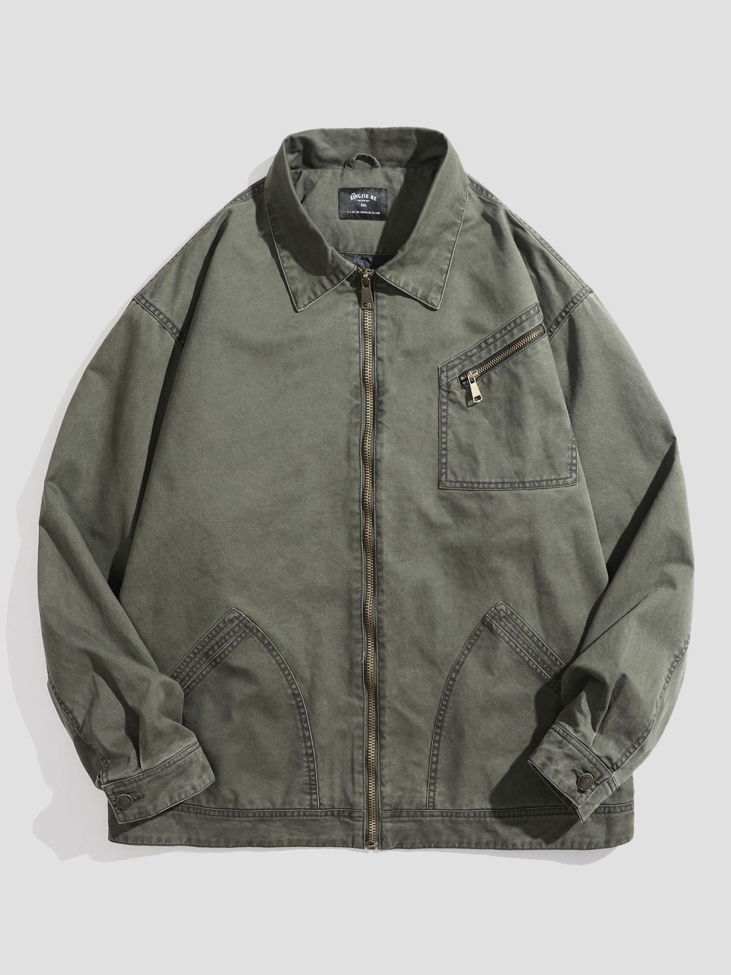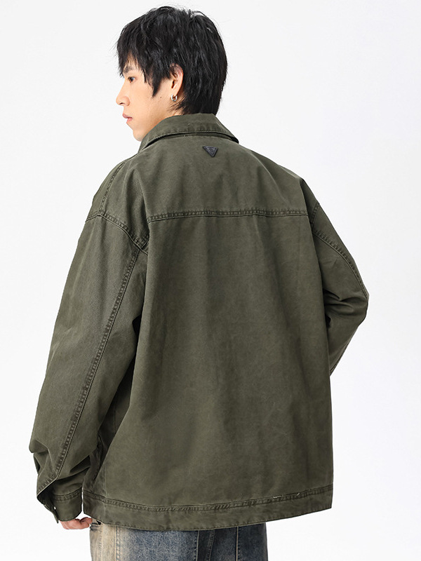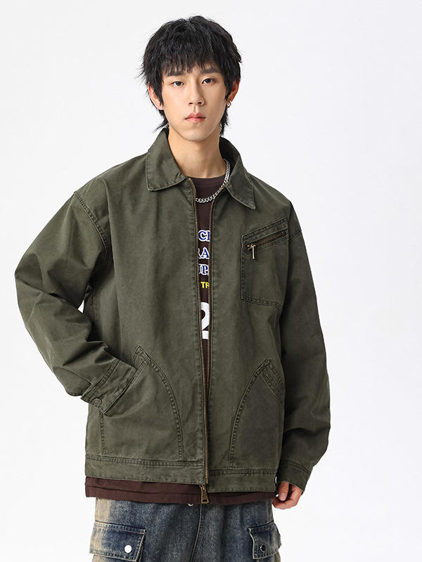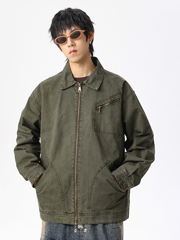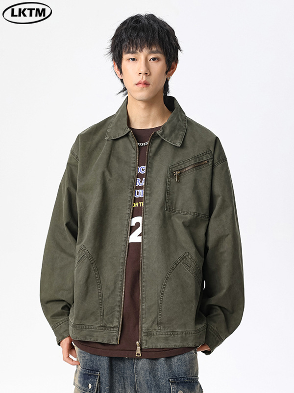 LKTM 남자 #2024 새로운 고밀도 양면 지퍼 패치 포켓 옷깃 재킷 남자의 무거운 느슨한 재킷